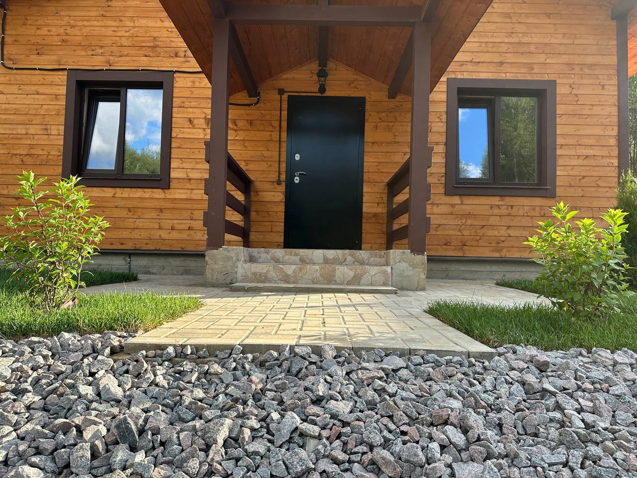 Продается загородный дом из бруса 70 м² в деревне Тяжино Раменский Район 30 км от МКАД. Это новый дом на земельном участке 6 соток (ИЖС) с забором по периметру в едином стиле поселка. На участке постелен рулонный газон, место для парковки автомобиля выполнено из брусчатки.