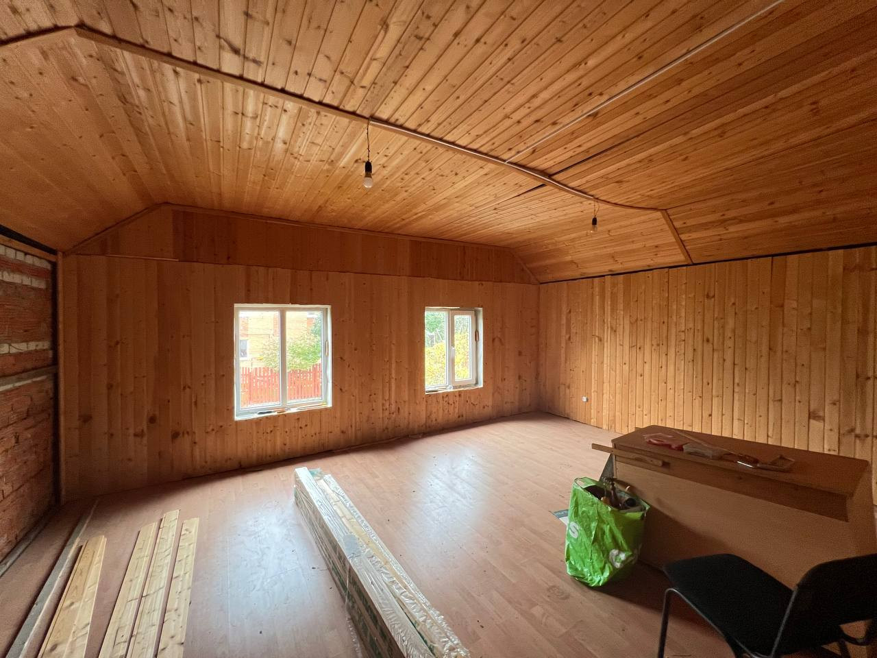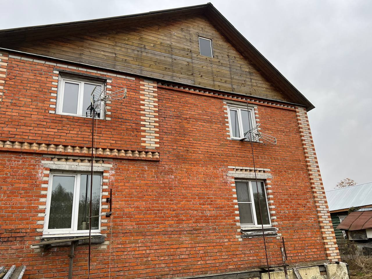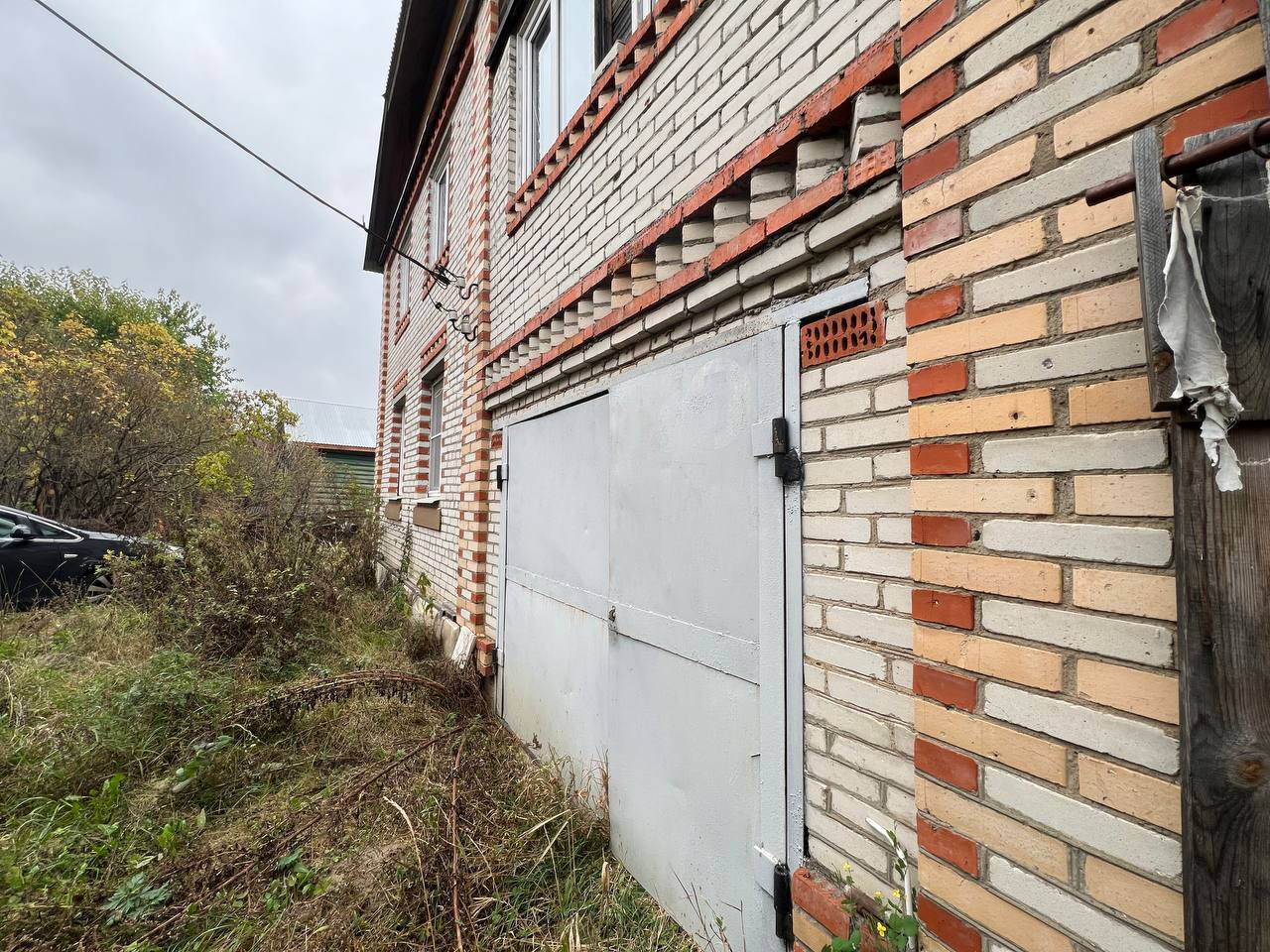 Дом для большой и дружной семьи! Огромное количество комнат и спален. Просторная застекленная терасса, выход на которую находится между 1 и 2 этажом. Материал стен: кирпич. Утеплен. Окна: пластиковые стеклопакеты +деревянные. Пол: ламинат. Электричество : в доме. Деревня газифицирована. Газ уже находится на границе участка. Канализация - выгребная яма. Отопление : 1 этаж от печи, 2 этаж - конвекторы. В основном обжитой 1 этаж, лестница и комнаты на втором этаже требуют отелочных работ. В доме есть 0-й высокий цокольный этаж (подвал). Из дома несколько выходов на улицу и в гараж. Гараж на одну машину с выходом в дом. Перед домом дополнительное парковочное место.