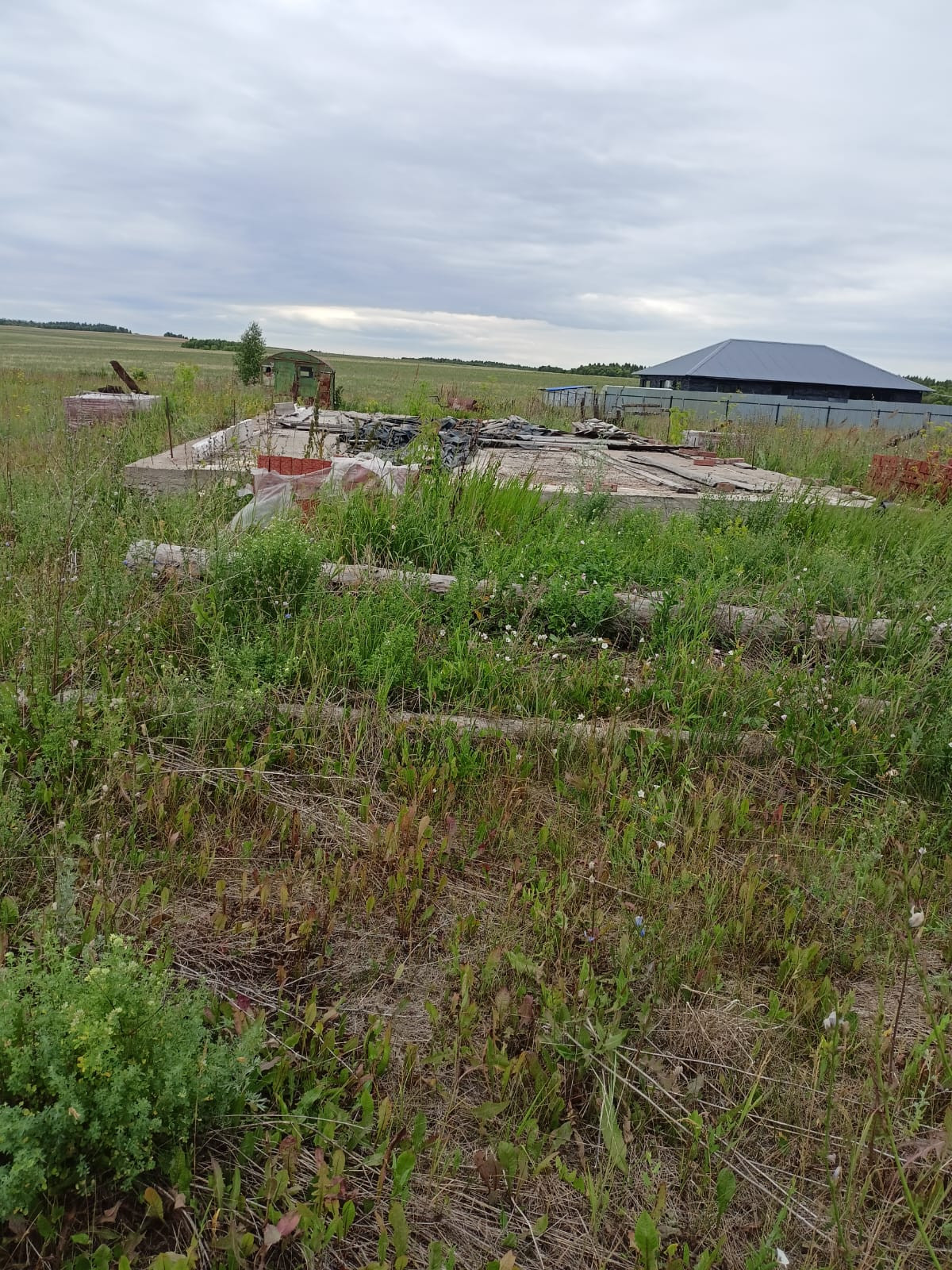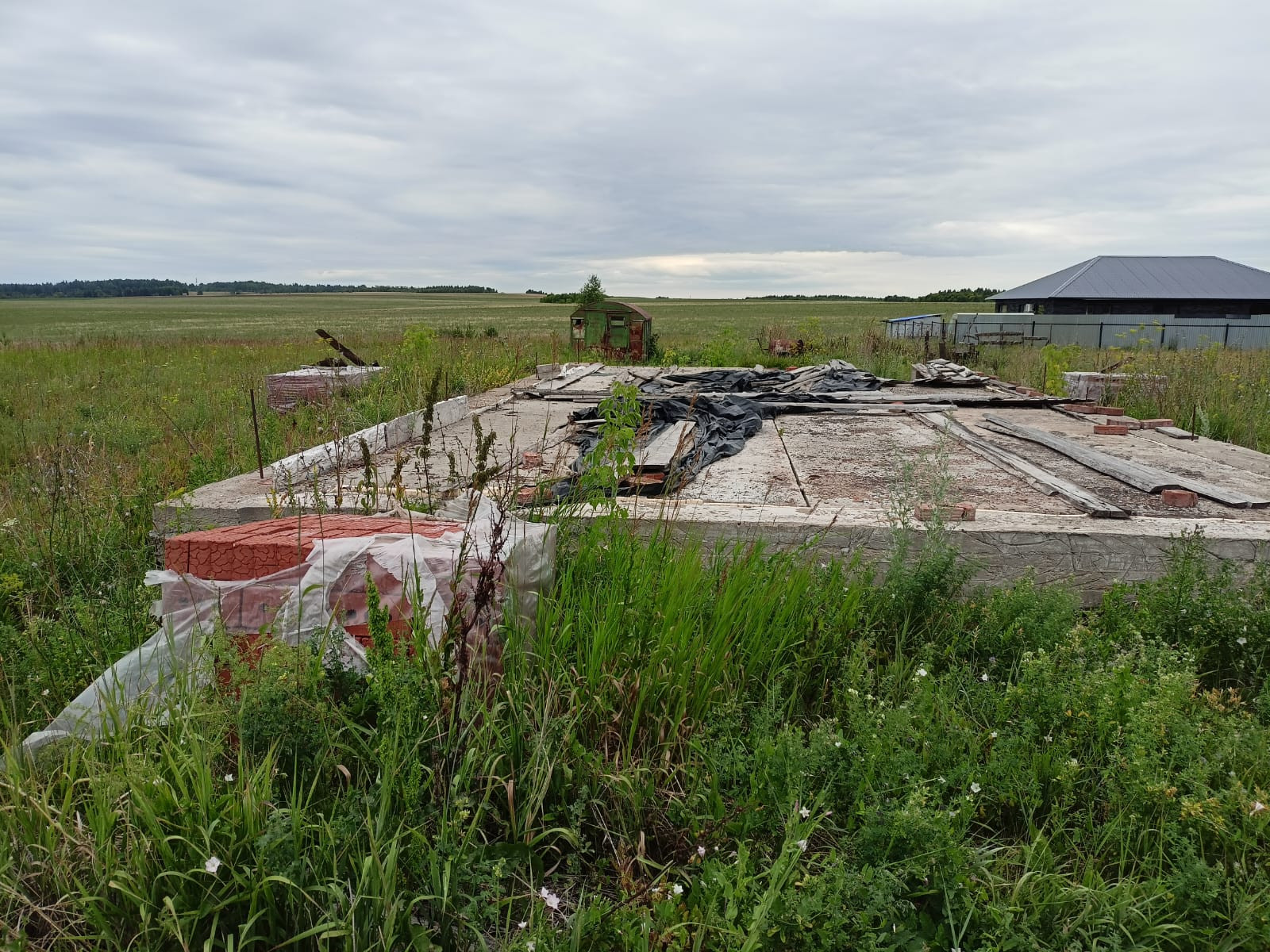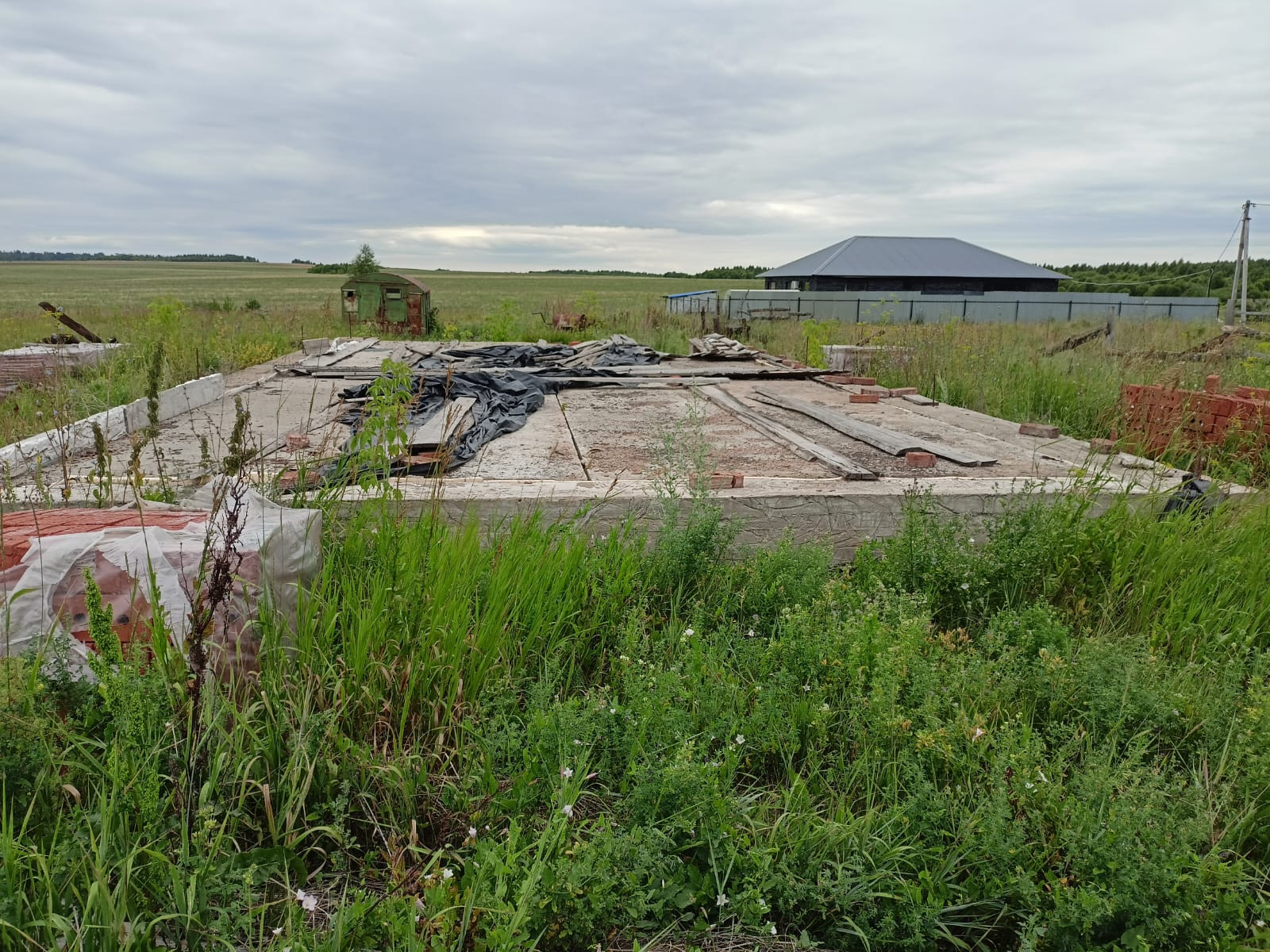 ✅ На участке начато строительство дома размерами 7х12 м;