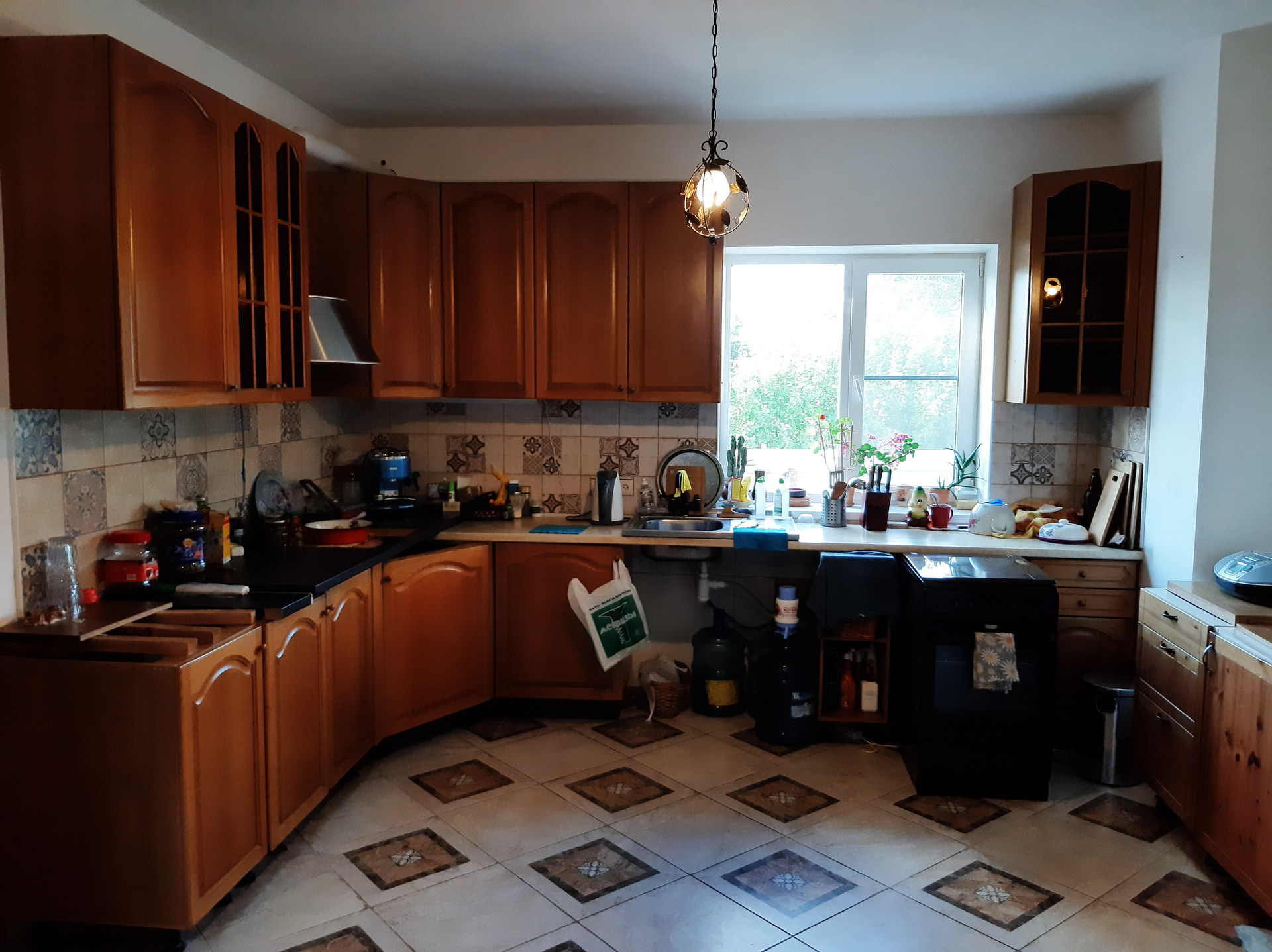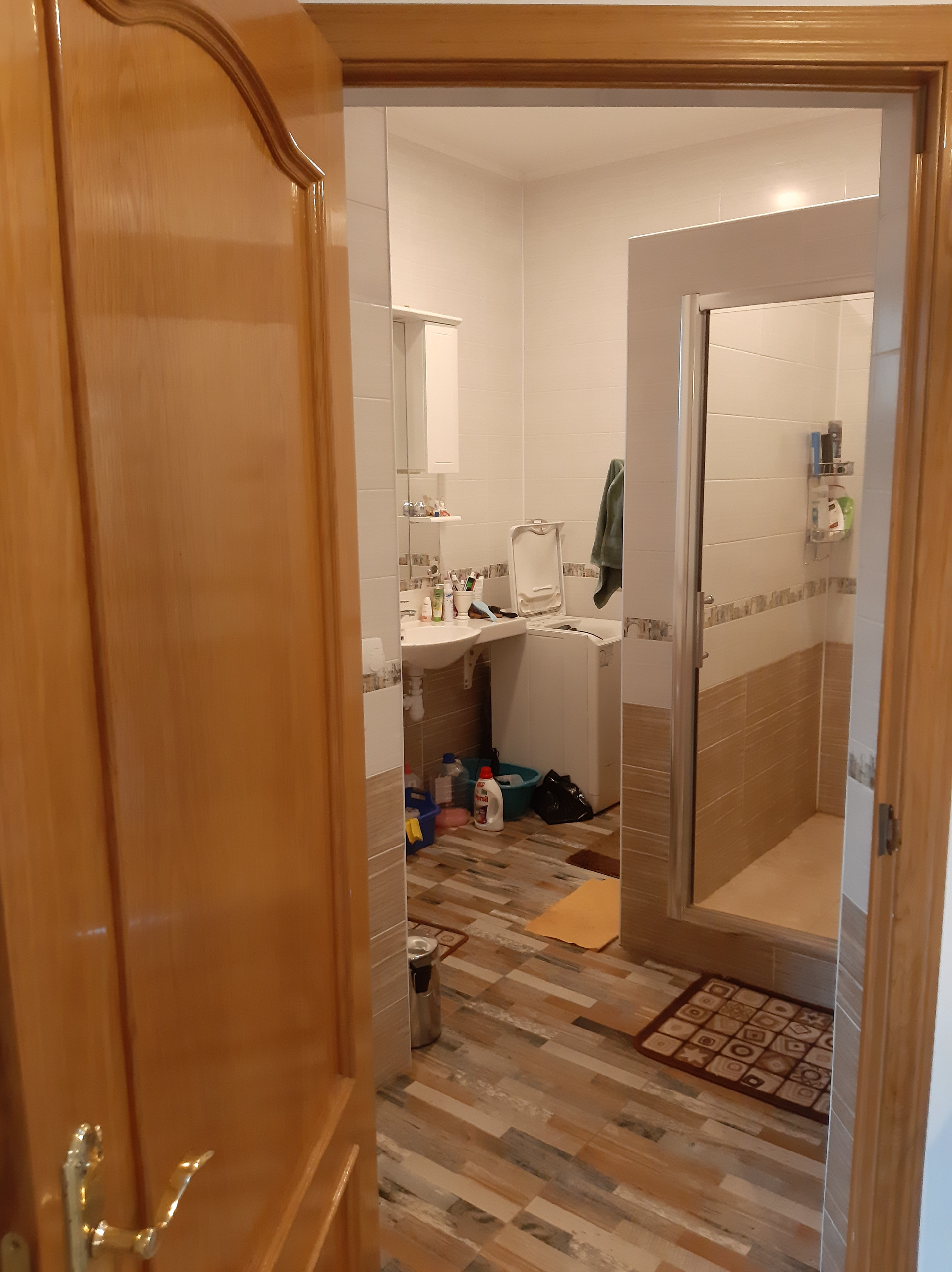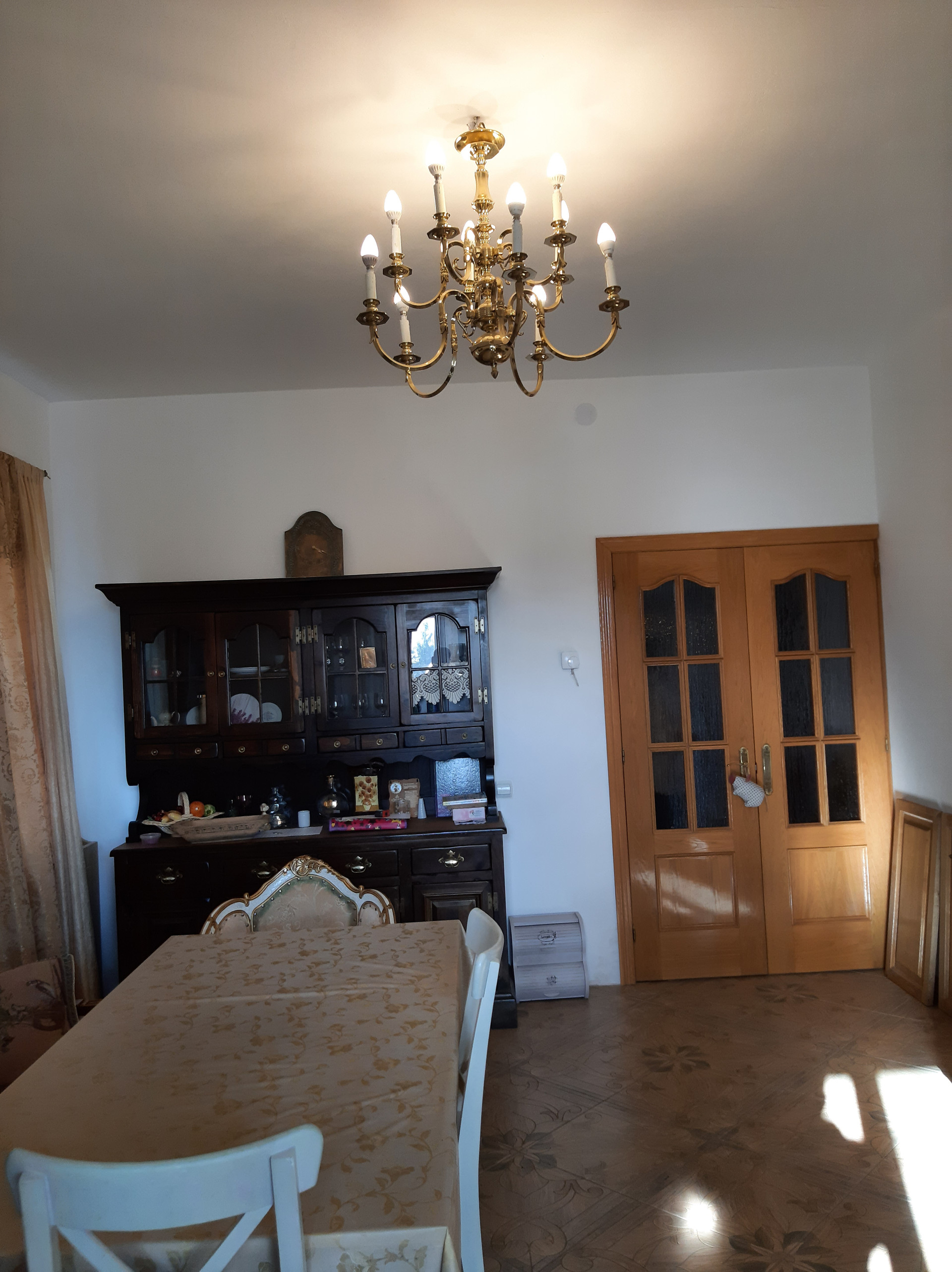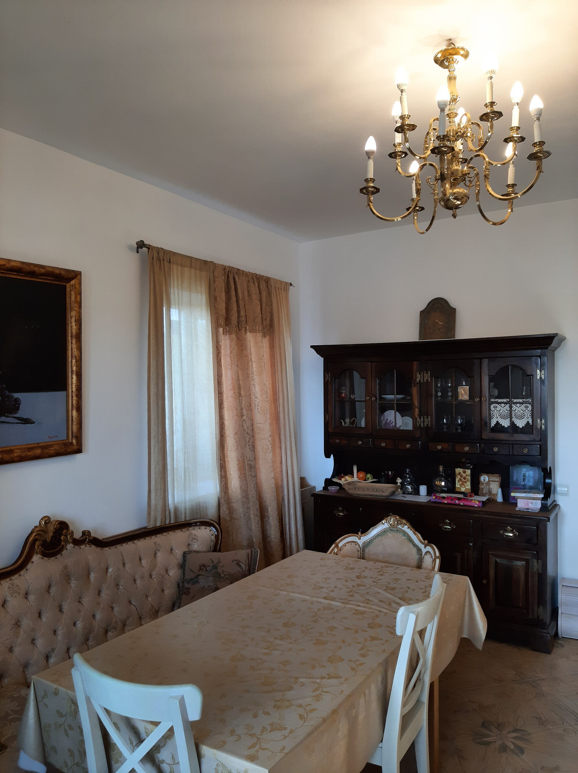 На 1-м этаже расположена гостиная 18,6 кв.м., кухня-столовая с газовой плитой 25 кв.м, спальня 19 кв.м, веранда 22 кв.м, прихожая 15,2 кв.м., совмещенный санузел 7 кв.м с душевой кабиной, два входа в дом с крыльцом: через веранду (остеклена - панорамные окна) и отдельный вход через прихожую. Высота потолков 2,9 м., теплый пол – плитка. Все помещения этажа отделаны, кроме спальни – она подготовлена под чистовую отделку