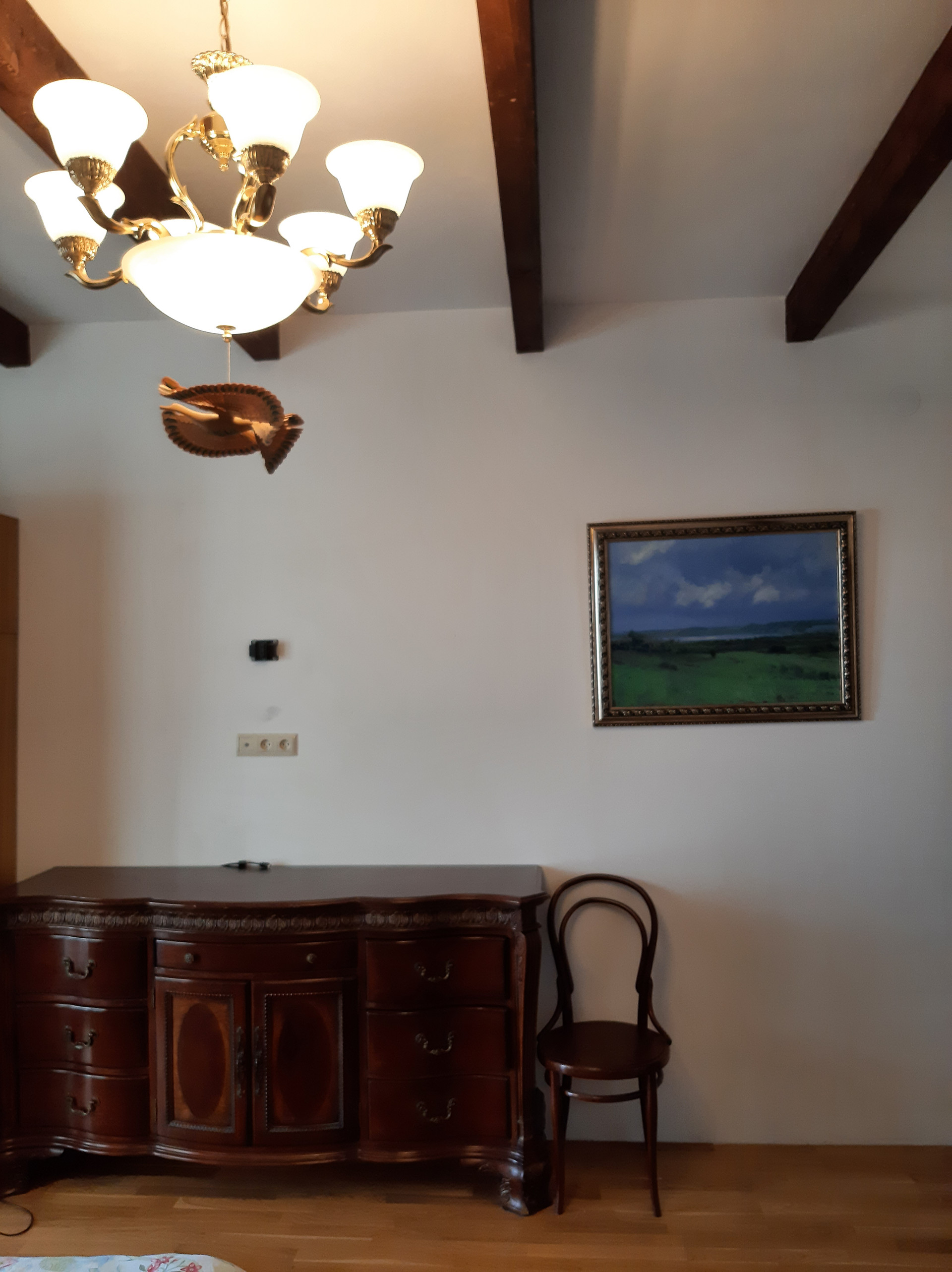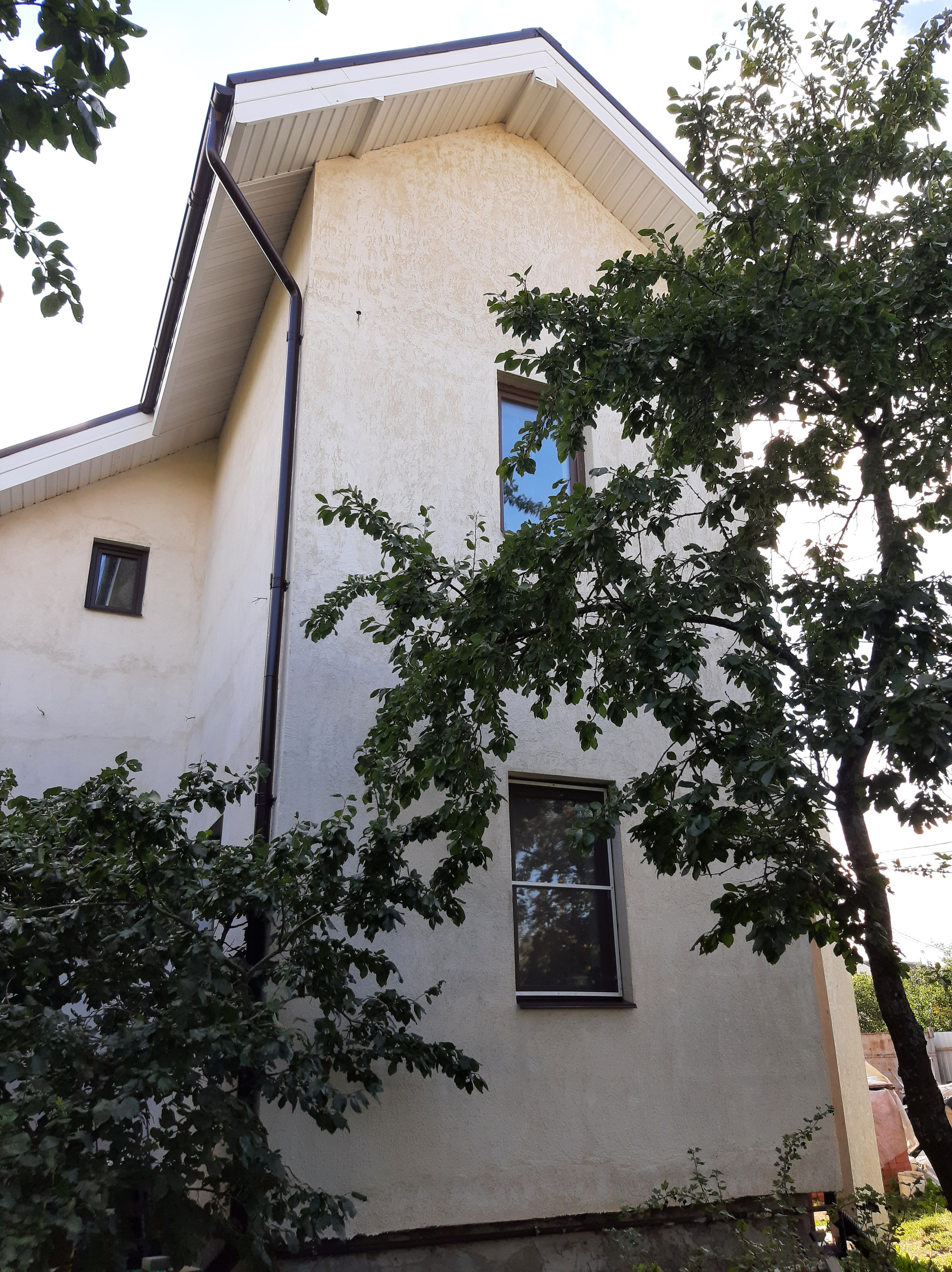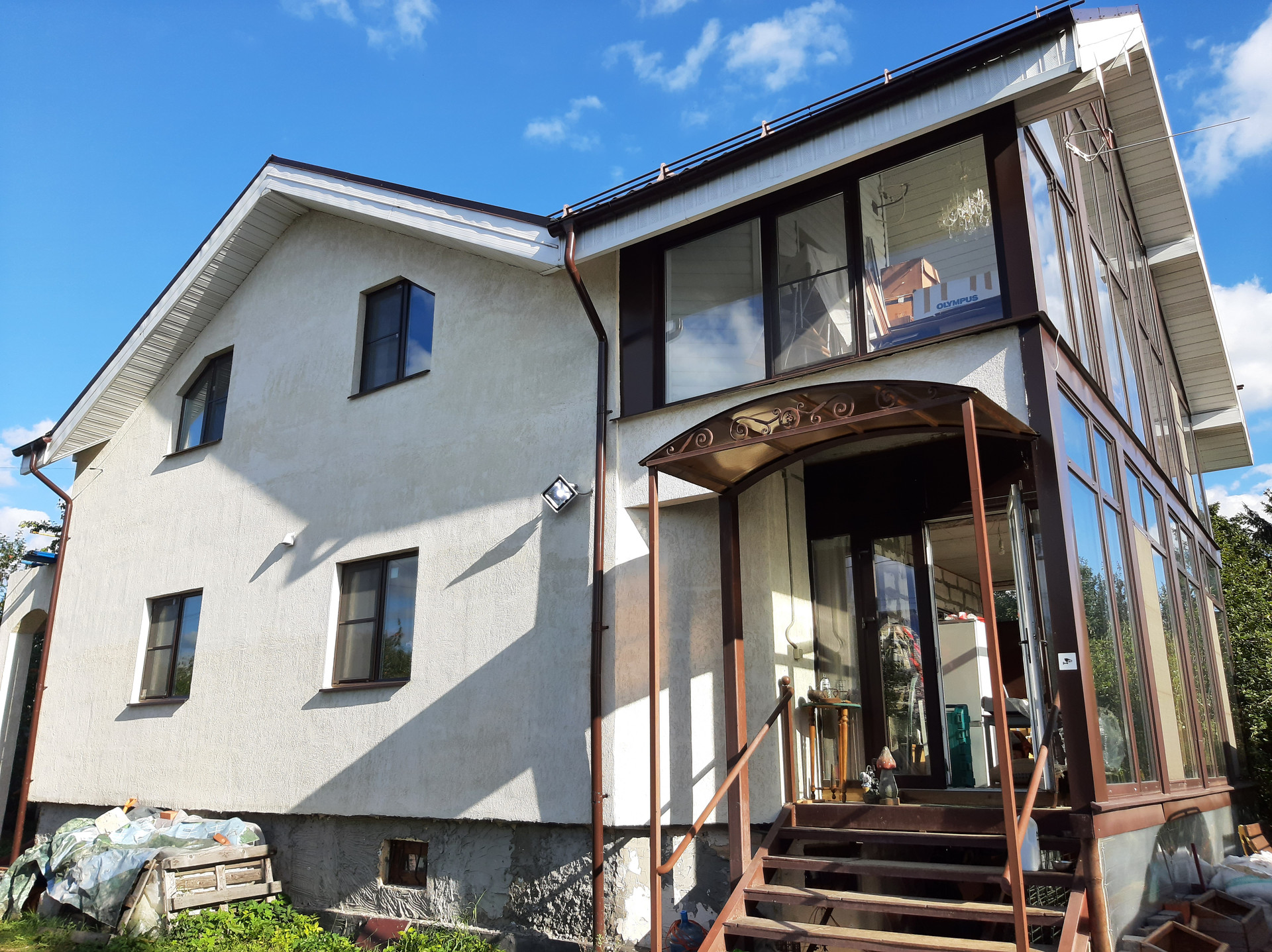 На 2-м этаже находятся 4 комнаты: 23 + 18,4 + 10,4 + 10 кв.м., холл 15 кв.м., помещение под второй санузел 7 кв.м., веранда 22 кв.м. (остеклена с панорамными окнами), маленький балкон из одной комнаты (не остеклен). Высота потолков 2,9 м. С веранды второго этажа прекрасный панорамный вид на открытое поле. Спальня (18,4) и веранда (22) отделаны, остальные помещения подготовлены под чистовую отделку