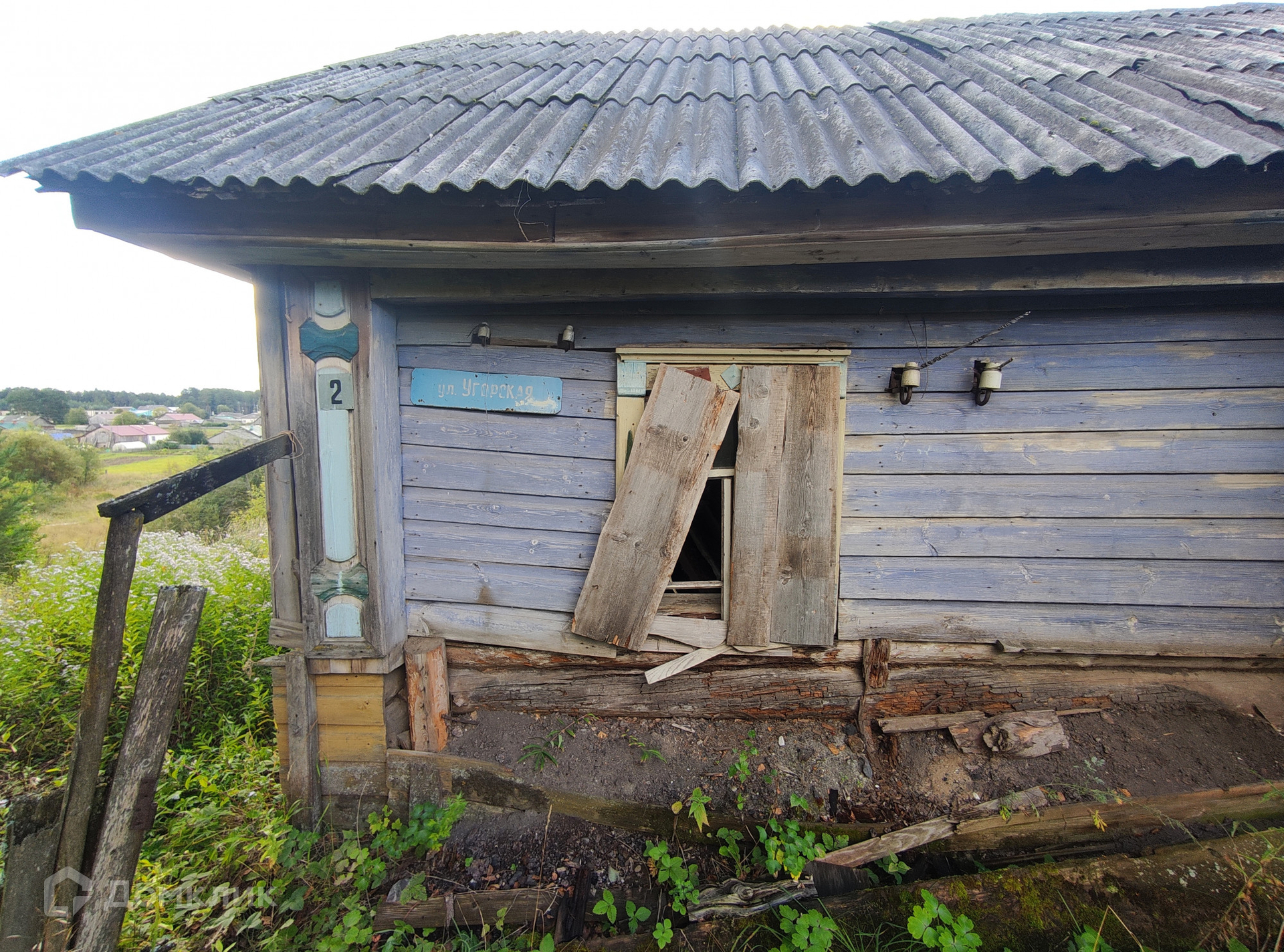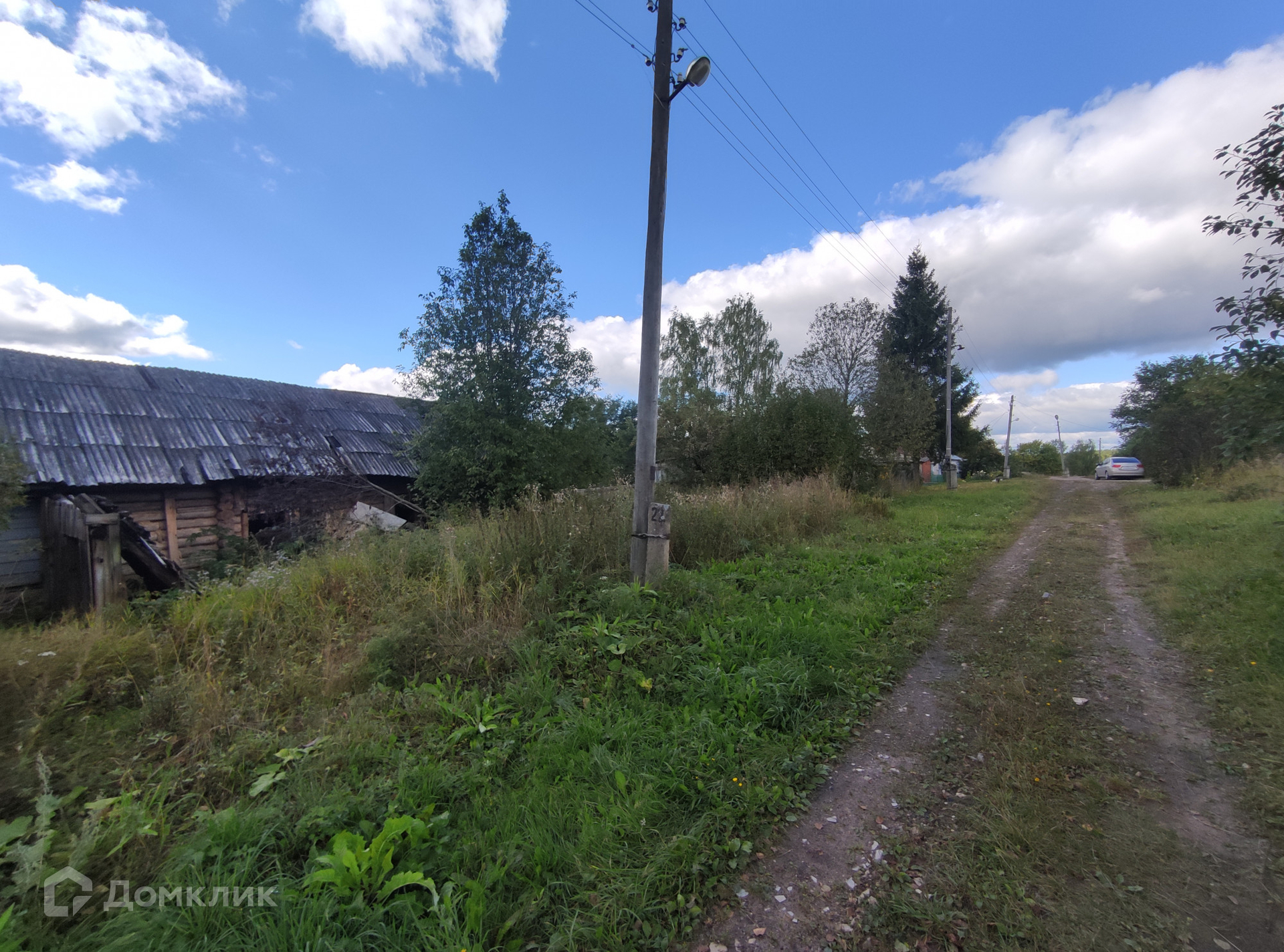 Земельный участок не размежеван, длительное время не разрабатывался. На участке имеется бревенчатый дом под капитальный ремонт, либо под разбор. Дом поставлен на кадастровый учет, возможна прописка. Жилая площадь 31 кв. м. К дому пристроен большой сарай. Рядом с участком колонка с артезианской водой и столб для подключения к электричеству.