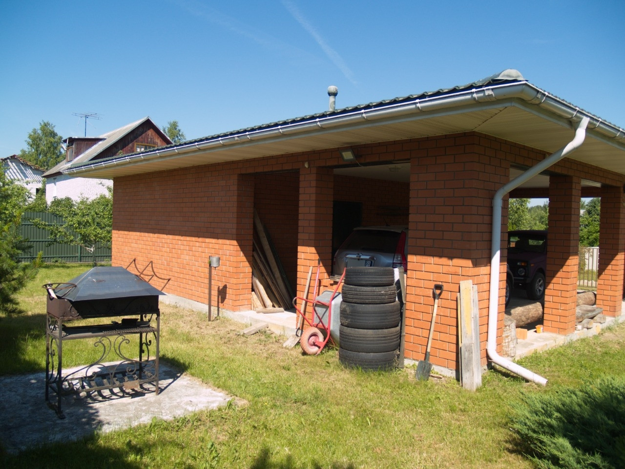 На участке скважина 68м, баня, две беседки и гараж. Баня рубленая. В бане горячая и холодная вода, отопление газовое. Беседка зимняя и летняя. Есть место для мангала. Гараж с навесом.