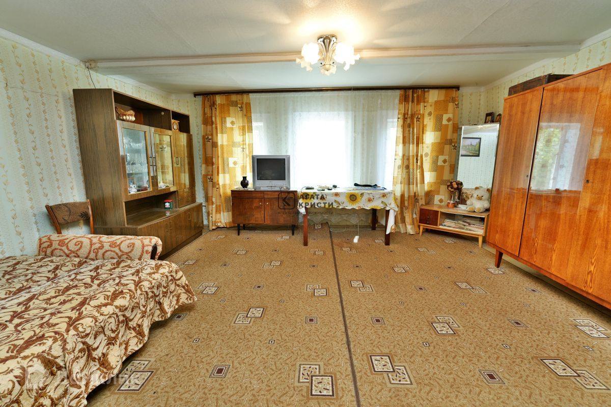 Дом площадью 51,2 кв.м на участке 6,5 соток. Построен из бревна, утеплен и обшит сайдингом. В доме две большие комнаты, просторная кухня, есть место для устройства санузла.