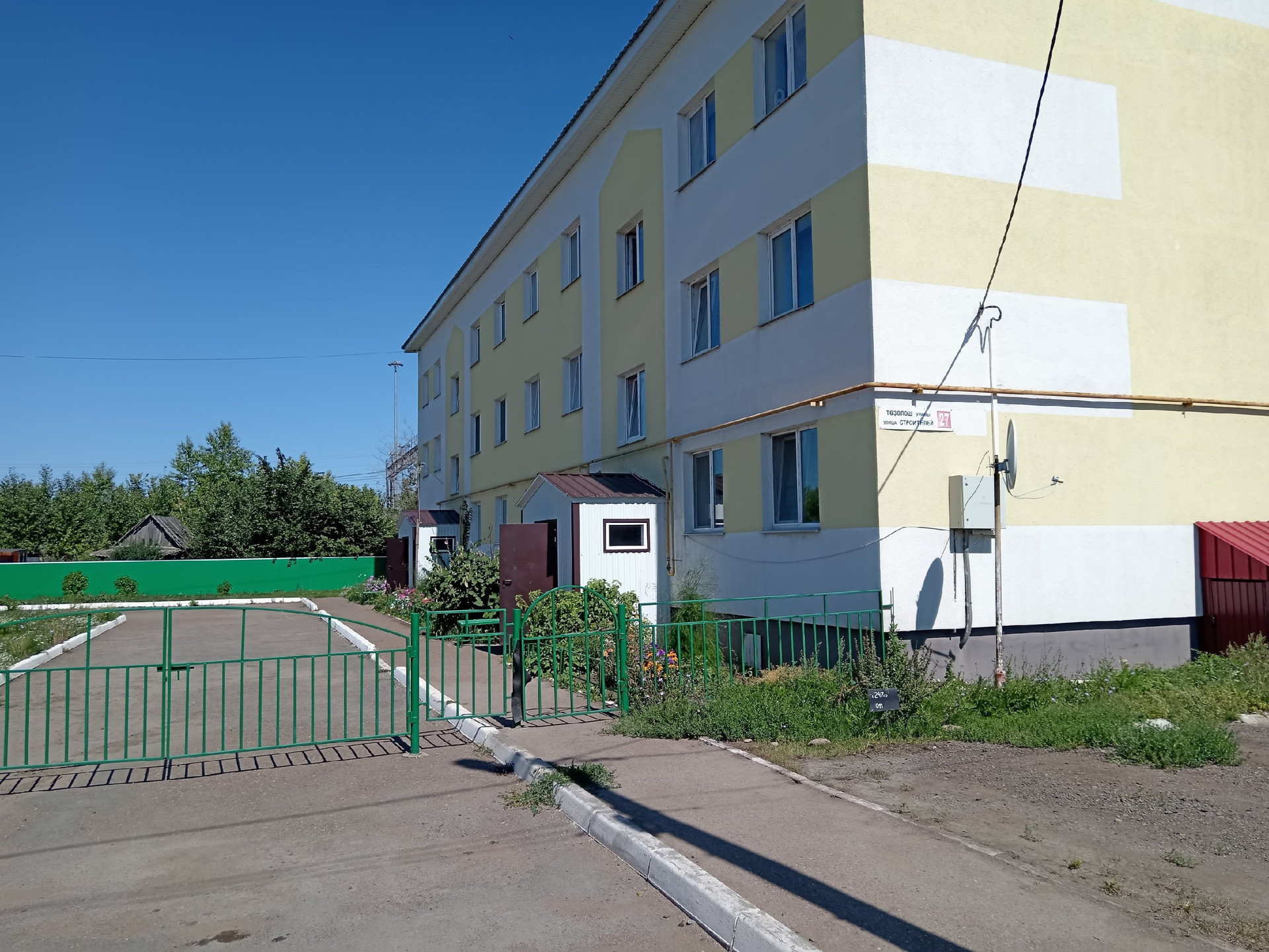 В доме два чистых подъезда. Можно провести интернет. Двор огорожен. Внутри двора небольшая детская площадка. Удобный выезд до трассы: до г. Уфы 60 км.