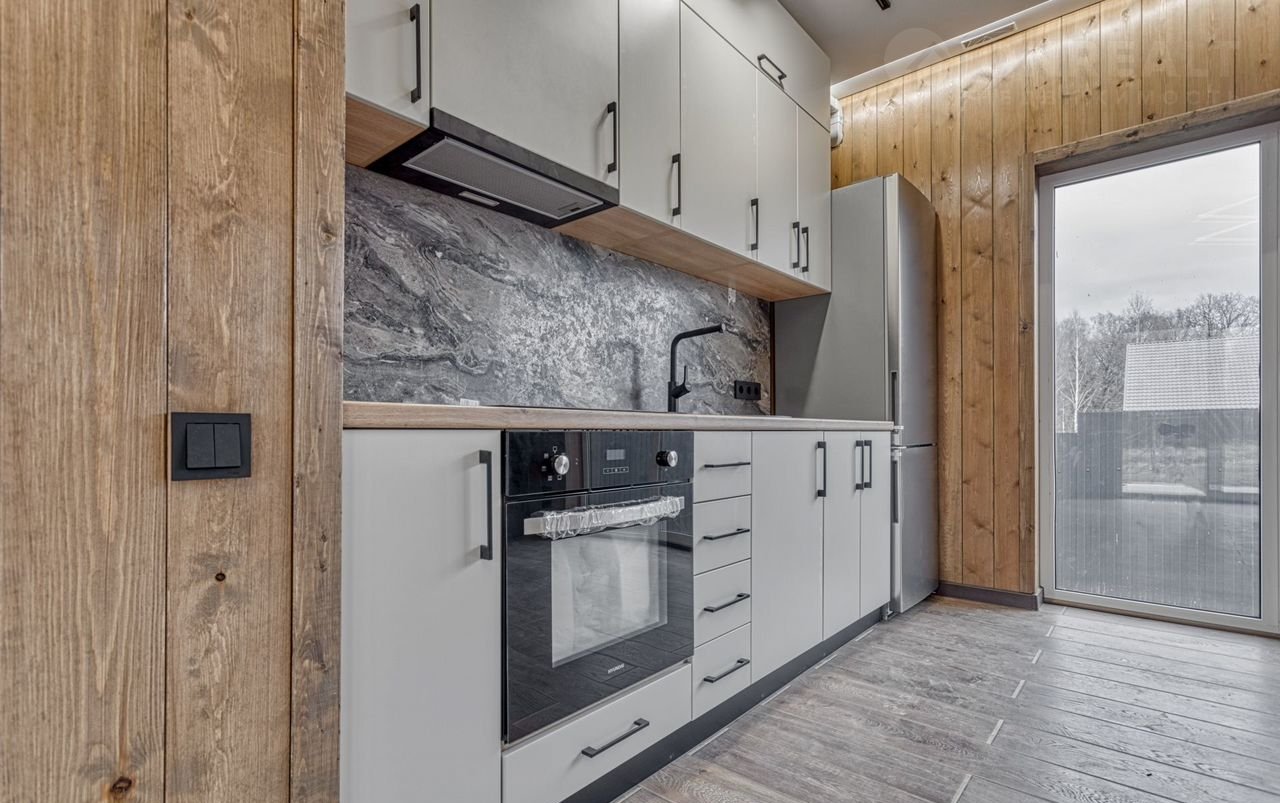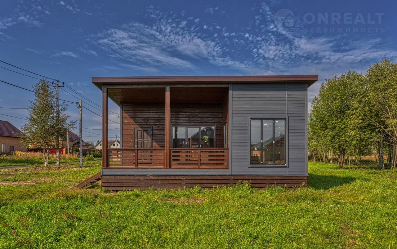 В доме 2 изолированные спальные комнаты по 13м2 с панорамным остеклением и выходом на закрытую террасу, просторная кухня-гостиная 21м2 укомплектованная техникой и вместительным кухонным гарнитуром. Из гостиной также можно попасть на закрытую террасу. Прихожая и санузел с душевым подиумом из плитки. В доме есть все для комфортного проживания.