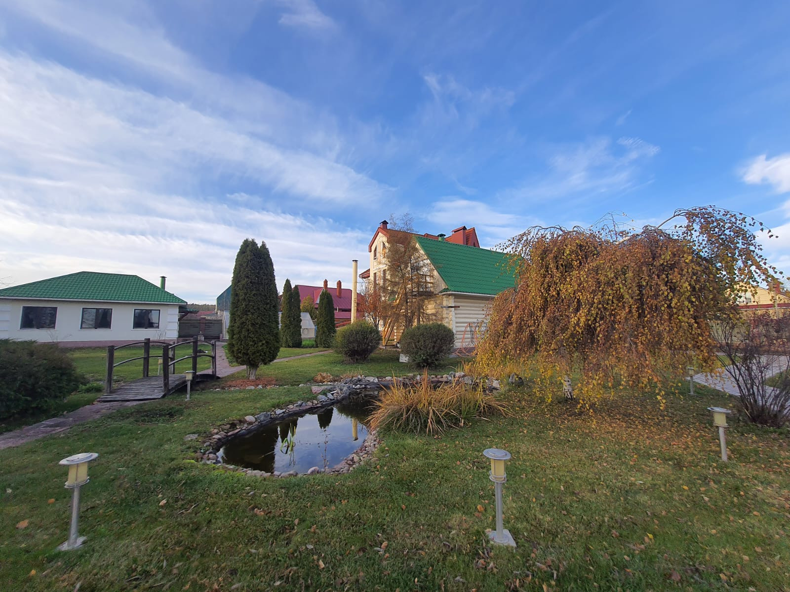 Участок спроектирован и высажен ландшафтным дизайнером. На территории свой пруд, артезианская скважина, колодец. В пруд летом запускали рыб, можно рыбачить.