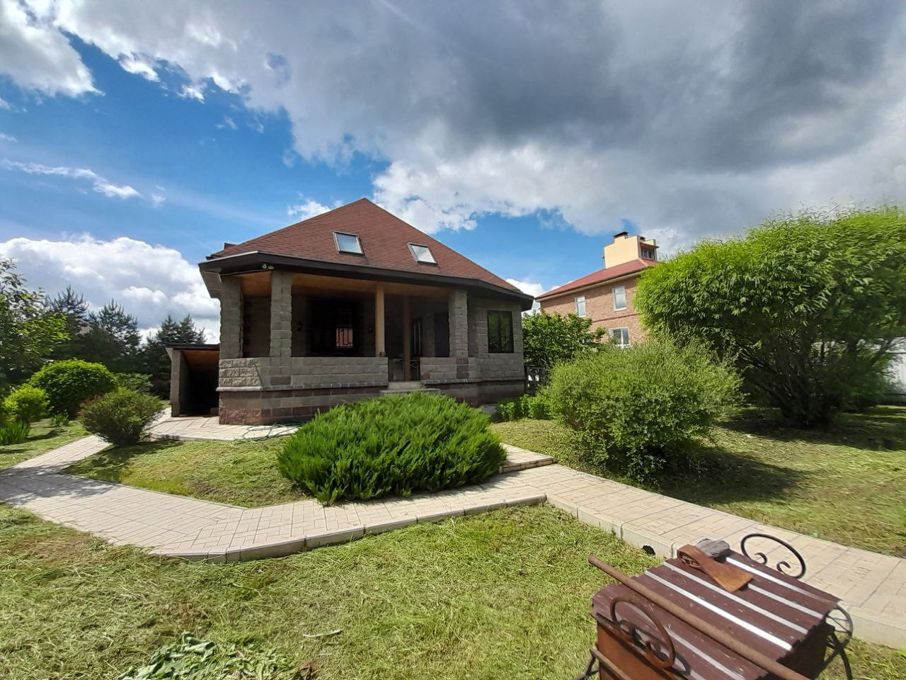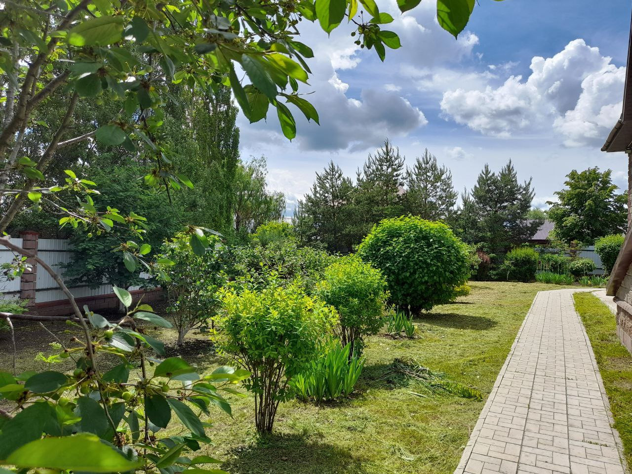Двор и дорожки выложены качественной брусчаткой!