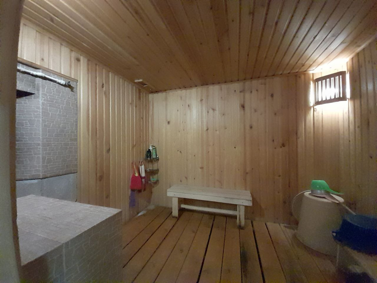 Баня из деревянного бруса, парная и помывочная чистенькая и аккуратная. Комната отдыха с отдельным санузлом.