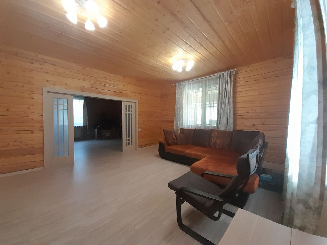 Внутренняя отделка первого этажа из натурального дерева, запах леса и свежесть в доме, это изюминка дома!