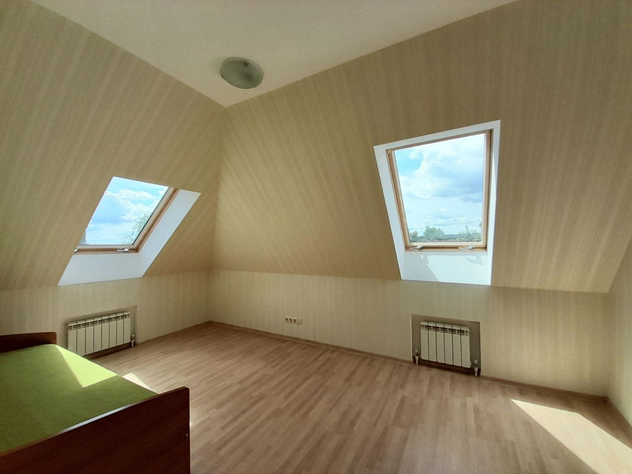 Второй этаж отделан современными материалами, дорогие качественные обои, ламинат, огромные мансардные окна системы FAKRO в каждой комнате, смотрится очень круто!