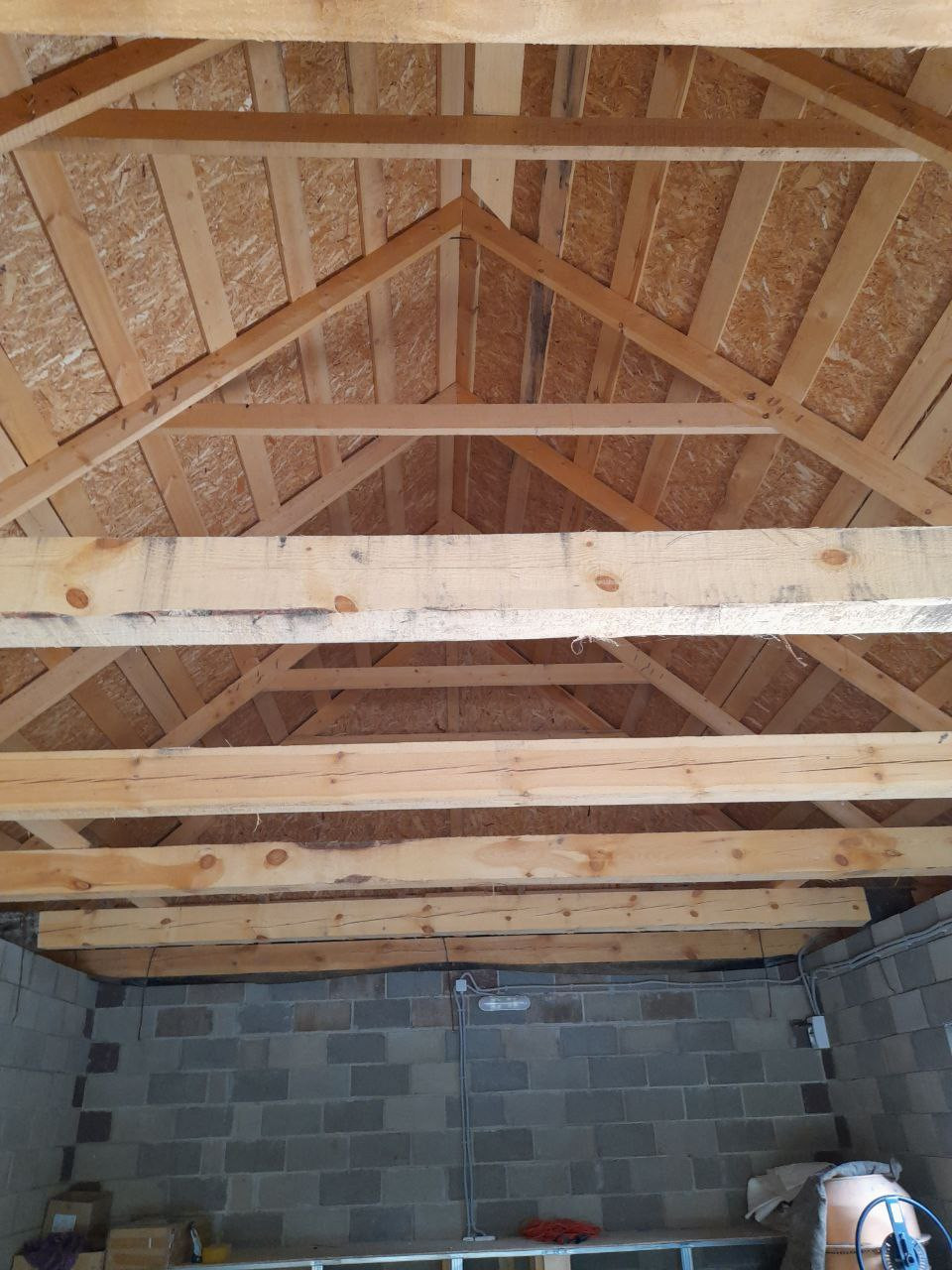 ✔️ кровля – все стропильные конструкции обработаны септиком, утепление (минеральная вата 300 мм), гибкая черепица Шинглас