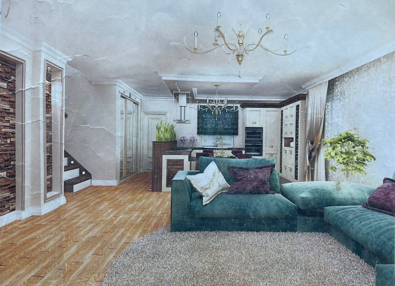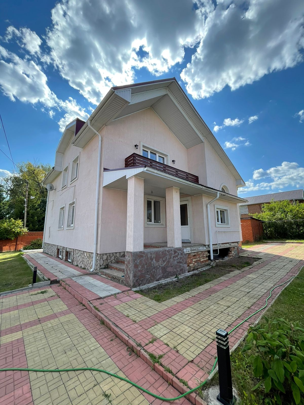 Второй дом общей площадью 300м2 в предчистовой отделке переменной этажности, всего 3 этаж плюс цокольный этаж, общее количество 5 комнат с кухней гостинной.