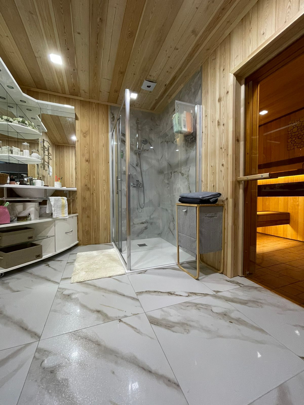 Первый дом общей площадью 120м2 в который входит отличная баня-сауна совсем новая, кухонная зона, гостиная комната с витражным окном и прекрасным видом, терраса-веранда и две спальные комнаты на 2 этаже