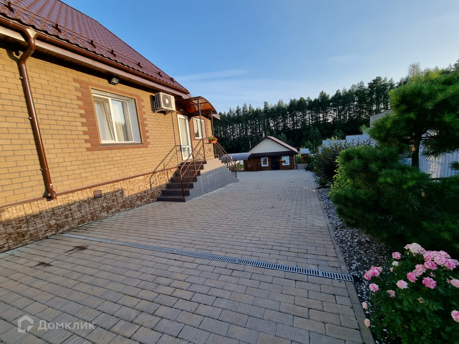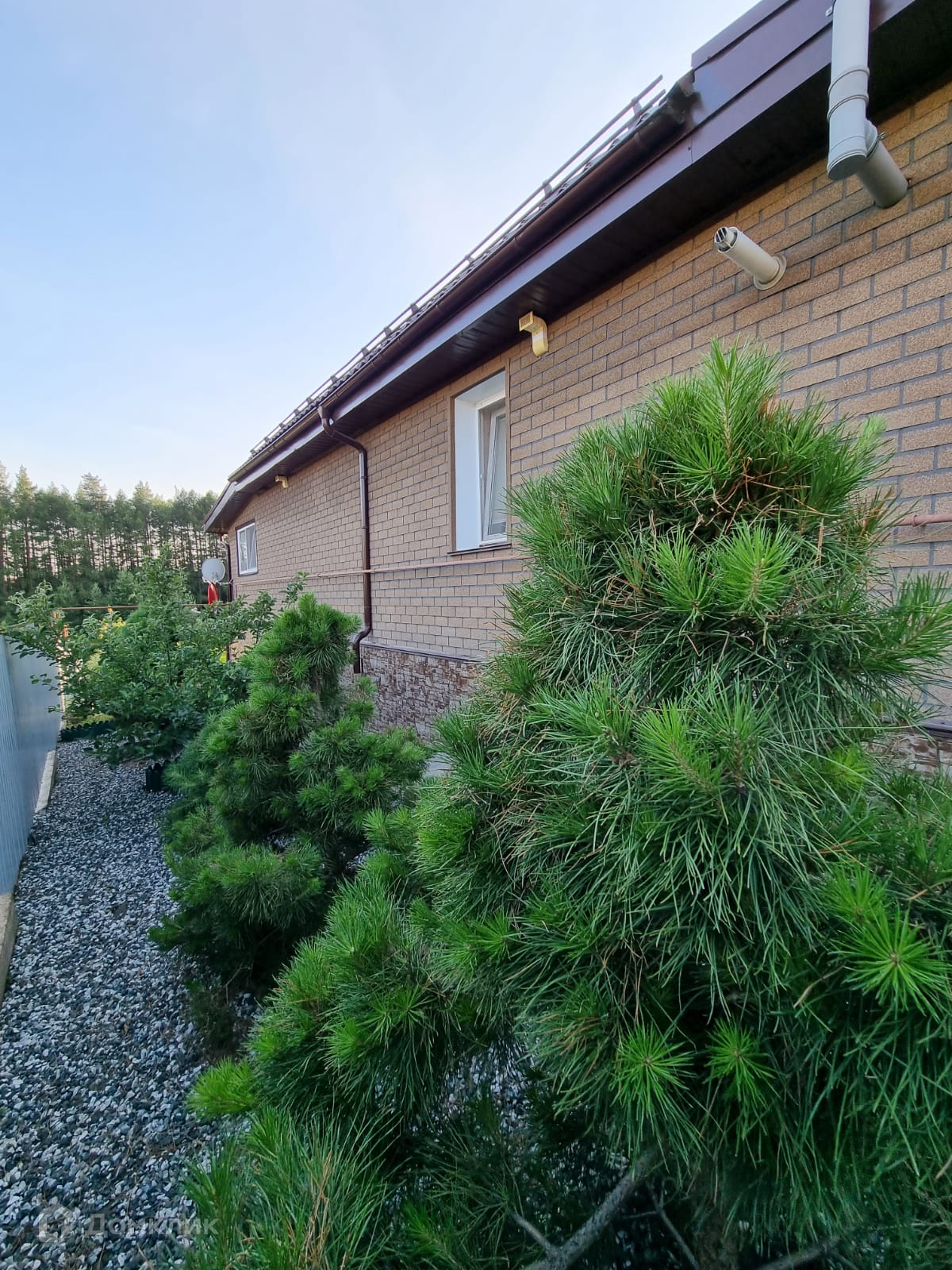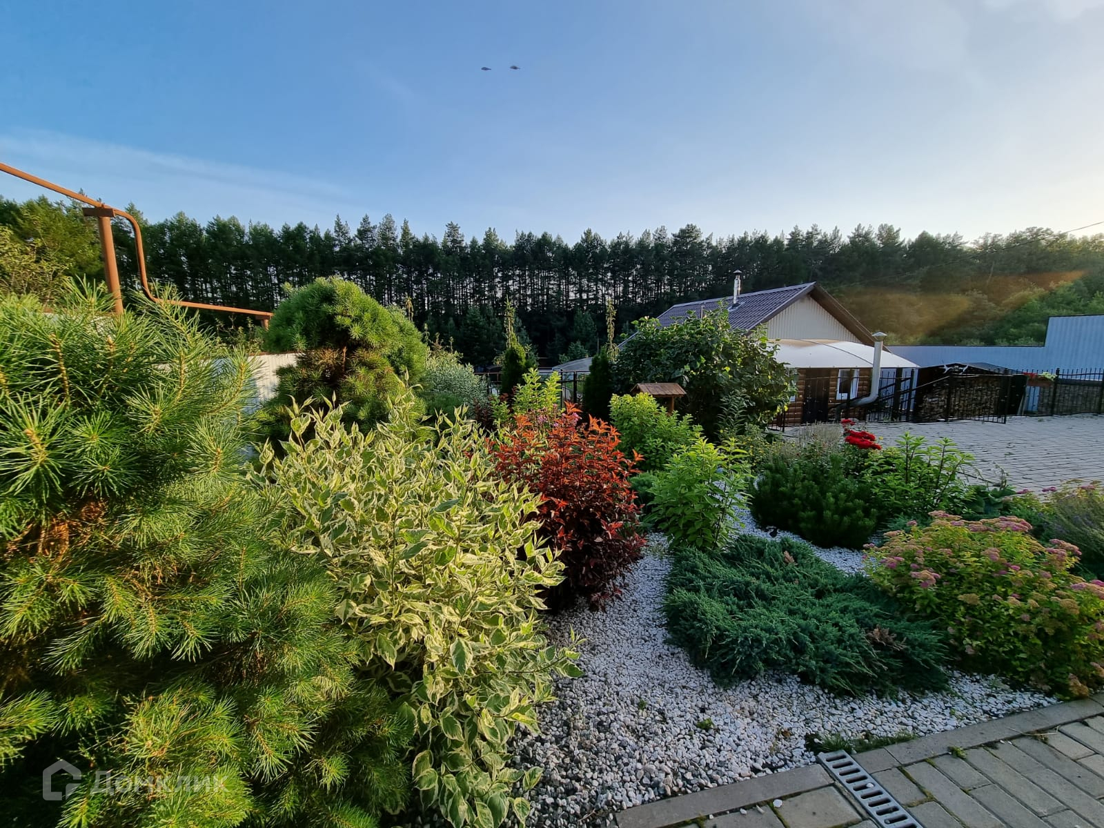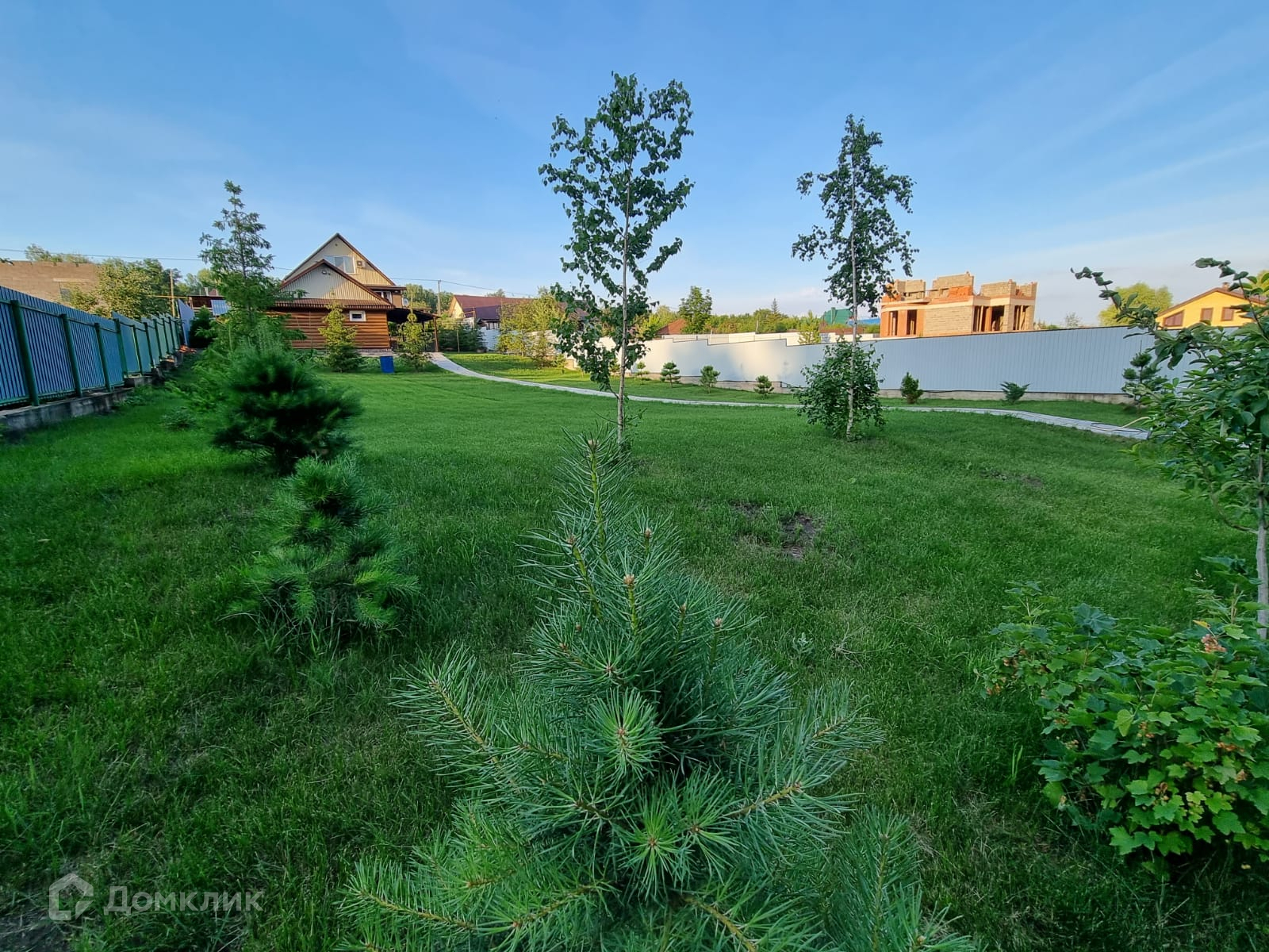 Большой, ухоженный участок 17 соток. На участке ландшафтный дизайн, декоративные деревья и кустарники, газон. Территория перед домом выложена брусчаткой.