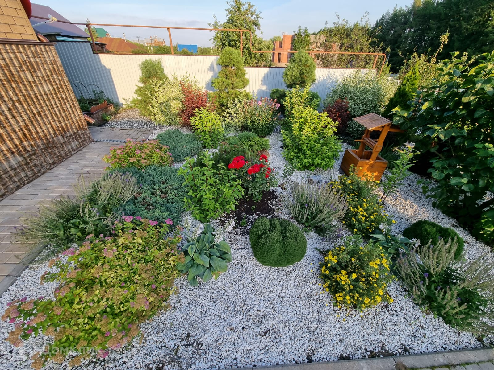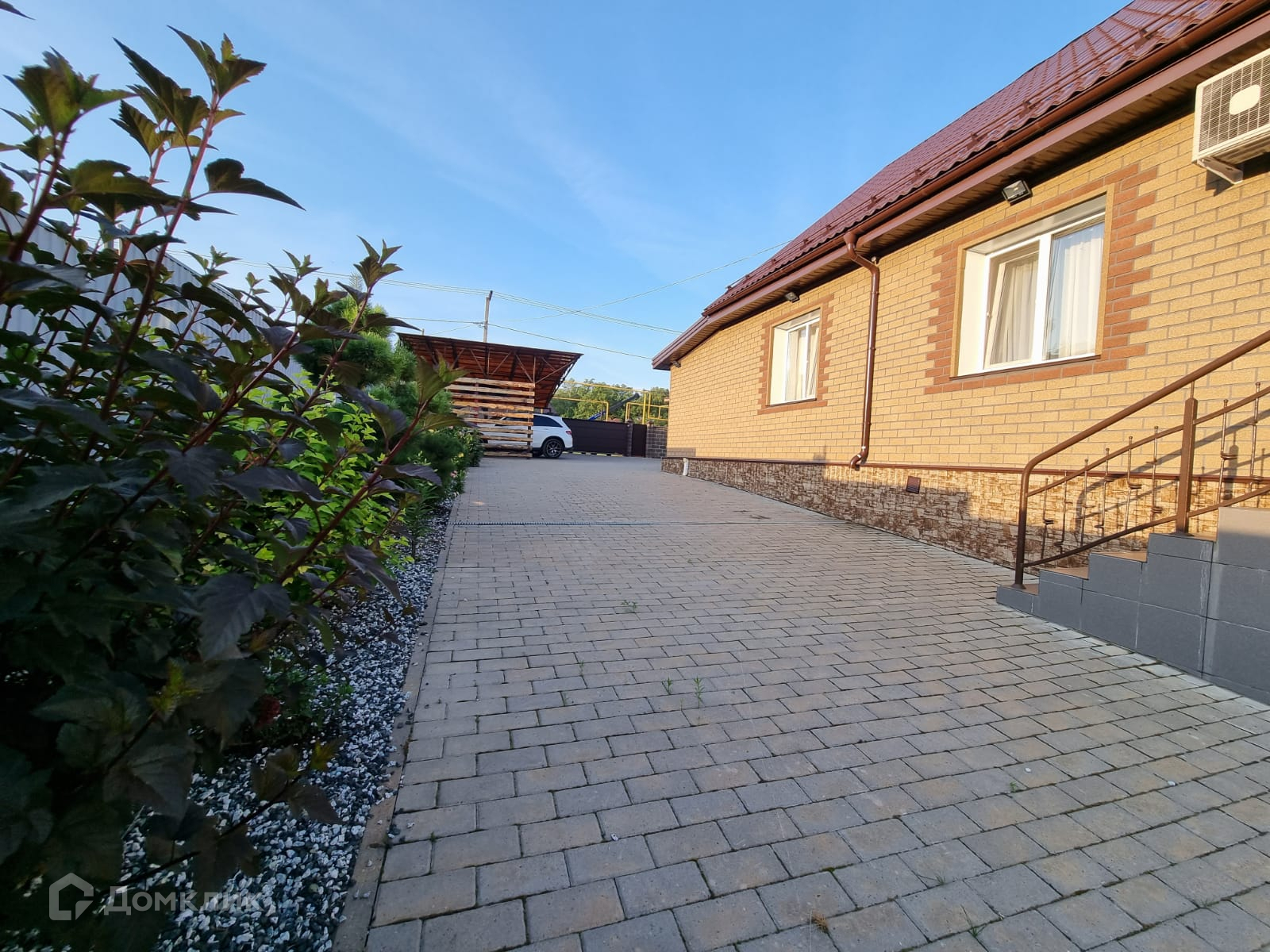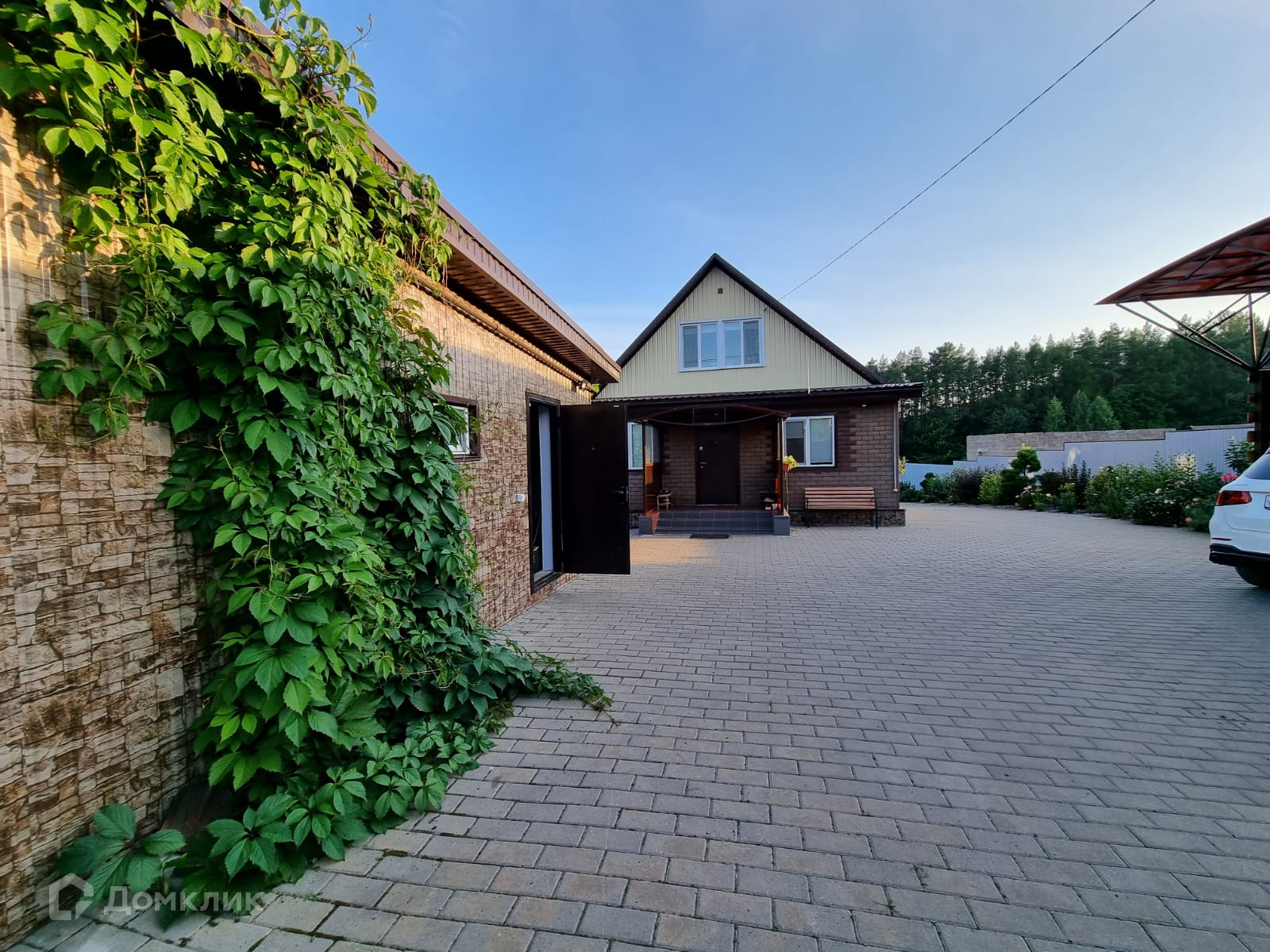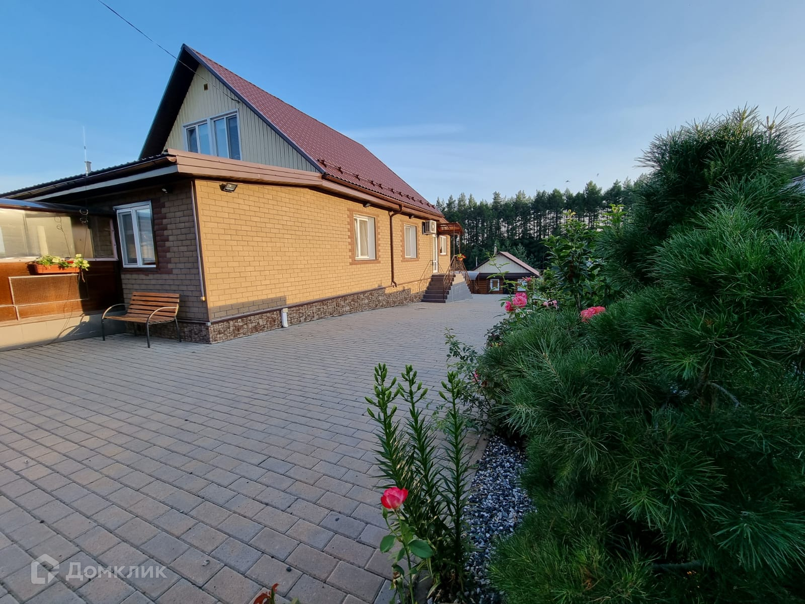 Большой, ухоженный участок 17 соток. На участке ландшафтный дизайн, декоративные деревья и кустарники, газон. Территория перед домом выложена брусчаткой.