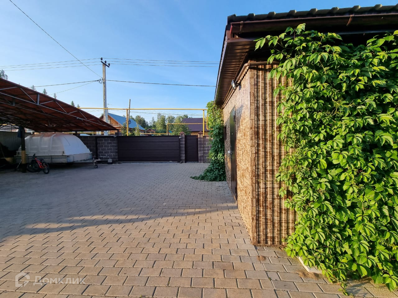 Участок огорожен забором. Автоматические раздвижные ворота на въезде.