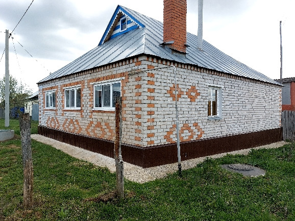 Продаю добротный кирпичный дом. Своя скважина и система канализации, газовое отопление, есть и печка. Ухоженный плодородный участок,  плодоносящие яблони, вишни  и  т.д.  Имеется также глубокий, сухой подвал из натурального камня. Все хранится до следующего урожая в целости и сохранности. Баня и мастерская дубовые, дом внутри обшит вагонкой.От райцентра 3 км, автобусы ездят хорошо, есть в деревне медпункт, магазин, клуб.