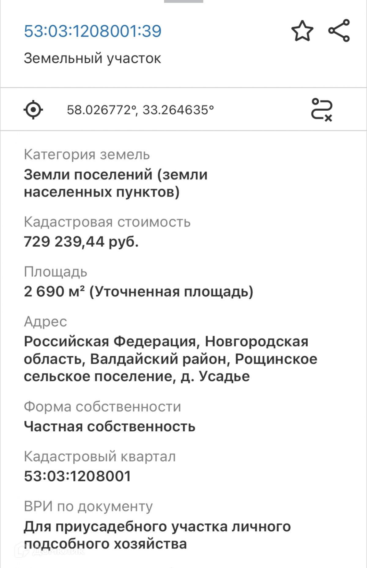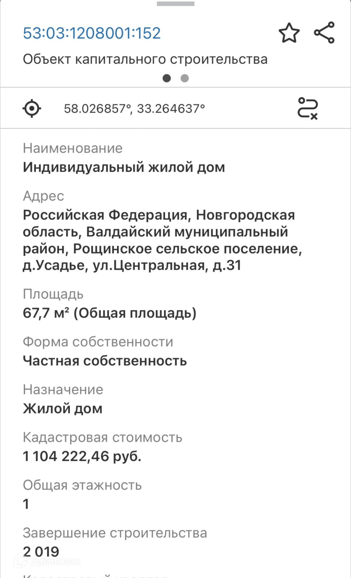 Кадастровый номер дома - 53:03:1208001:39.
