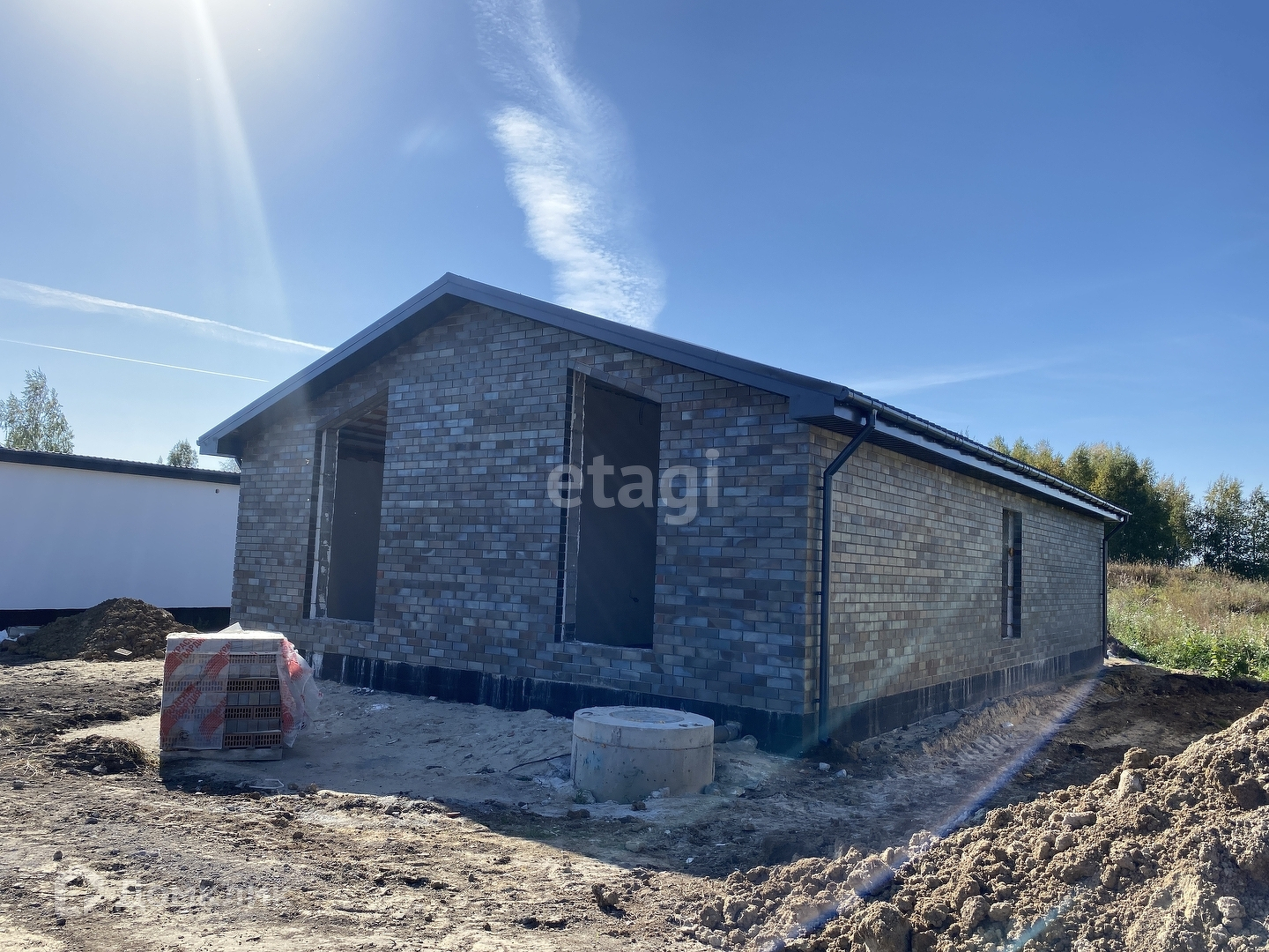 Дом сдается в улучшенной черновой отделке - штукатурка под маяк, стены зашпаклёваны, стяжка пола, окна пластиковые 3-ой стеклопакет 75 профиль; входная дверь с терморазрывом.