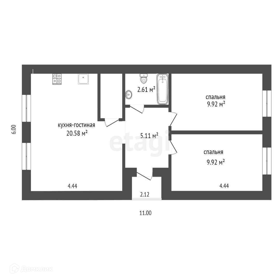 Общая площадь 52 м2
