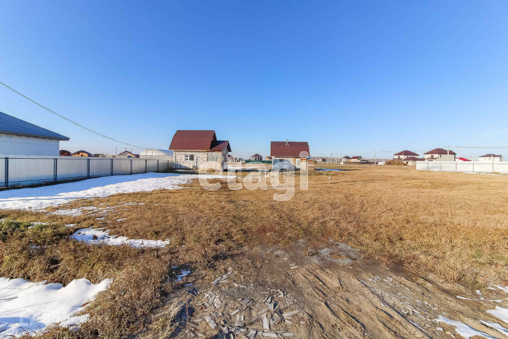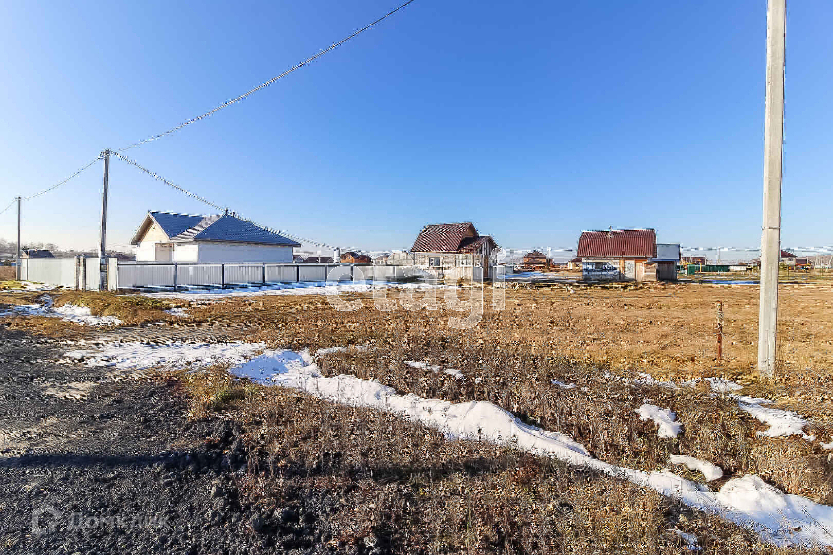 Участок высокий. Отступы при строительстве соблюдены. Широкие дороги чистят всю зиму. Ходит школьный автобус.