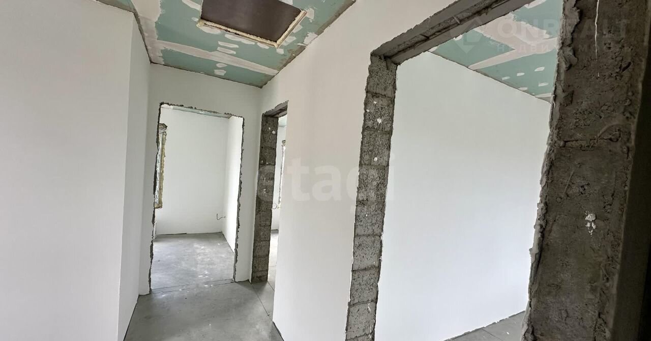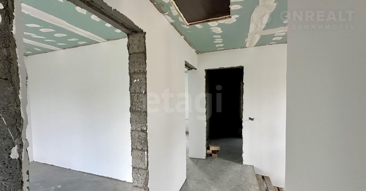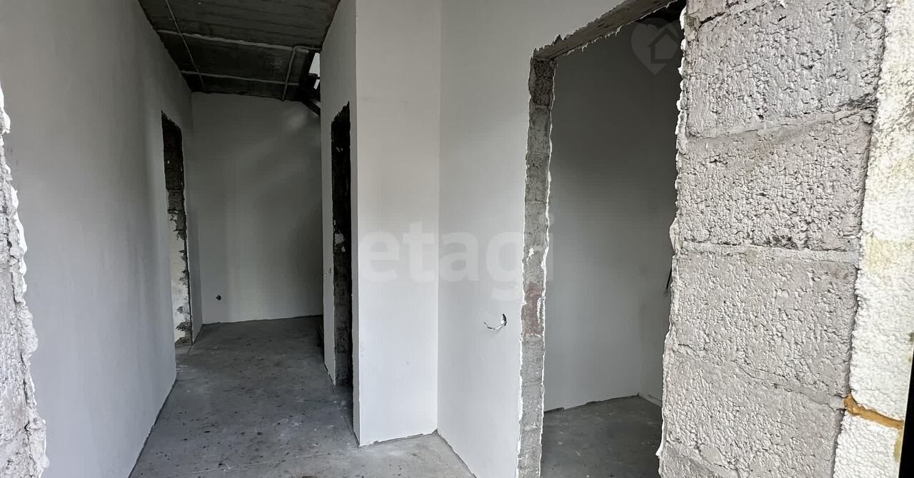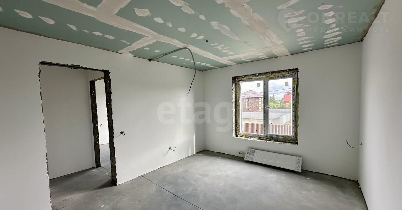 Внутренние работы выполнены с высоким качеством: стены отштукатурены и выровнены под маяк, готовые к поклейке обоев.