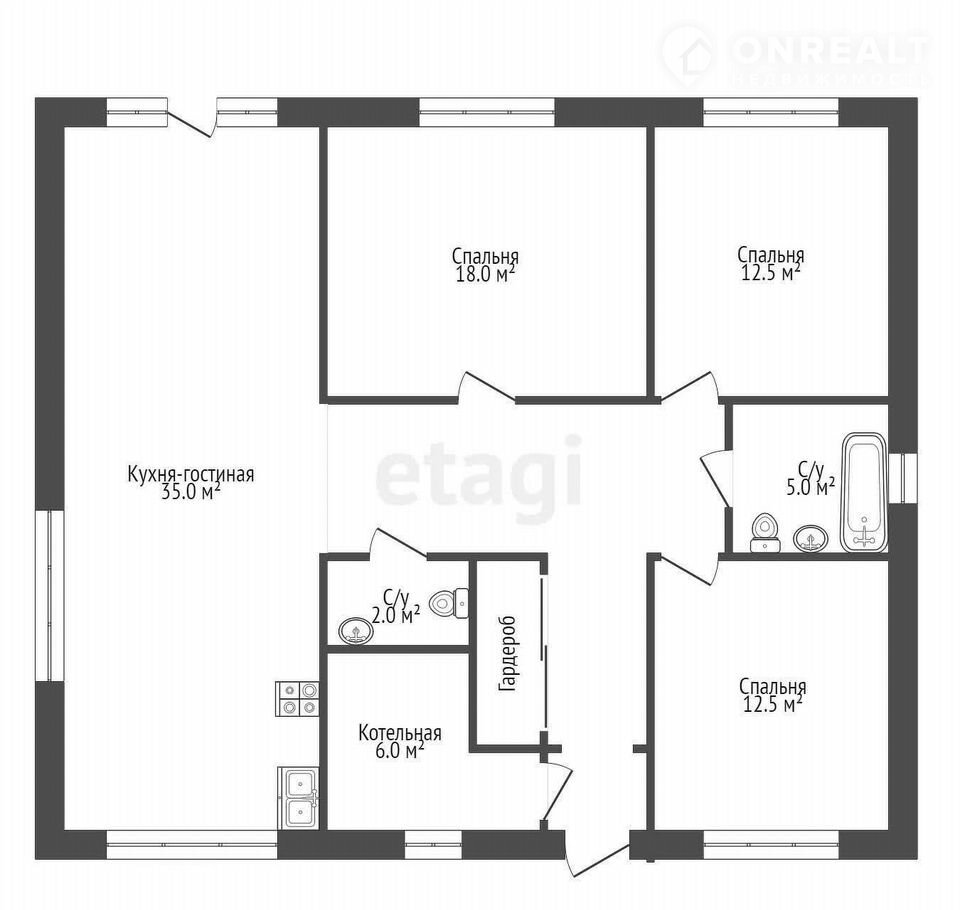 ✔ 3 спальни + большая кухня-гостиная 30 м² с выходом на крытую террасу.