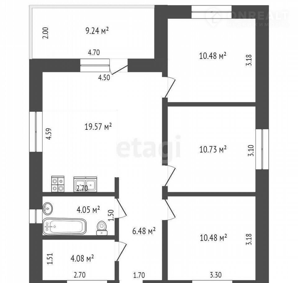 Общая площадь 75 м2