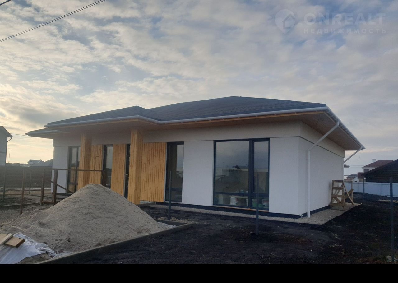 Дом отличается удобной планировкой: просторная кухня-гостиная, три жилые комнаты, большой санузел и кладовая. Большие окна делают комнаты светлыми и уютными. Из гостиной есть выход на террасу (15 кв. м.).