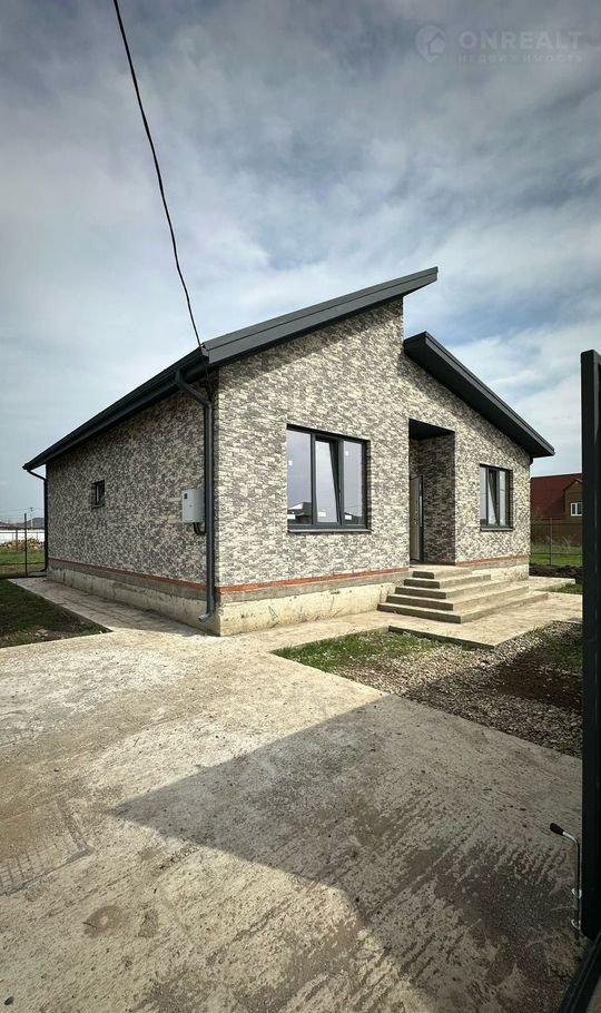 Дом отличается удобной планировкой: просторная кухня-гостиная, три жилые комнаты, большой санузел и кладовая. Большие окна делают комнаты светлыми и уютными. Из гостиной есть выход на террасу (15 кв. м.).