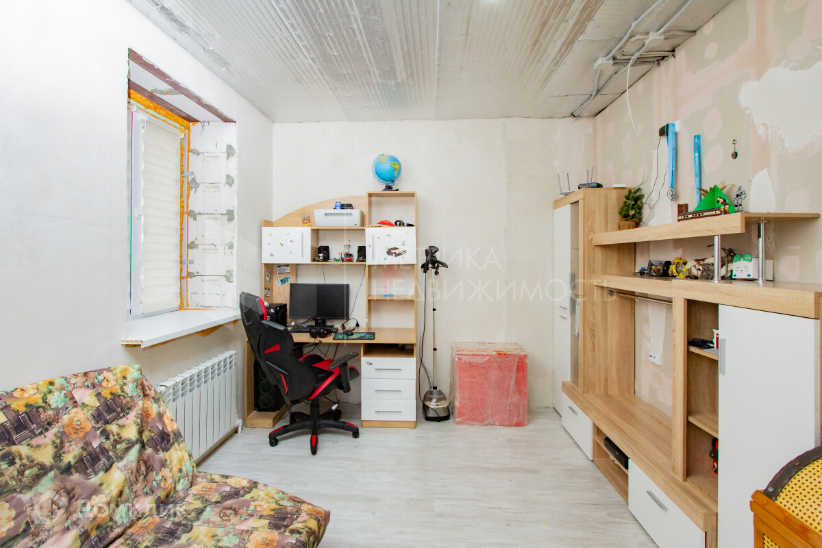 Первый этаж кухня-гостиная, туалет, прачечная, в прихожей встраиваемый большой шкаф-купе. Второй этаж три спальни, ванная комната. В одной из спальни также имеется встраиваемый шкаф-купе. Дом подготовлен под чистовую отделку, можно дополнить косметическим ремонтом по своему вкусу.