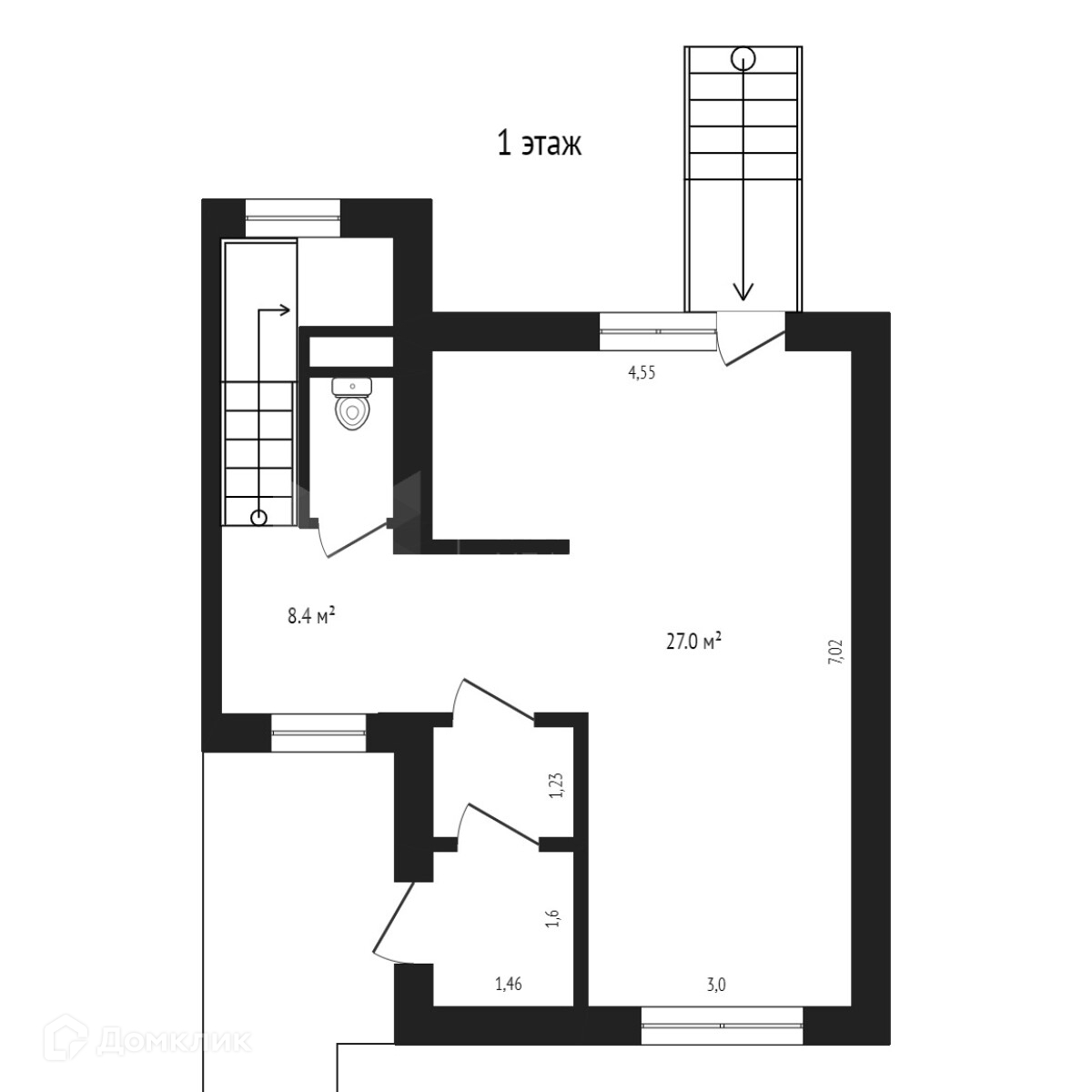 На первом этаже: кухня-гостиная, сан. узел, котельная, пристроена большая терраса.