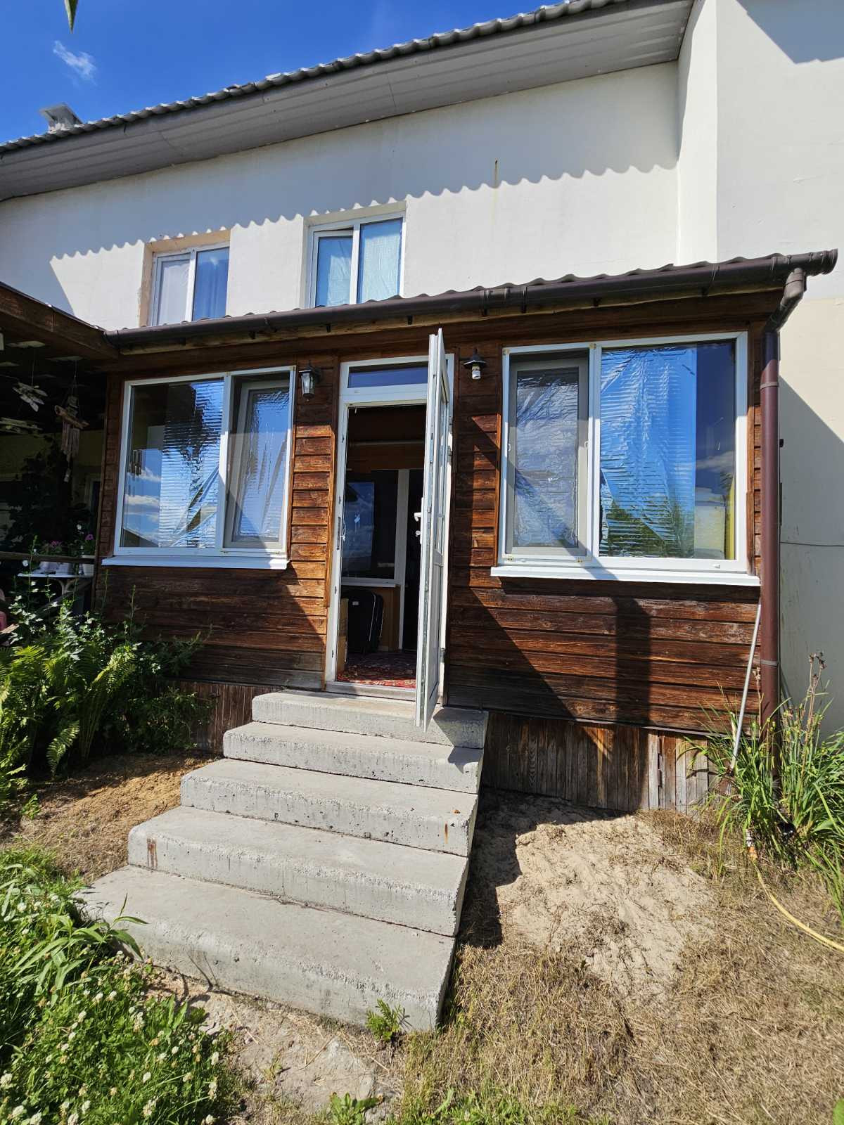 1 этаж: прихожая, холл, кухня-гостиная, котельная, санузел, крытая терраса с выходом на собственный участок площадью 3 сотки. На участке расположена добротная баня, теплица, насаждения.
