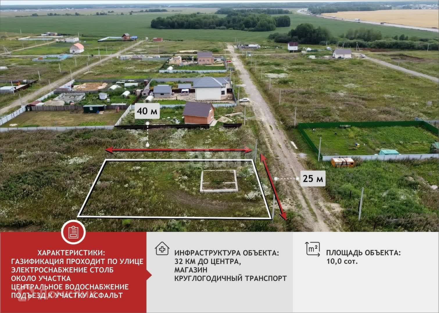 Категория земель - земли населённых пунктов. Разрешенное использование - индивидуальные жилые дома. Правильная прямоугольная форма. К участку сделан заезд, стоит электрический столб, счетчик на столбе, возле участка расположен газовый стояк.
