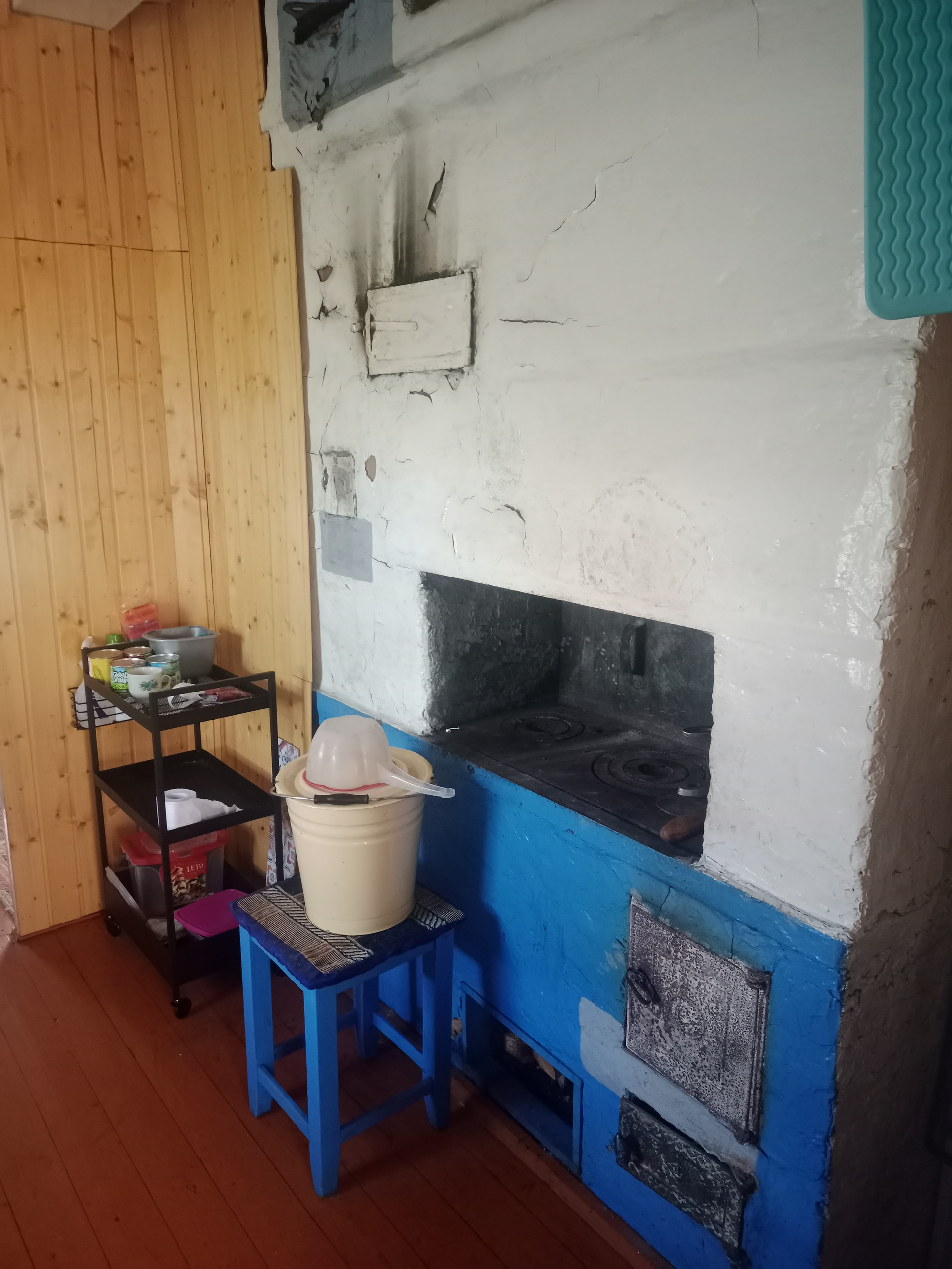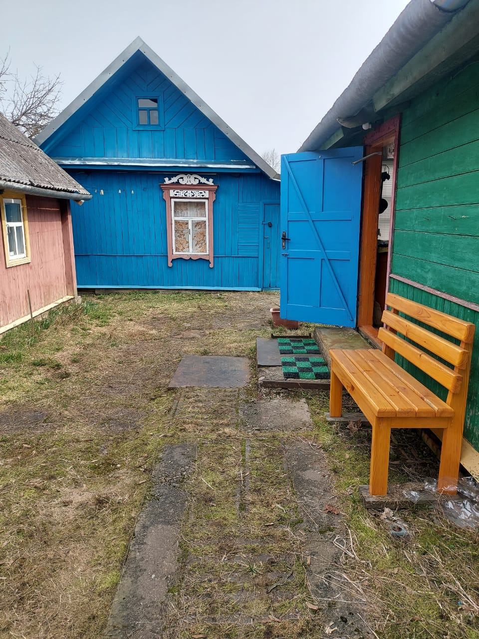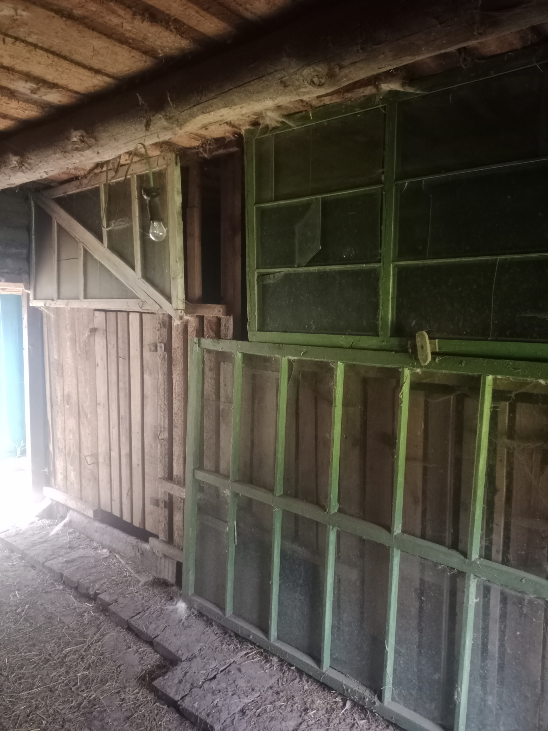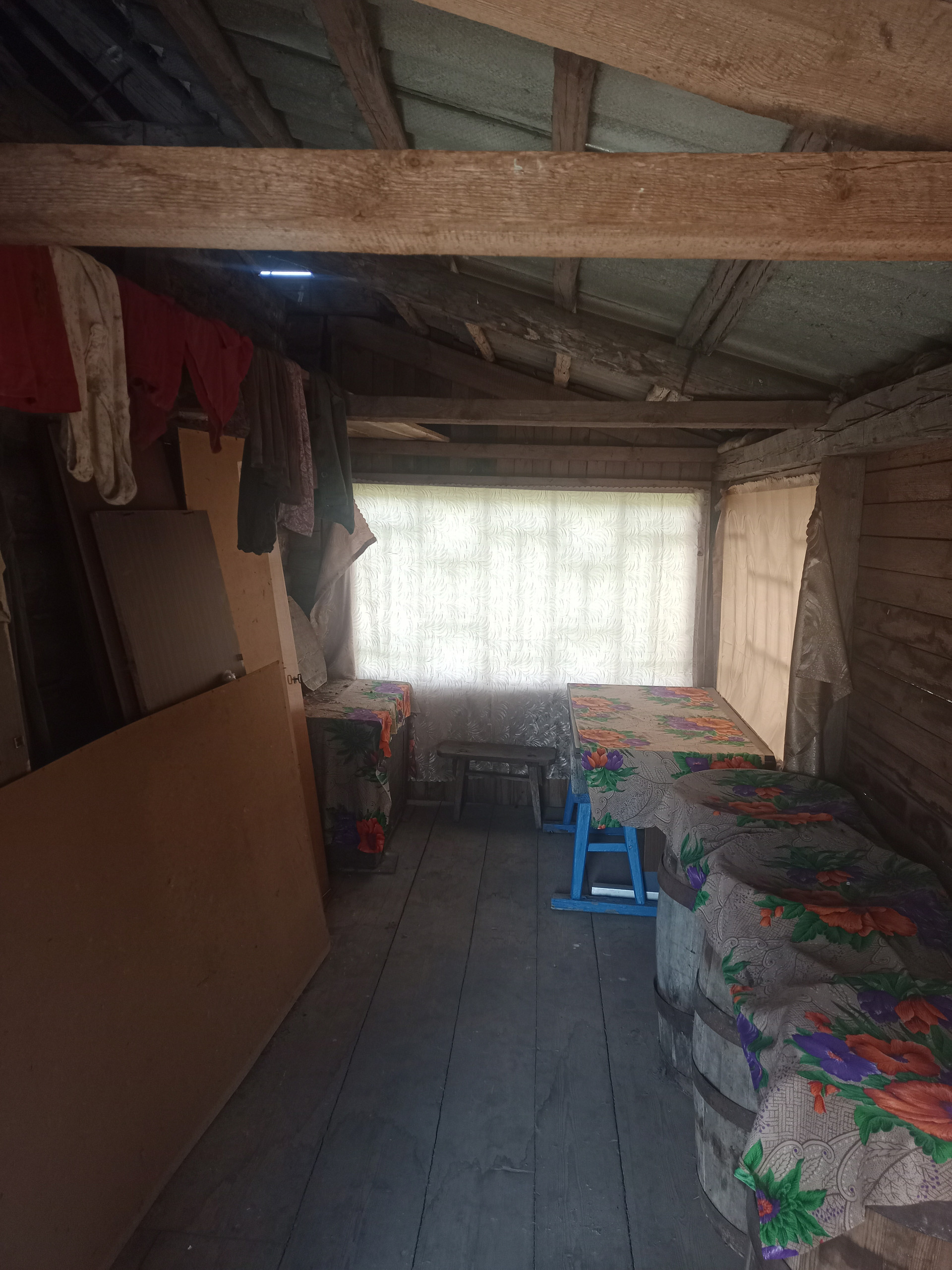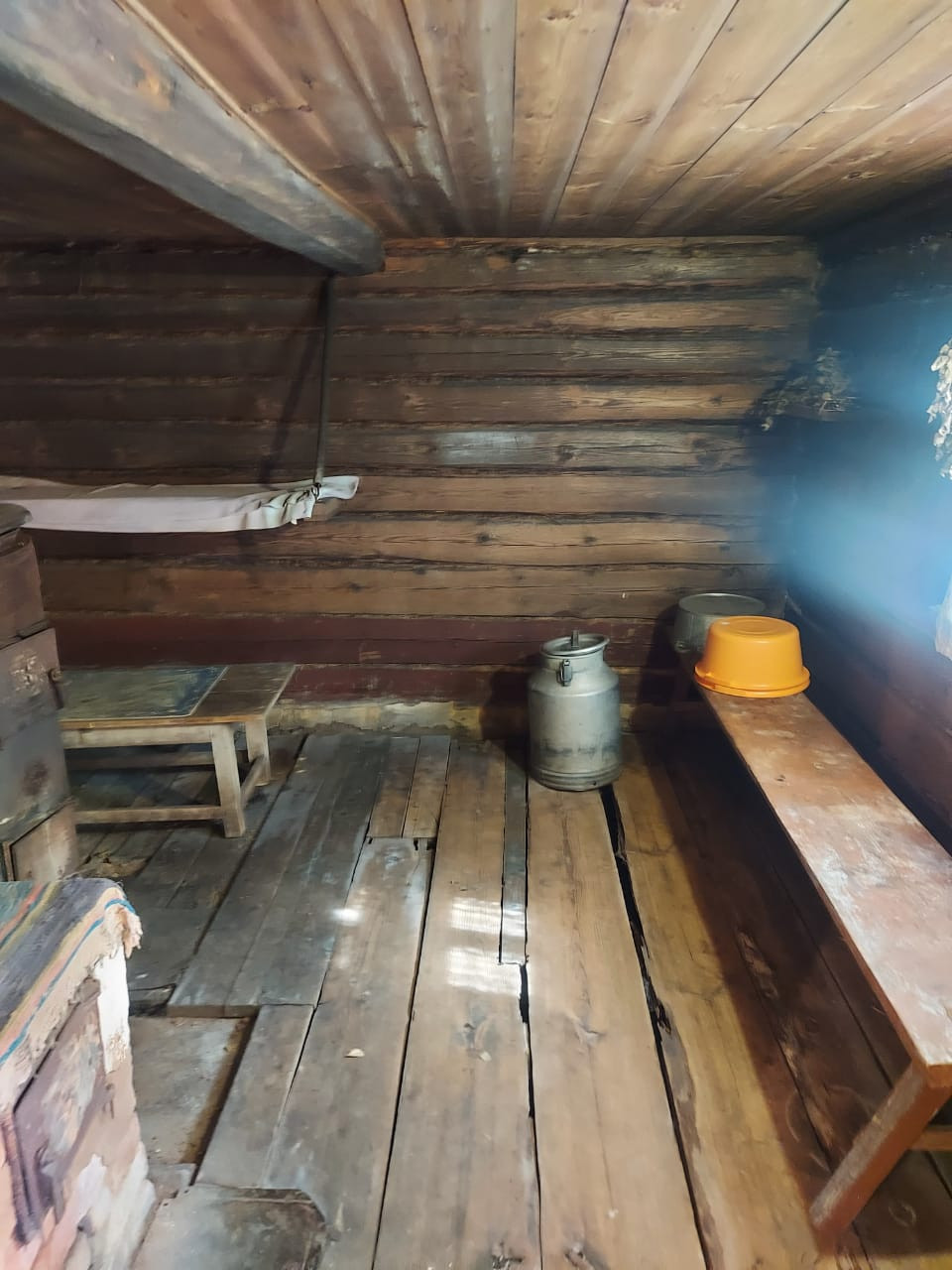 Далее: столовая - гостиная и большая общая спальня, дополнительная печь для отопления, (2 комнаты). Окна - добротные двойные деревянные рамы.