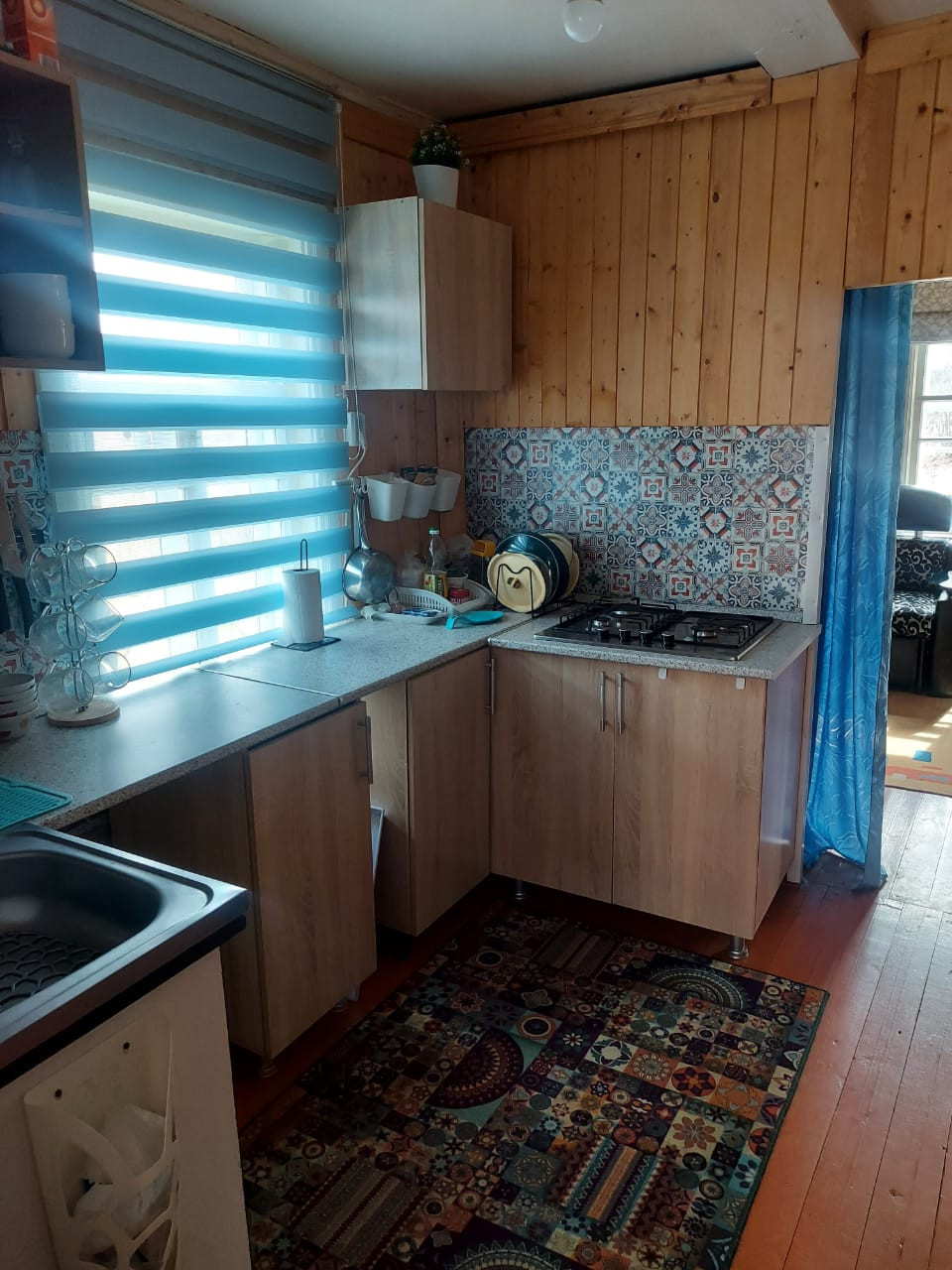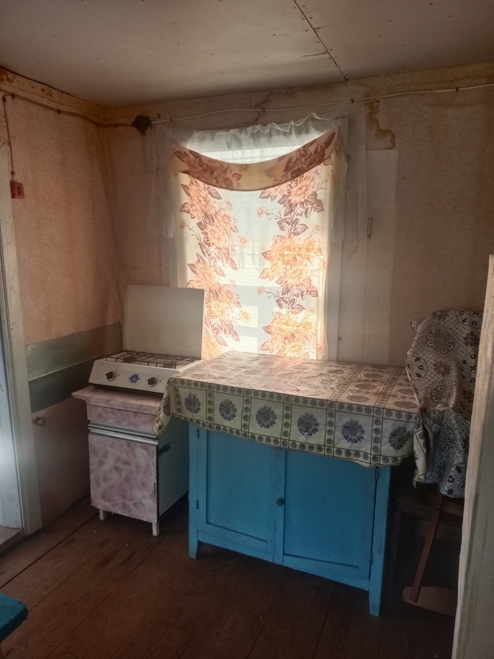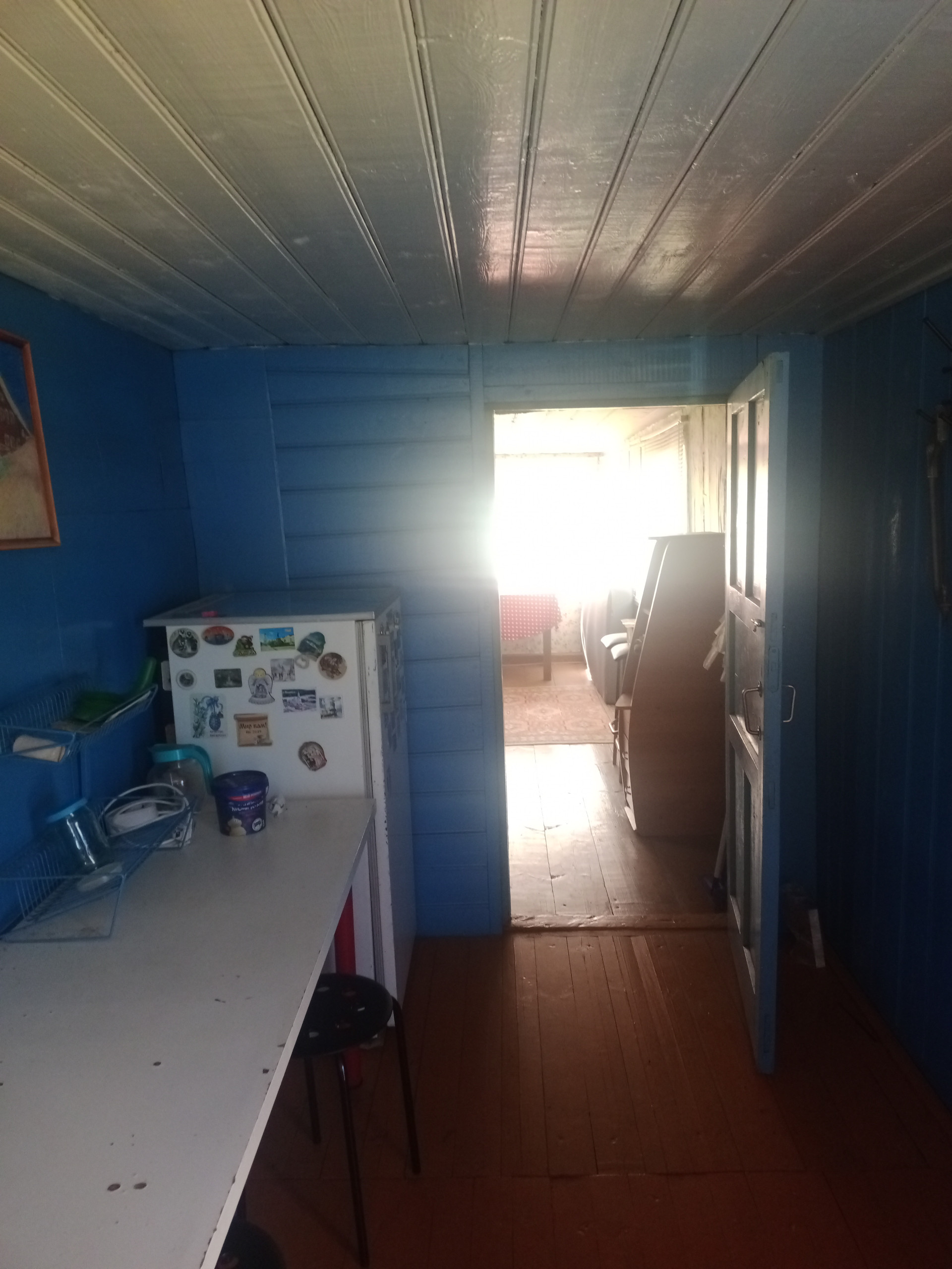 Второй дом на участке - крепкий, рубленый, обшит доской. В доме: веранда, кухня, печка - для отопления и приготовления еды (есть газовая 2-х конфорочная плитка), 1 небольшая комната. Потолки высокие. Состояние: нормальное, косметический ремонт - по желанию.
