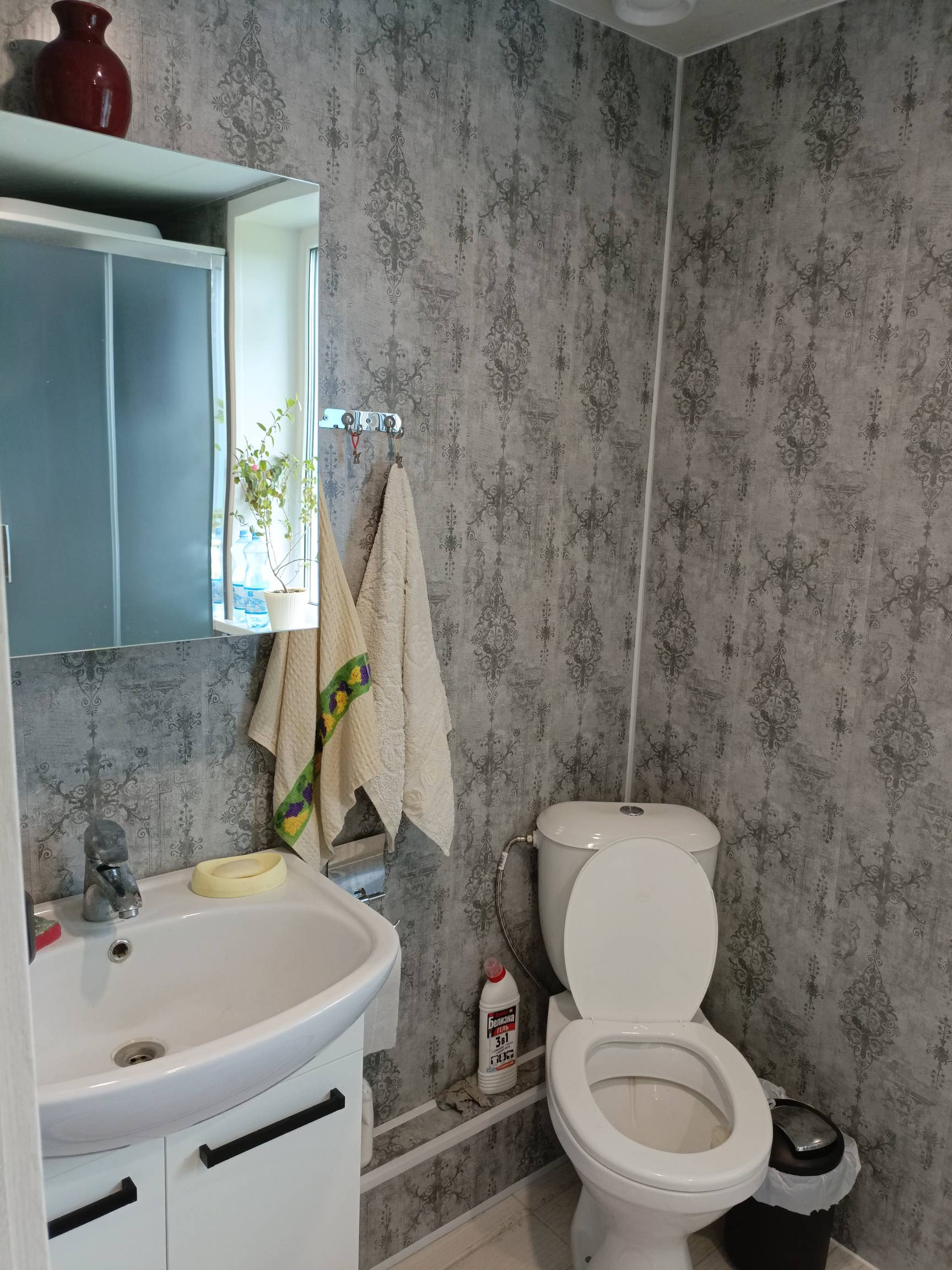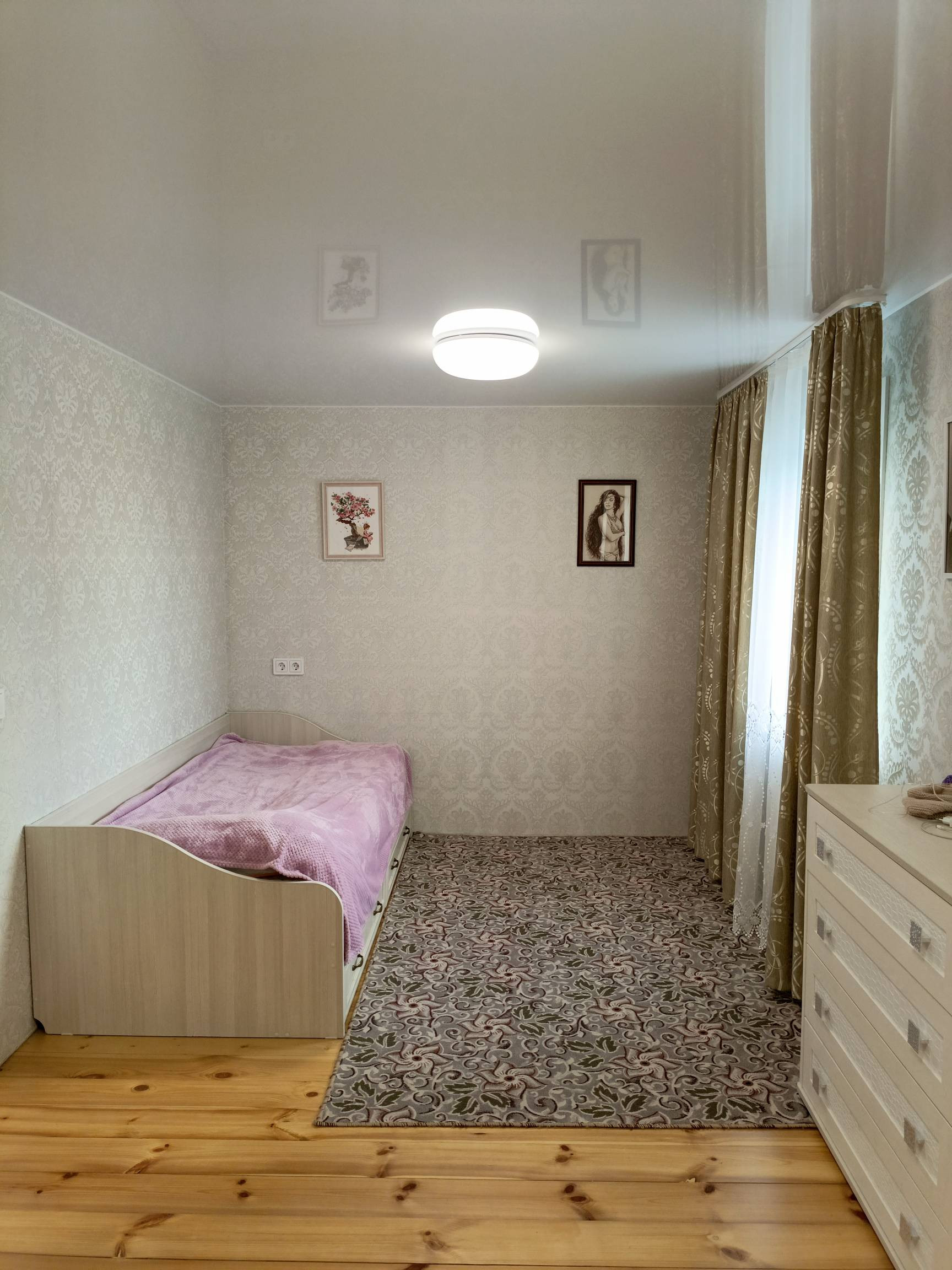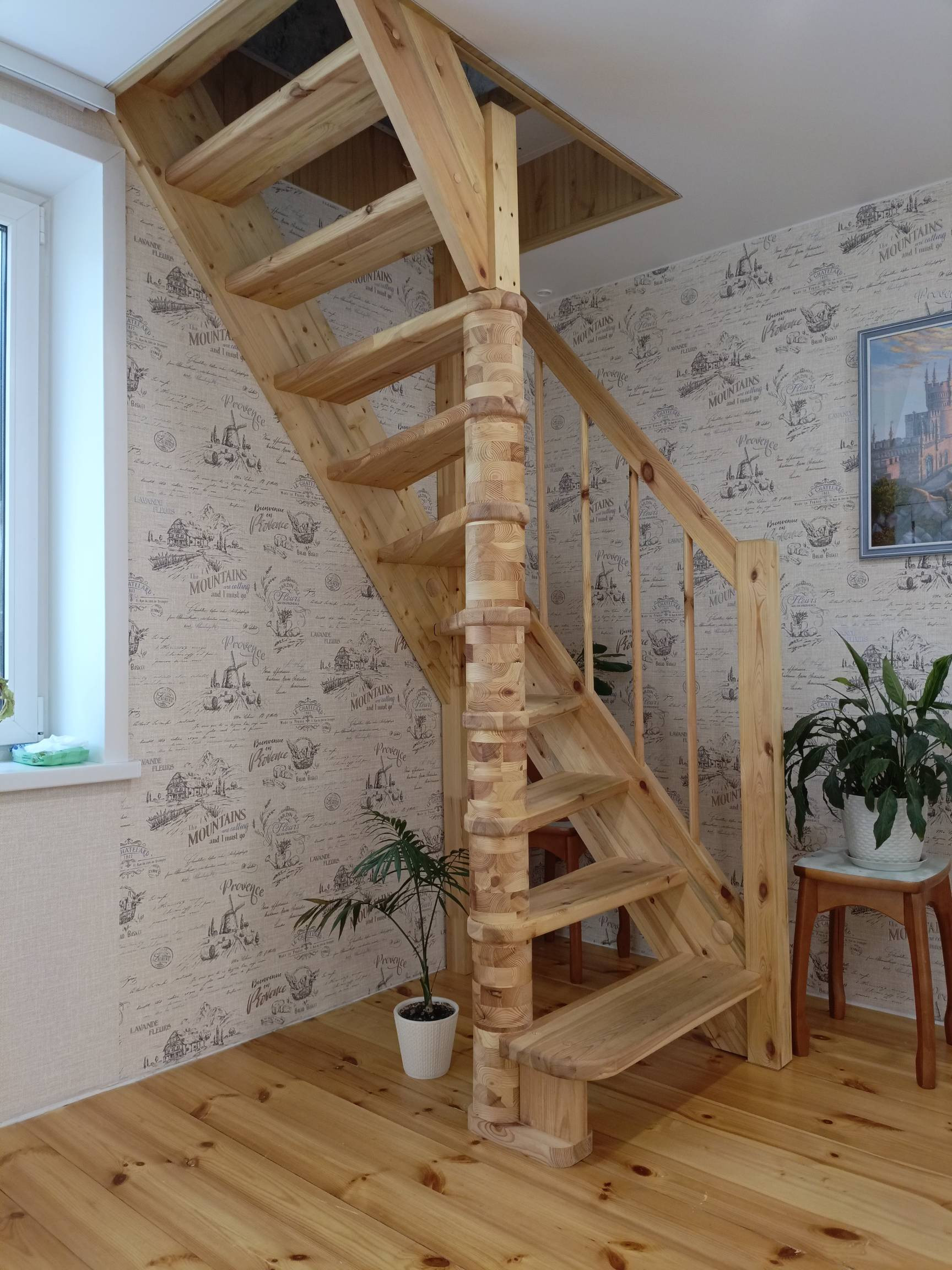 Третий этаж мансардный, тоже сделан свежий косметический ремонт, постелен линолеум, поклеены обои, сделан потолок.В мансарде остается вся мебель.