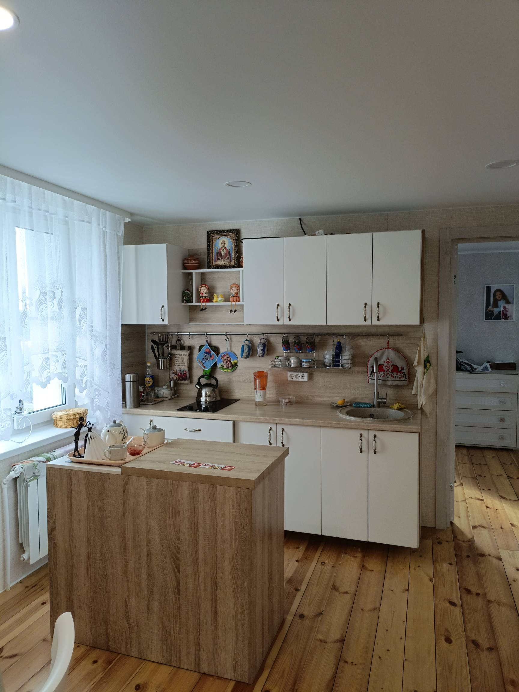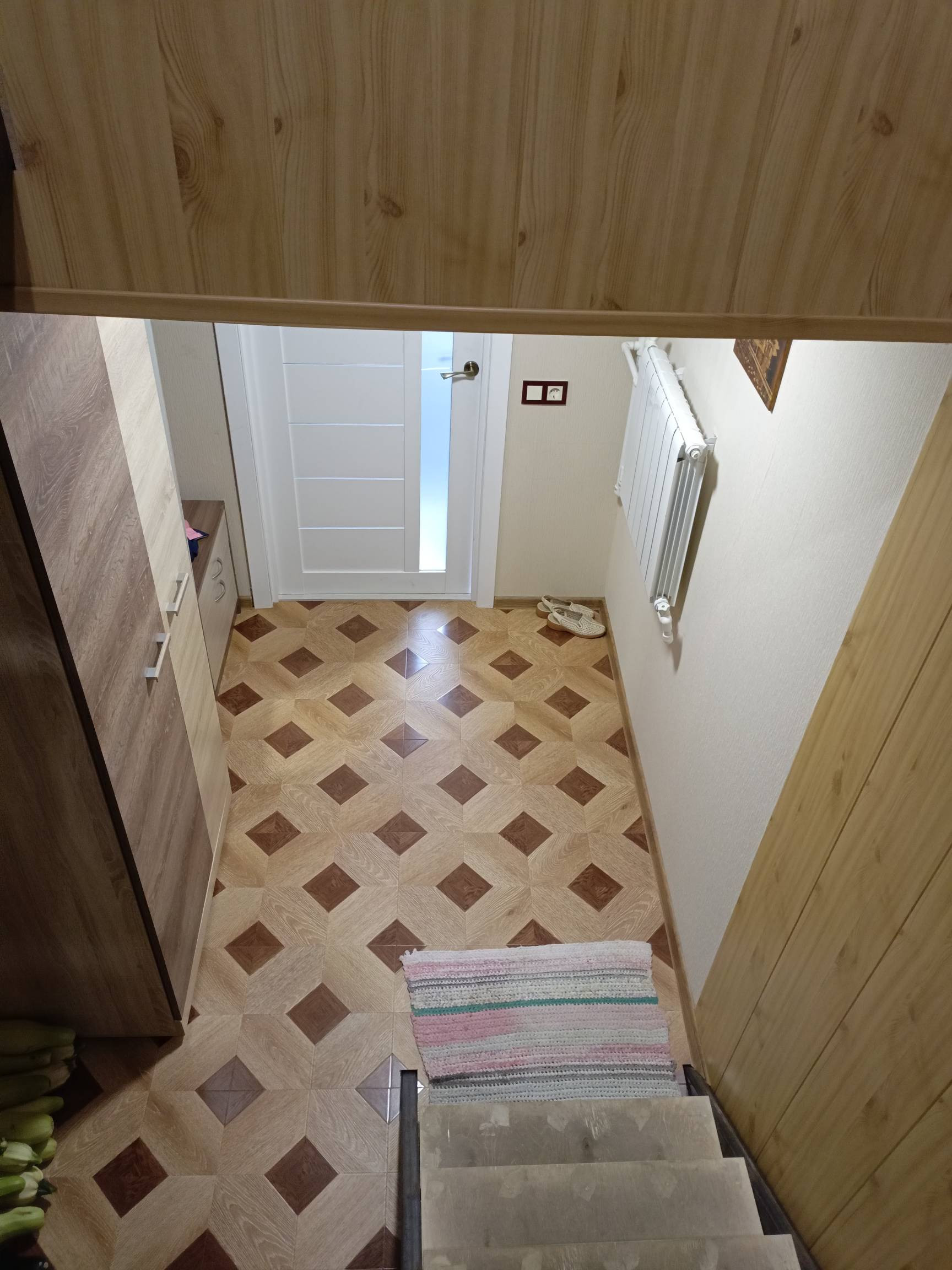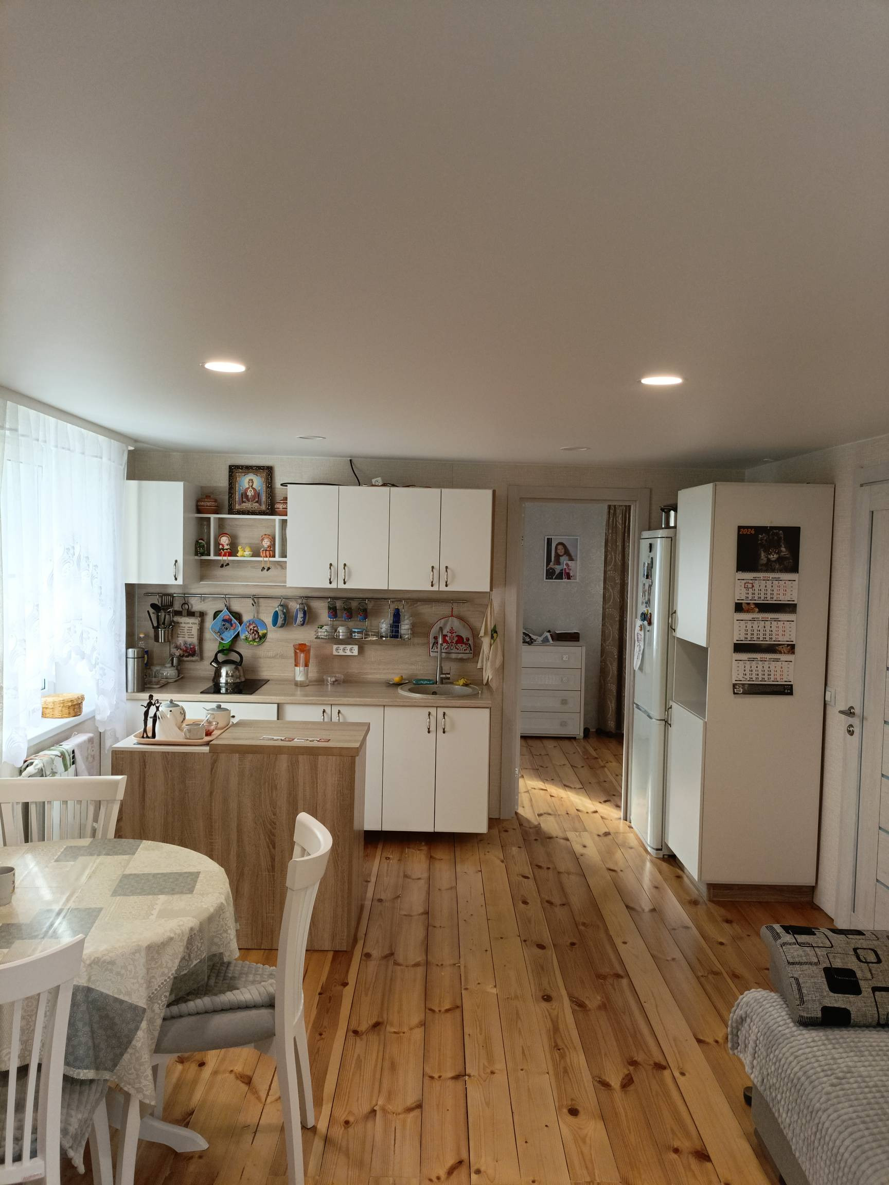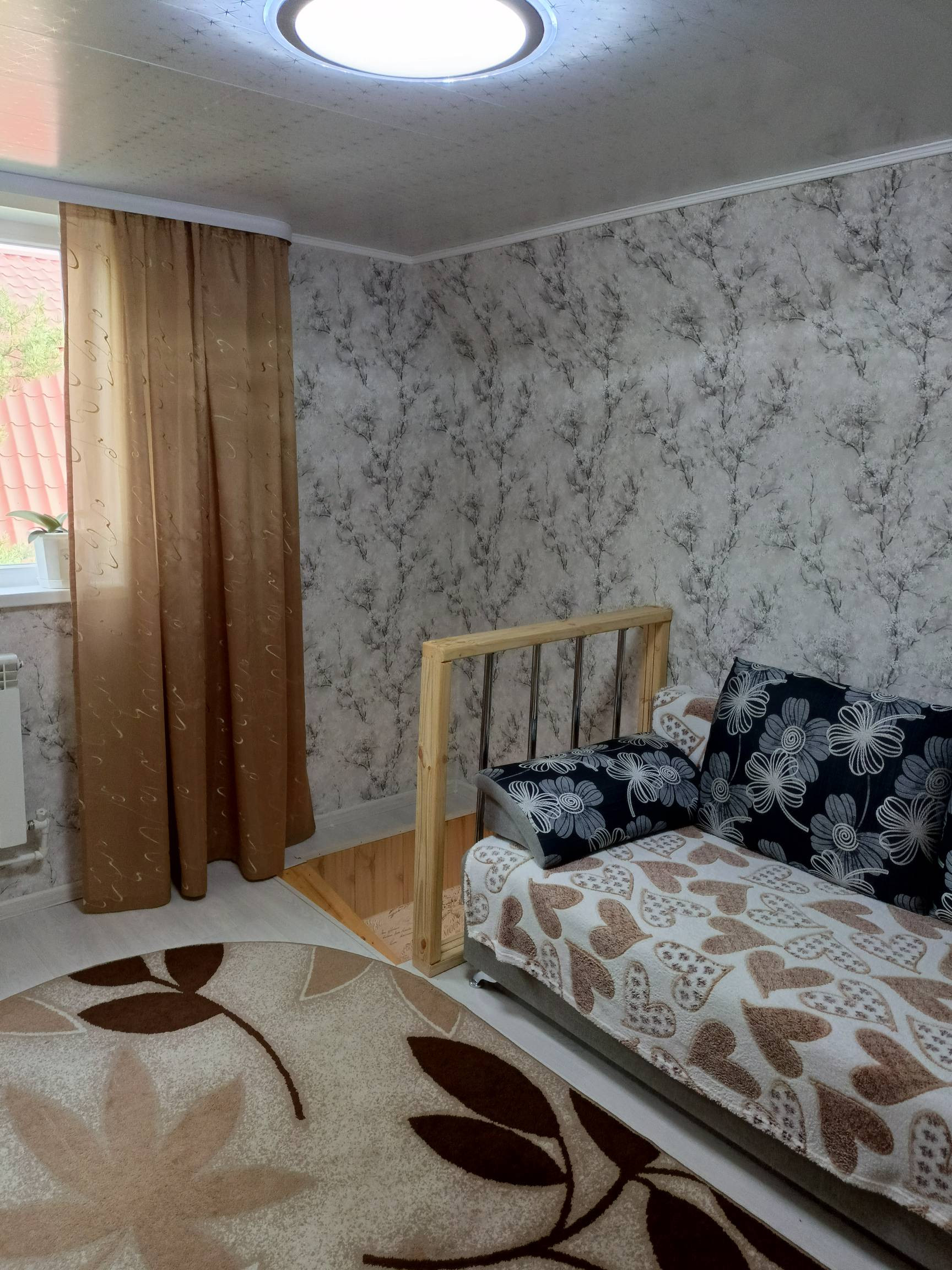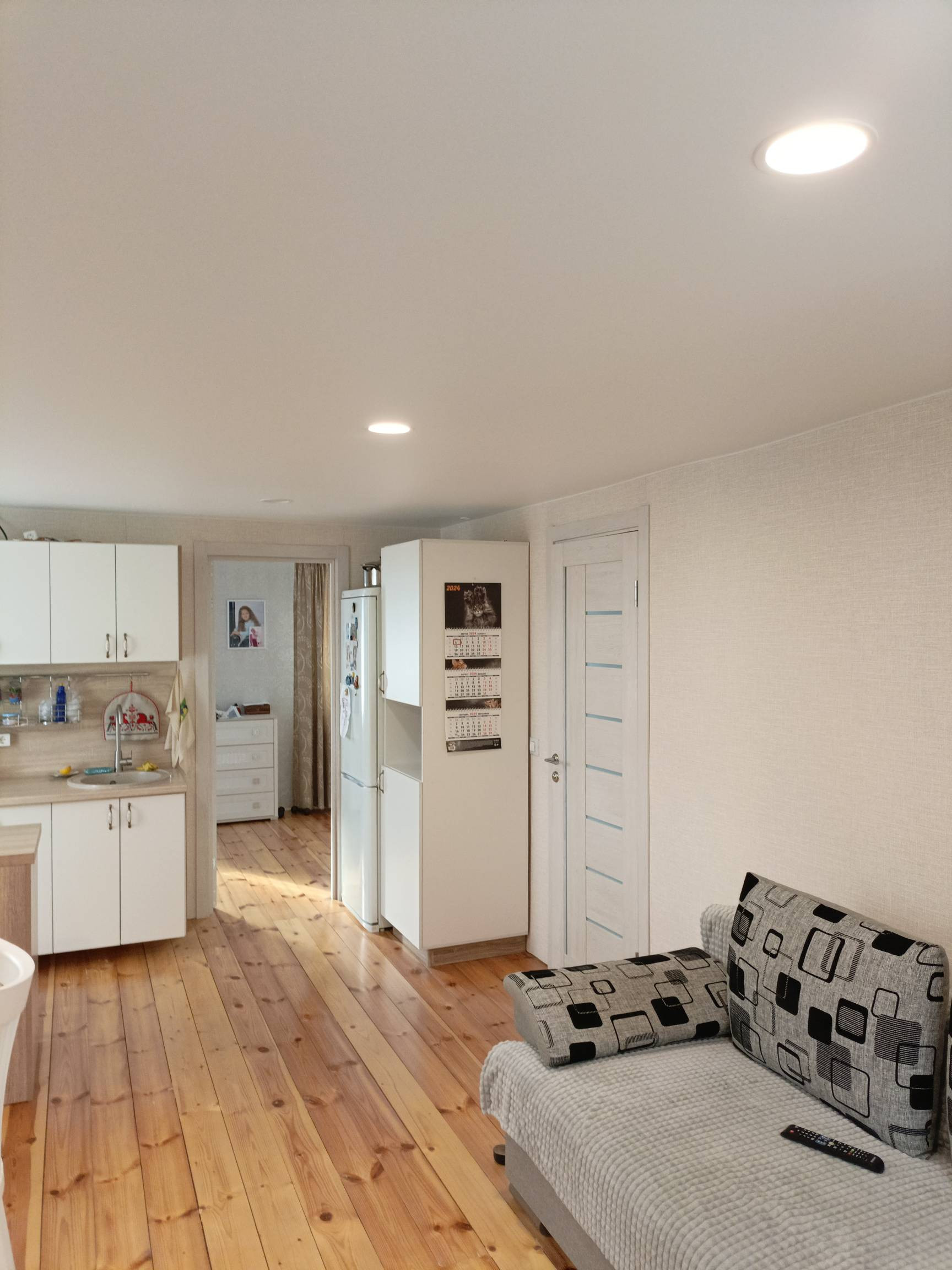 На втором этаже кухня - гостинная, спальня и санузел. Сделан свежий ремонт, новая электрика по дому, новые трубы. Установлены новые стены, обшиты гипсокартоном и поклеены. Полностью заменен пол, сделан из дерева и покрыт лаком. Также заменена лестница 2 этажа. В доме натяжные потолки, поклеены свежие обои. Остается кухонная мебель, душевая кабина, унитаз, раковина.