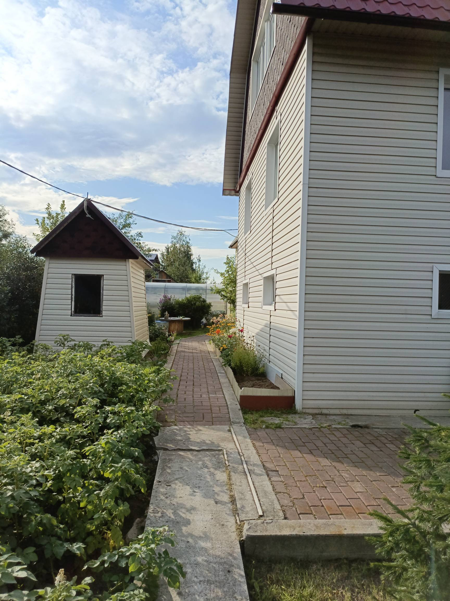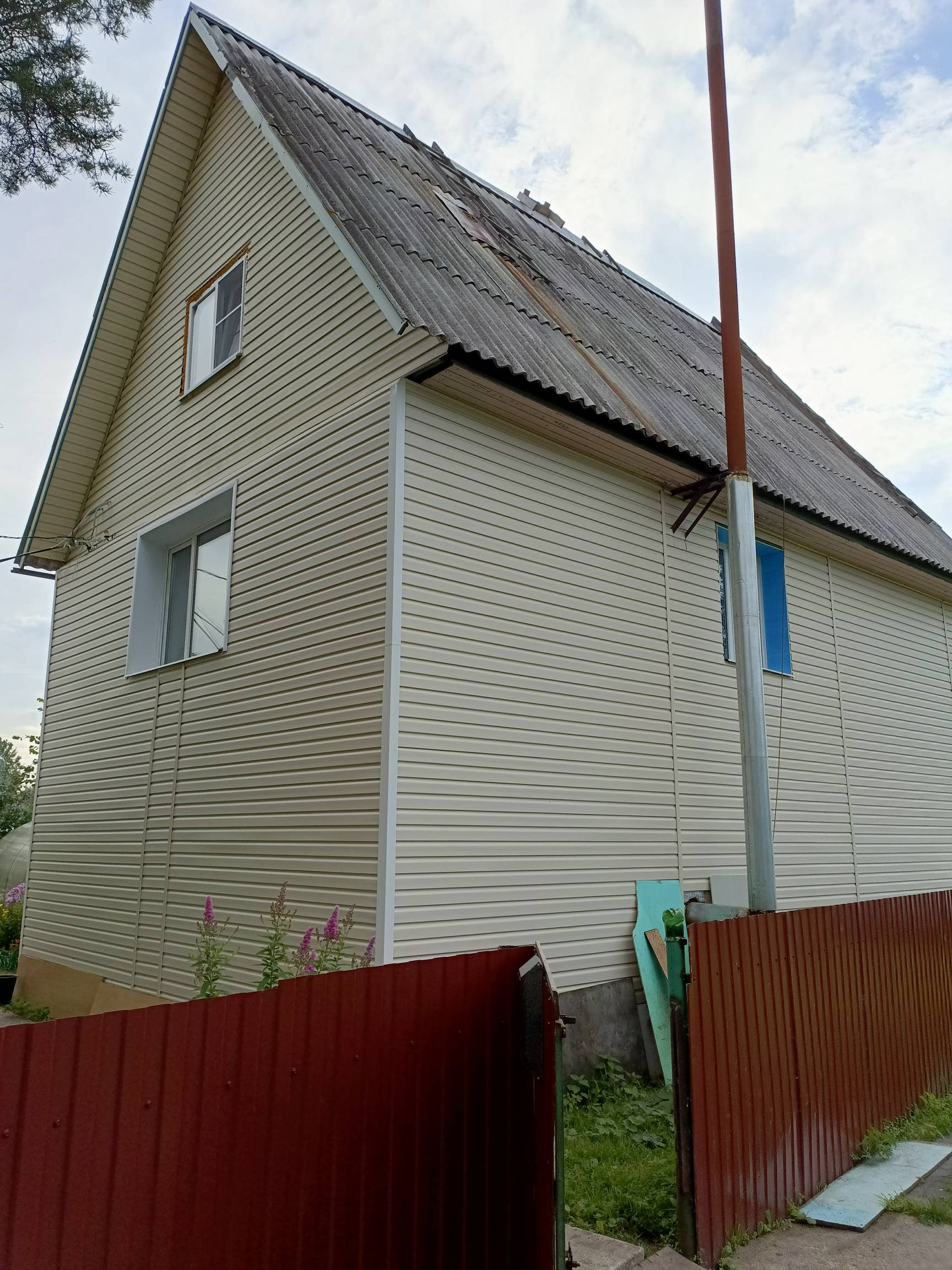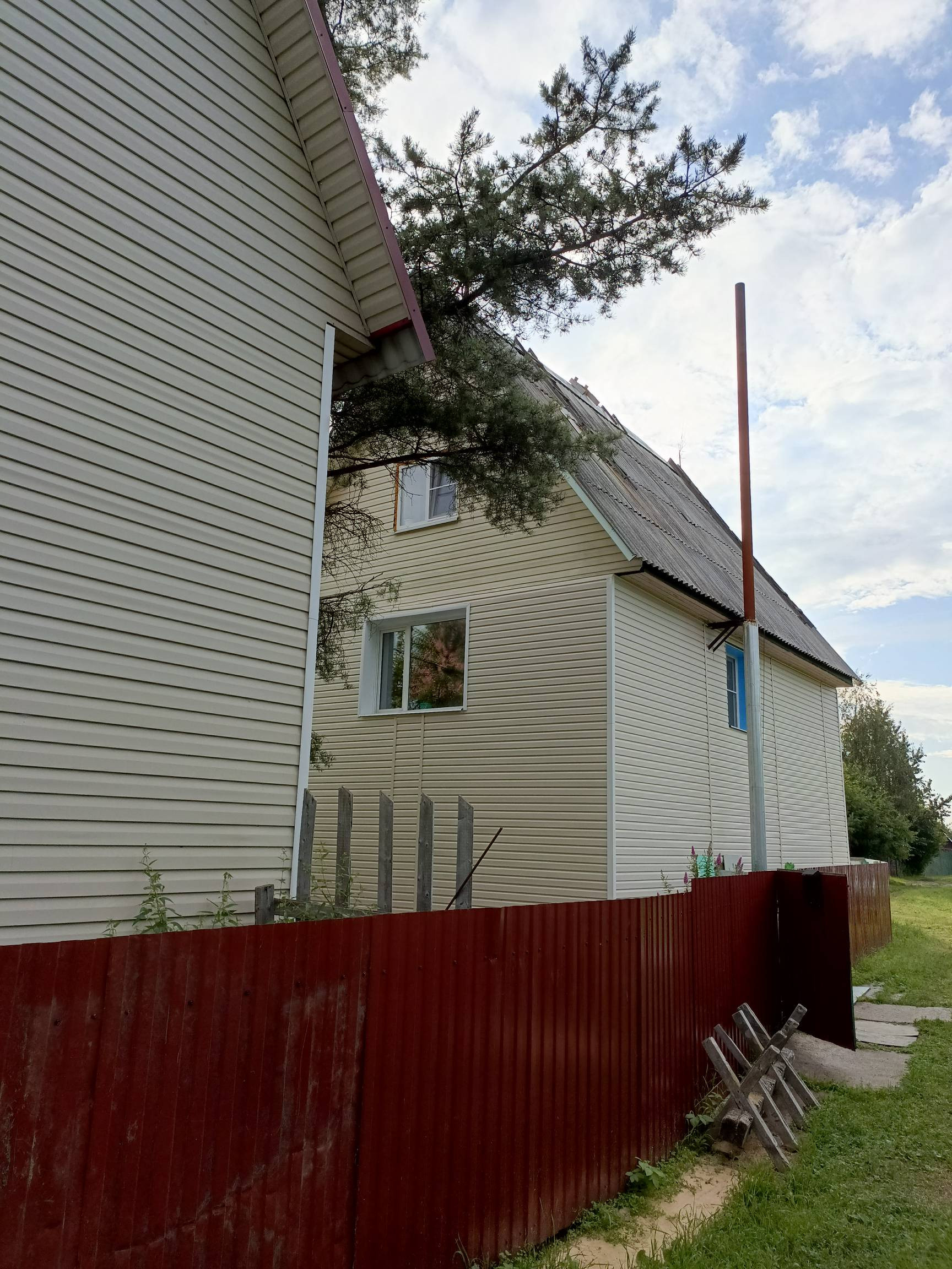 Второй дом достроен в 2017 году, поставлен на учет. Требуется внутренняя отделка( две комнаты отремонтированы) и провести в дом коммуникации. Первый этаж сделан из пеноблоков, второй и мансардный этаж сделан из бруса. Дом так же обшит сайдингом.