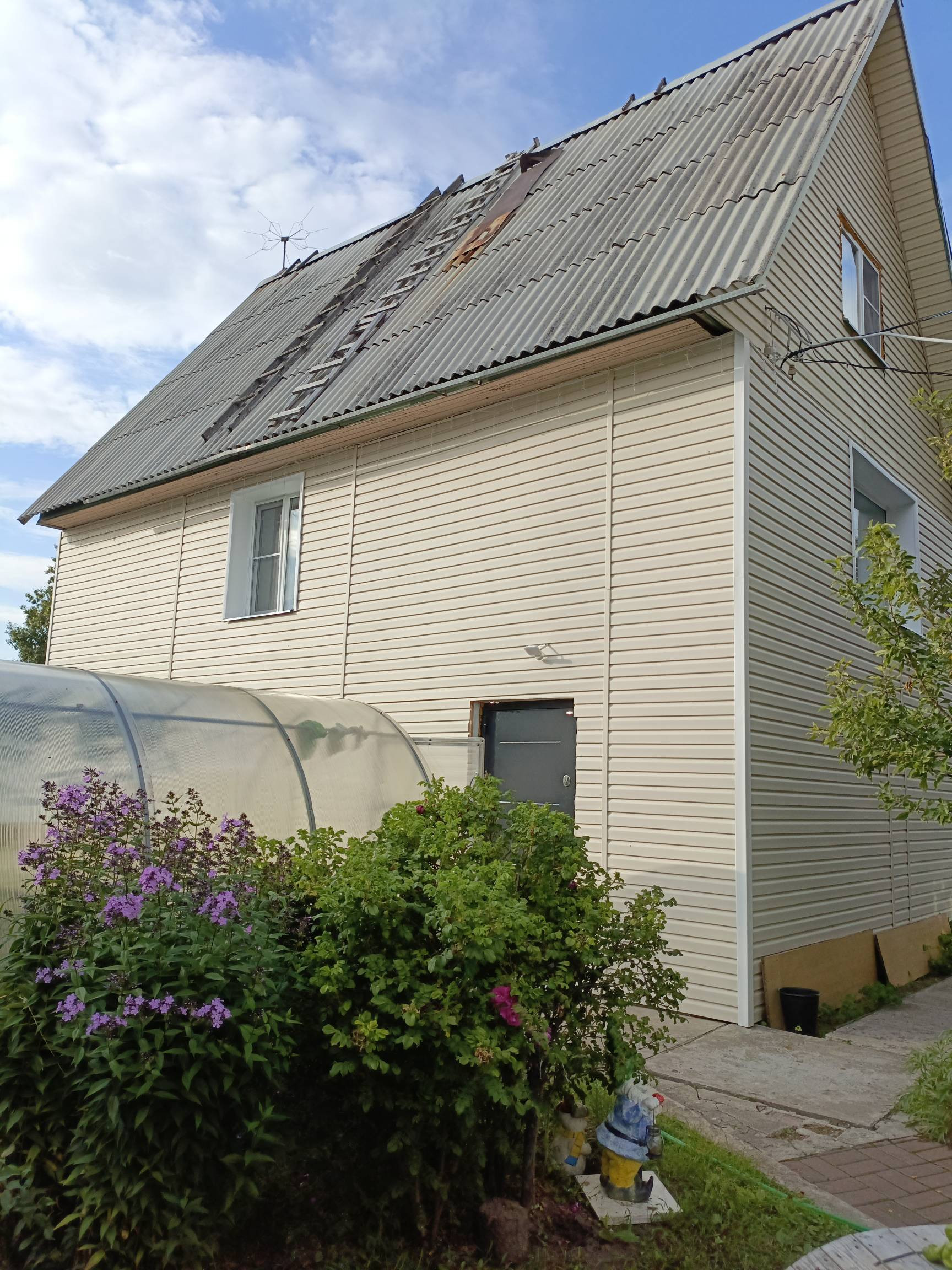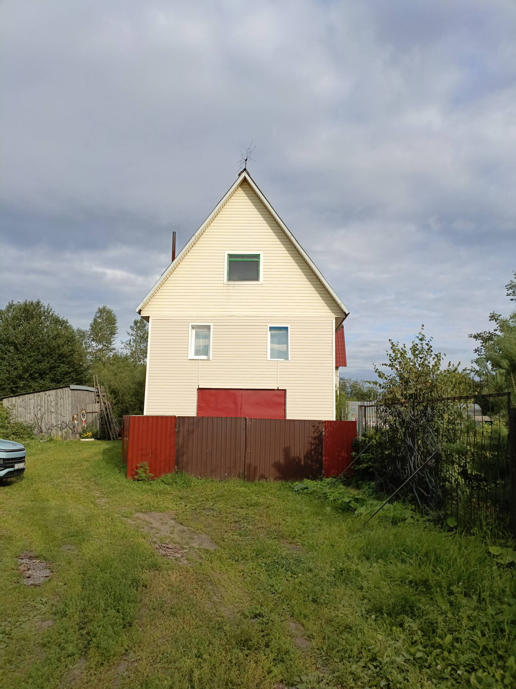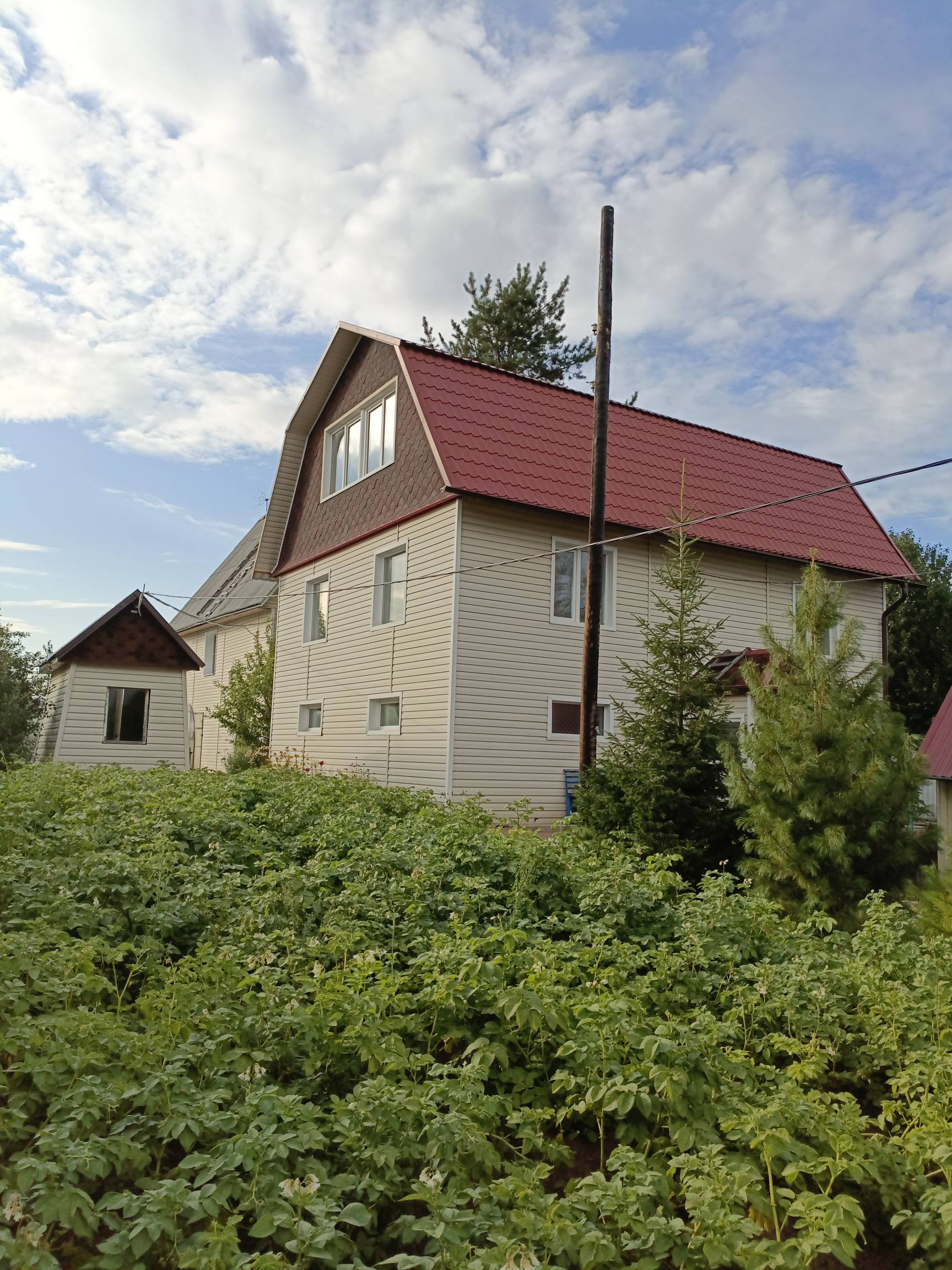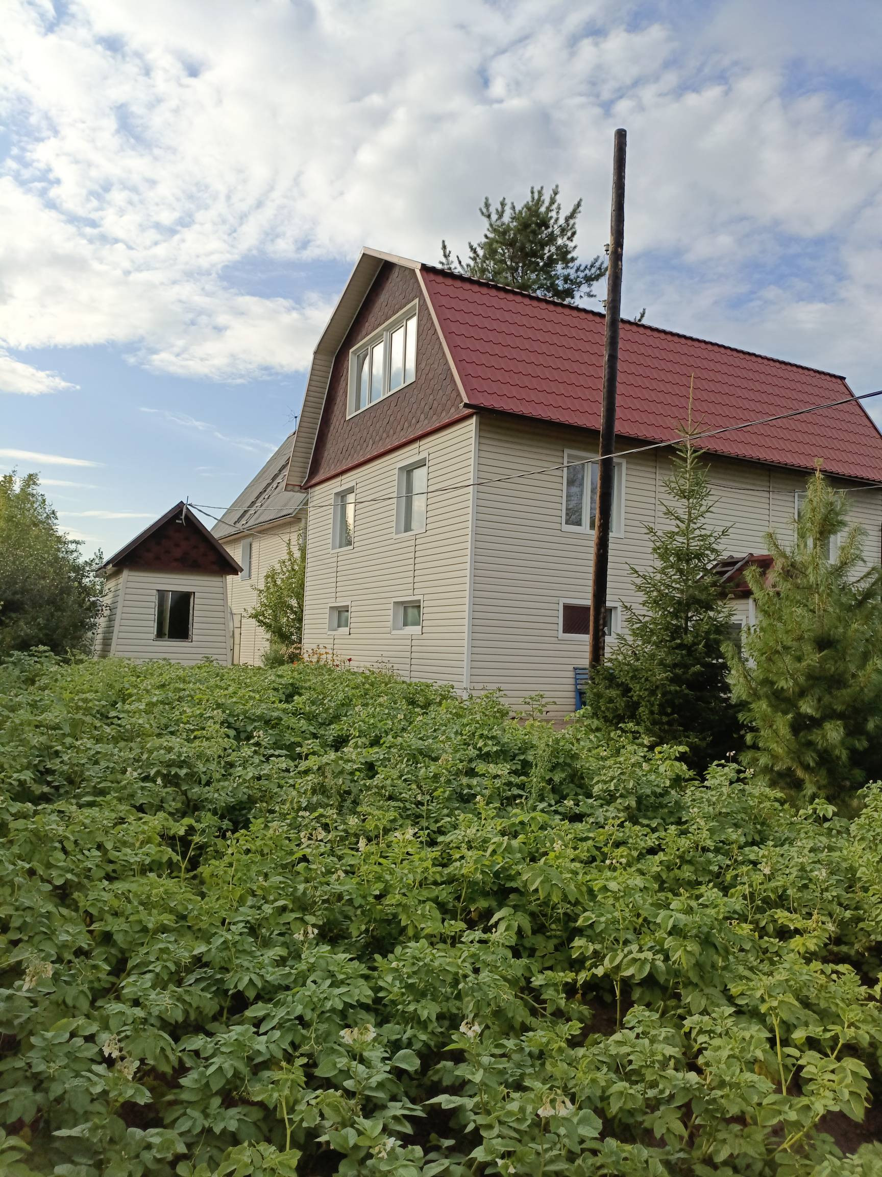Второй дом достроен в 2017 году, поставлен на учет. Требуется внутренняя отделка( две комнаты отремонтированы) и провести в дом коммуникации. Первый этаж сделан из пеноблоков, второй и мансардный этаж сделан из бруса. Дом так же обшит сайдингом.