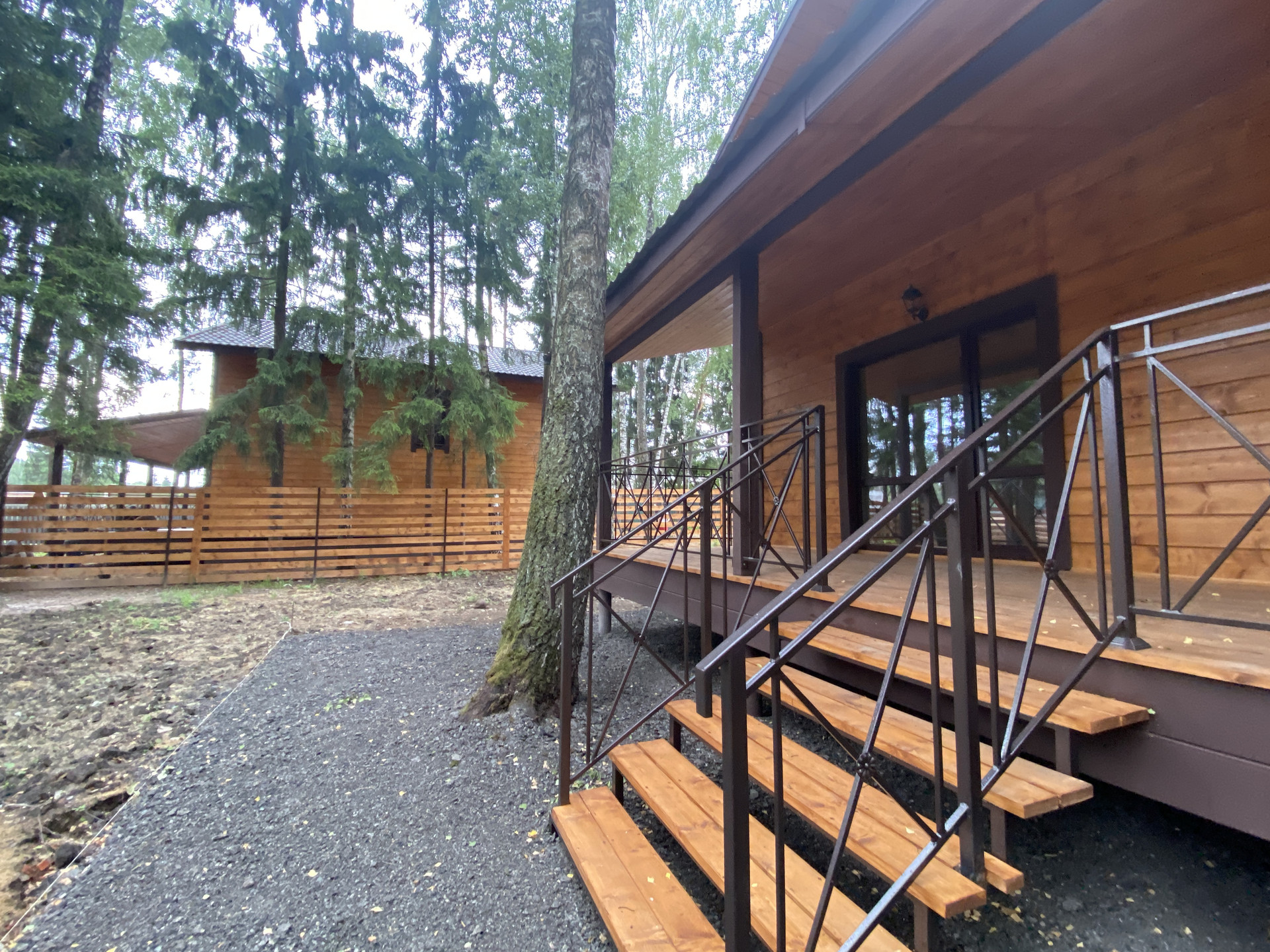 — Забор по периметру участка, установлены распашные ворота;