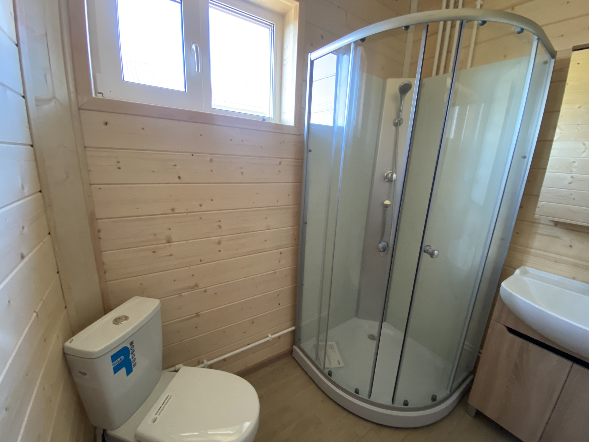 — Уложен керамогранит в санузлах, установлена сантехника на 1-м этаже;