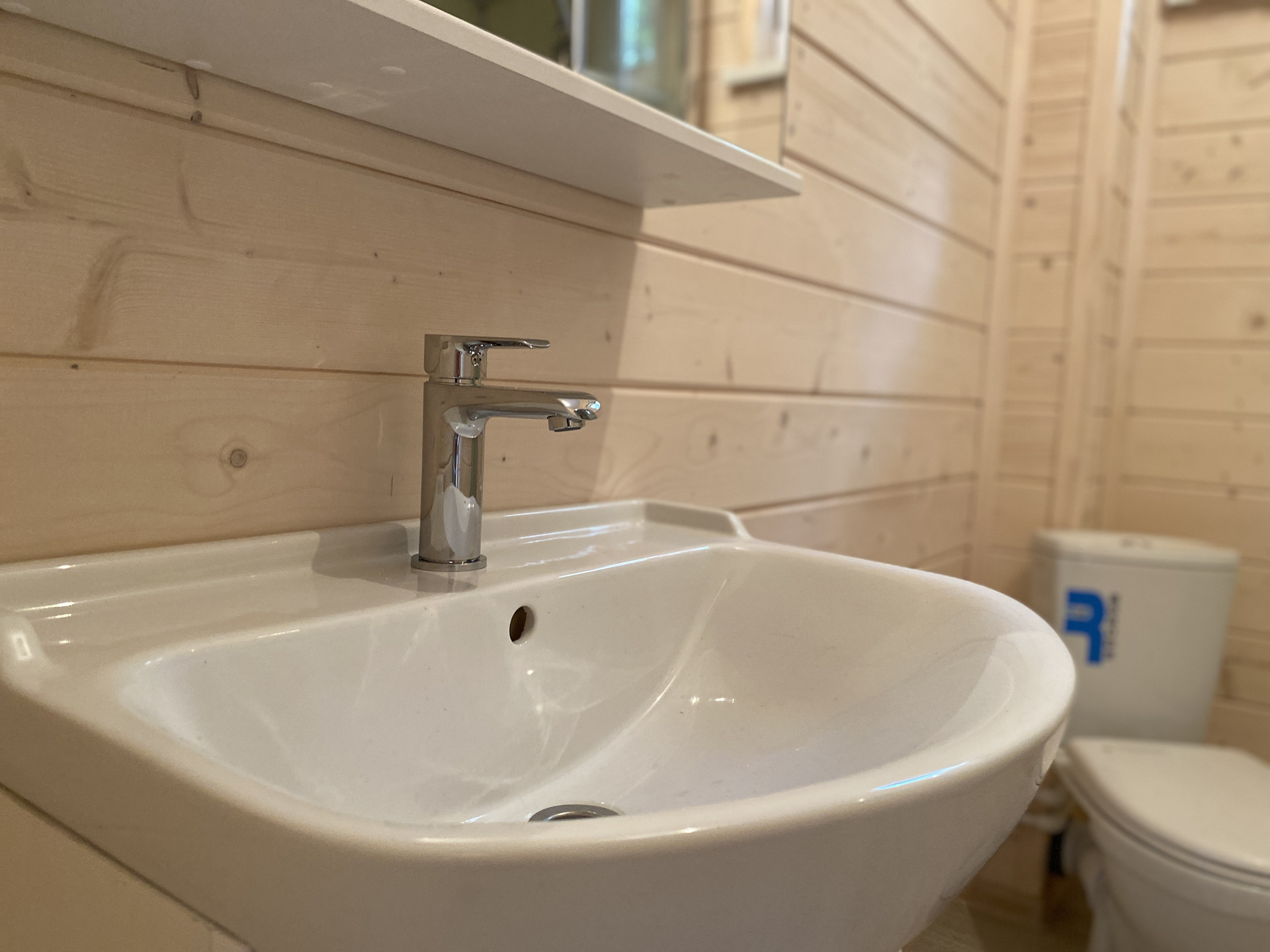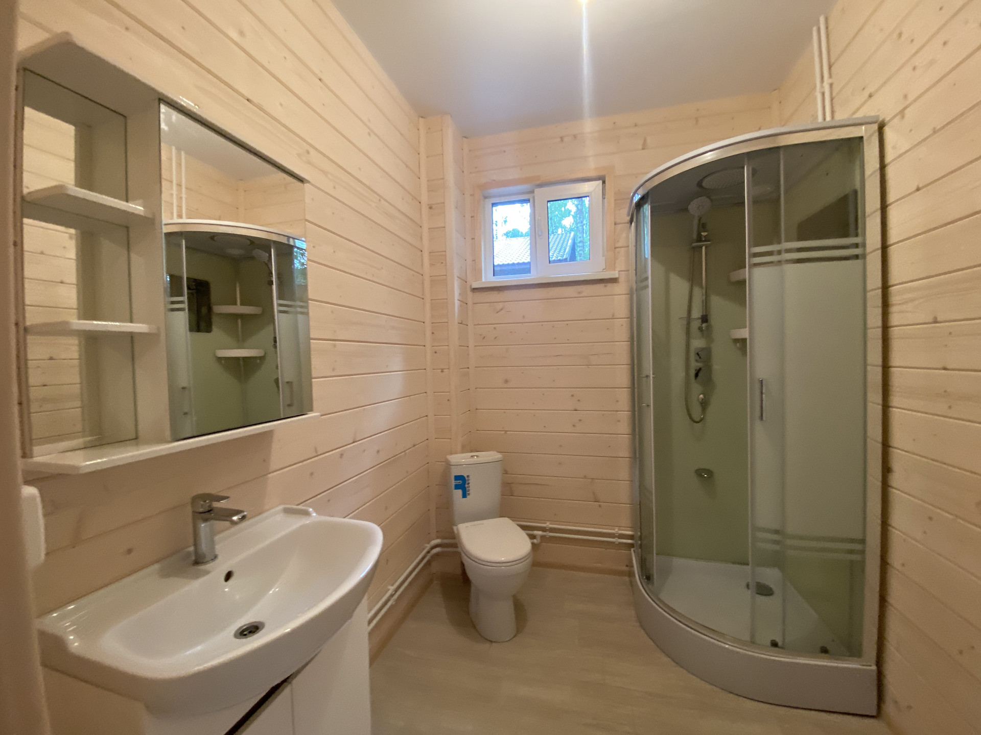 — Уложен керамогранит в санузлах, установлена сантехника на 1-м этаже;