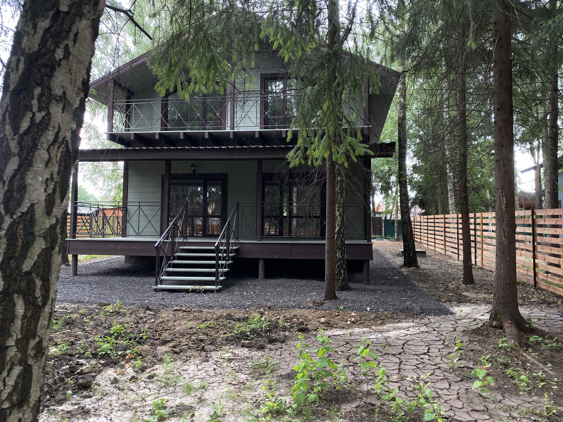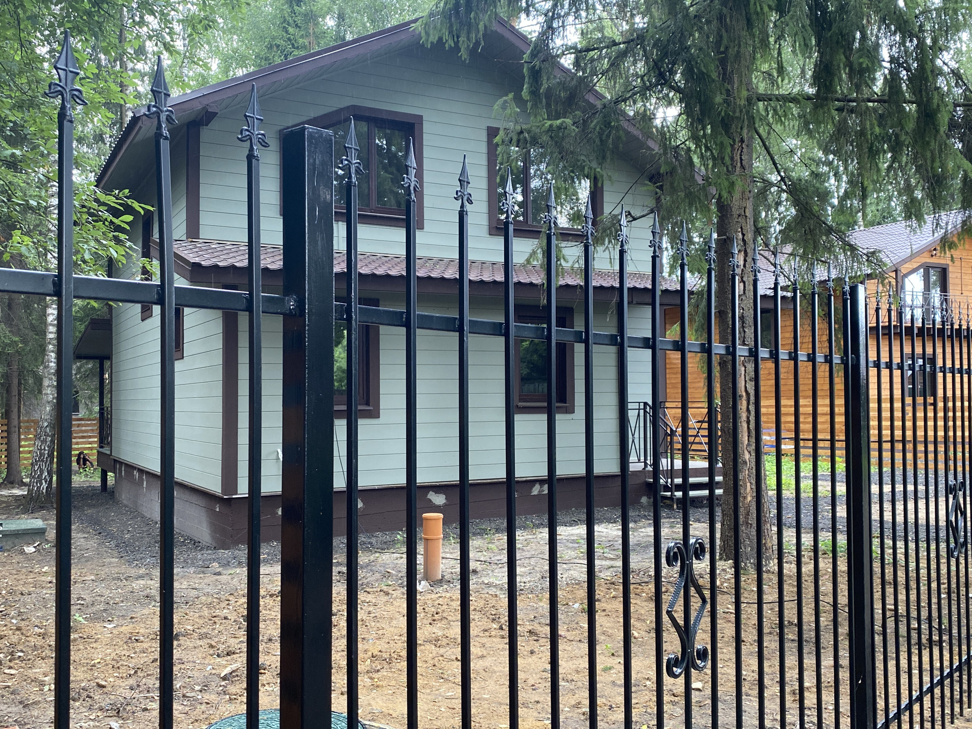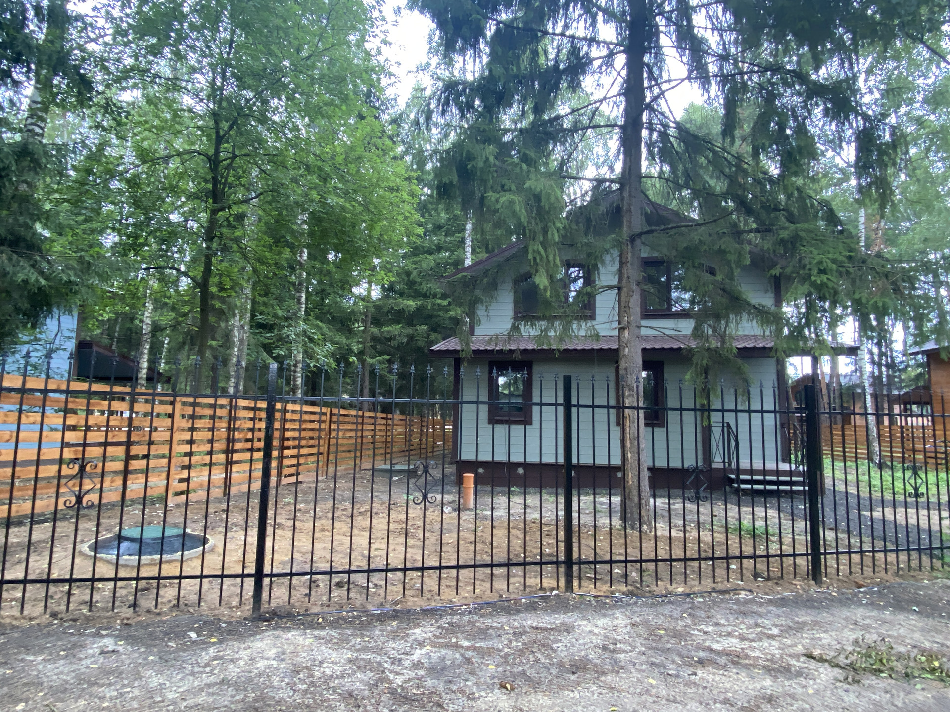 — Забор по периметру участка, установлены распашные ворота;
