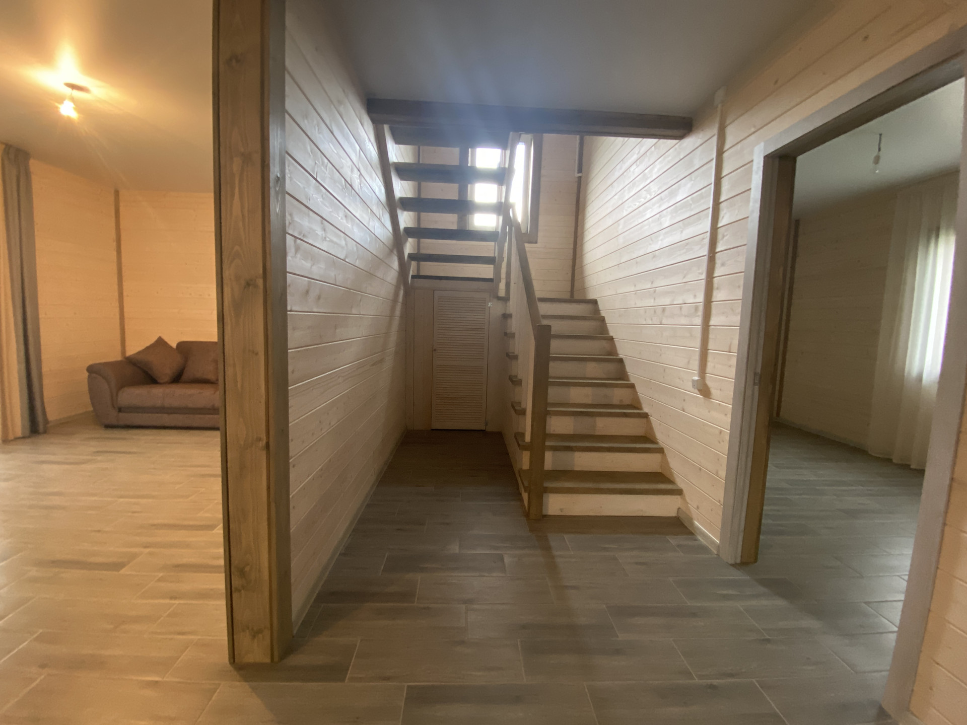 — Тёплый пол на первом этаже, радиаторы отопления на втором;