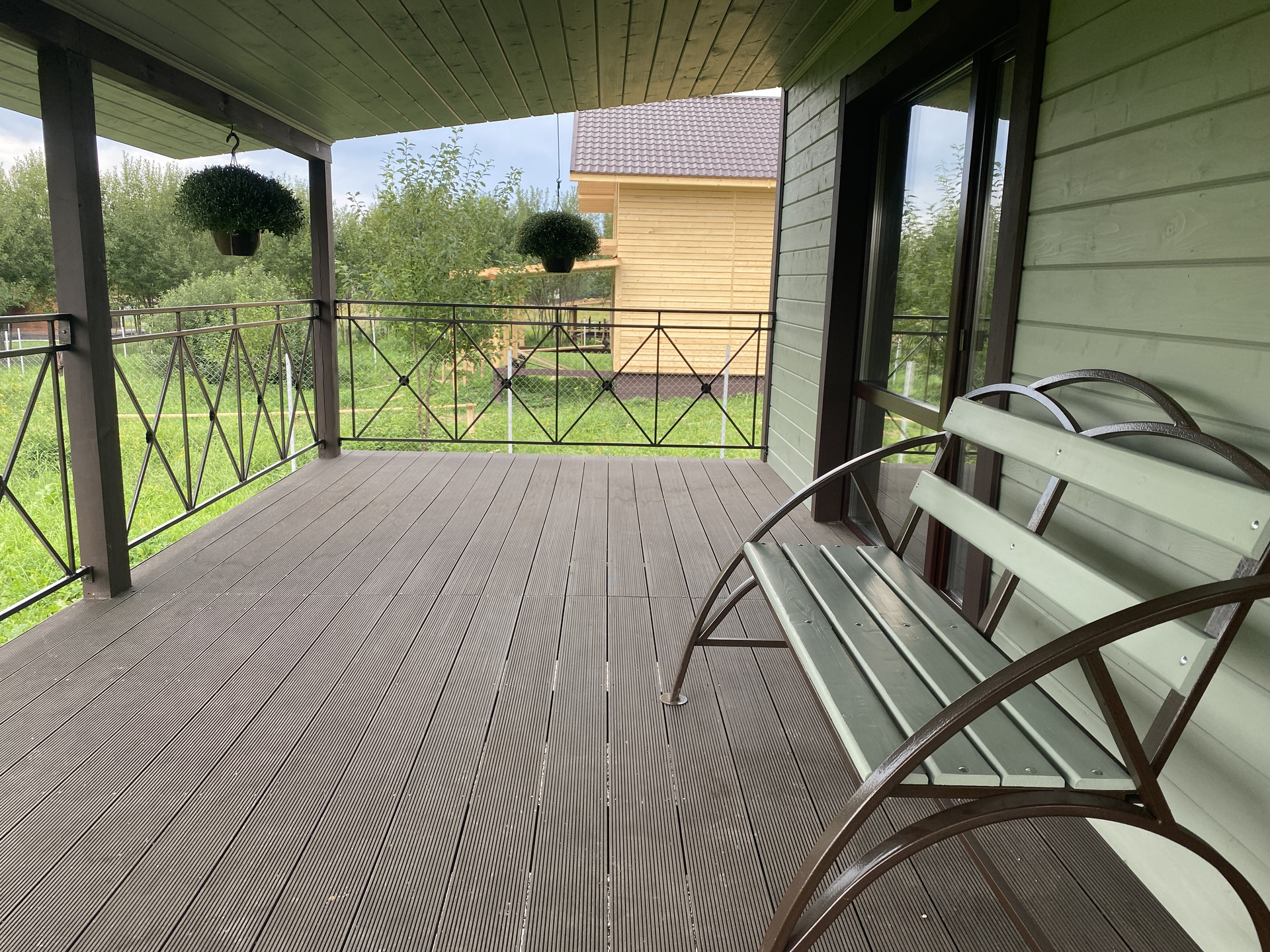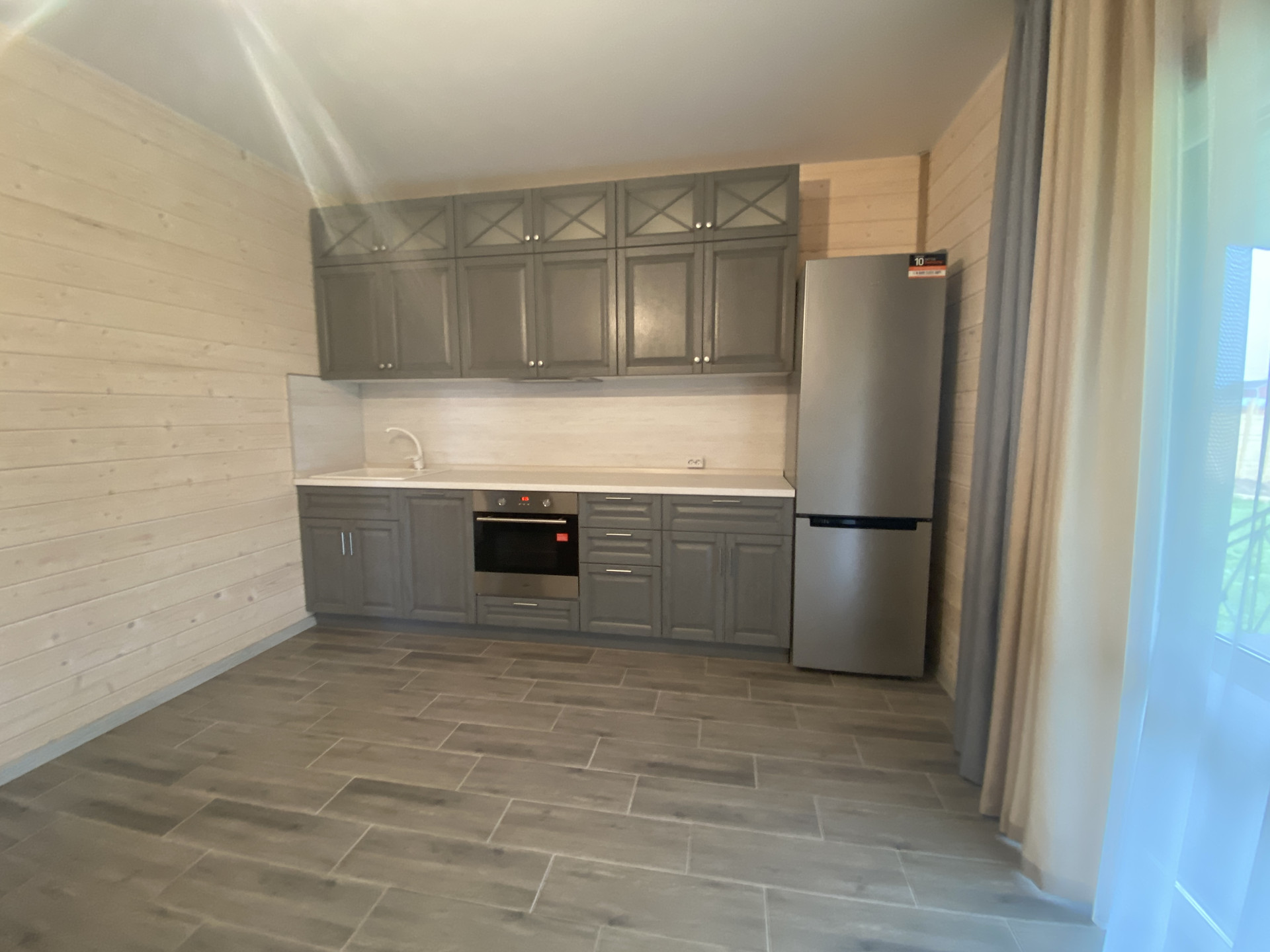 — Смонтирован натяжные потолки на первом этаже;