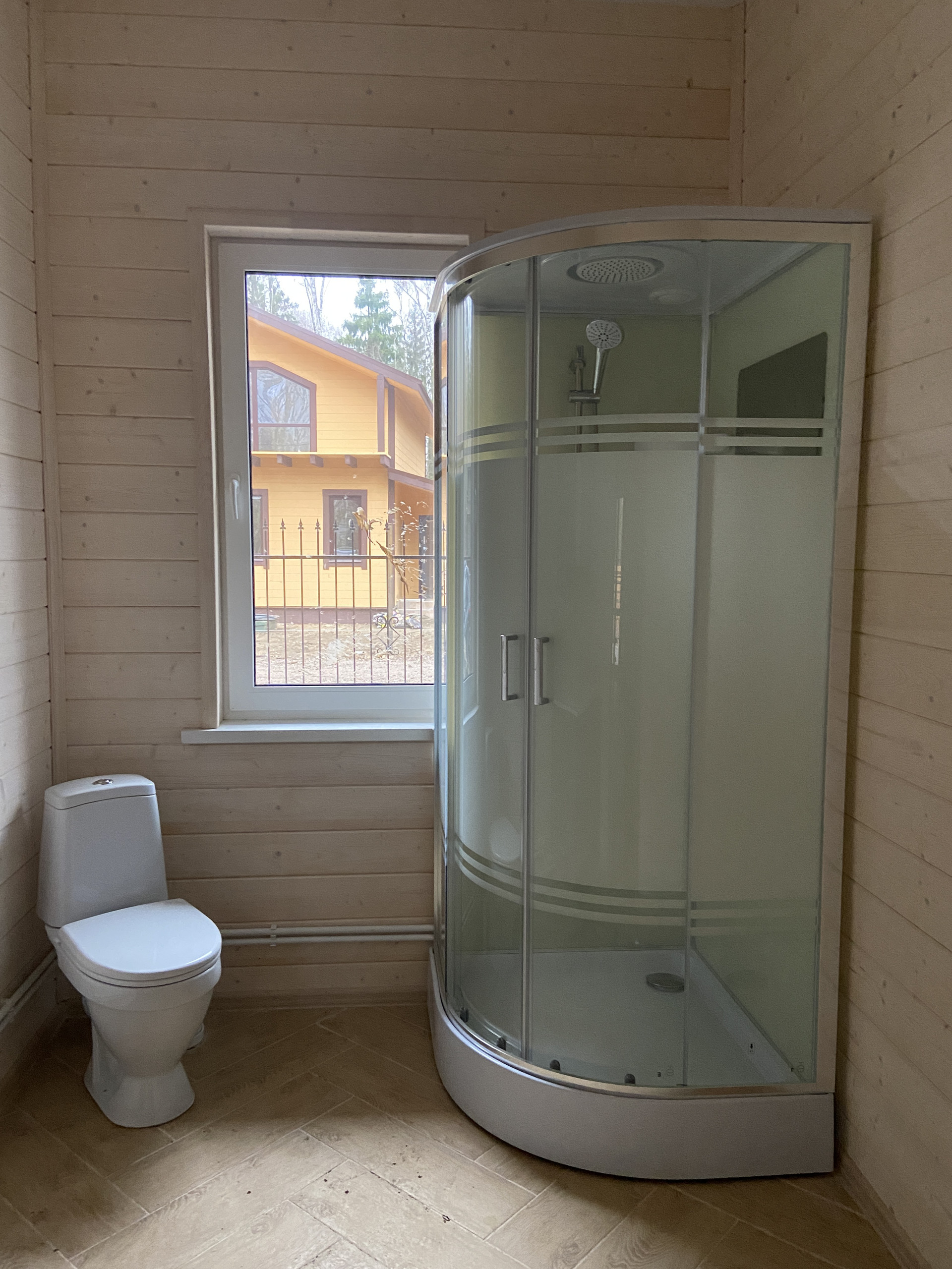 — Уложен керамогранит в санузлах, установлена сантехника на 1-м этаже;