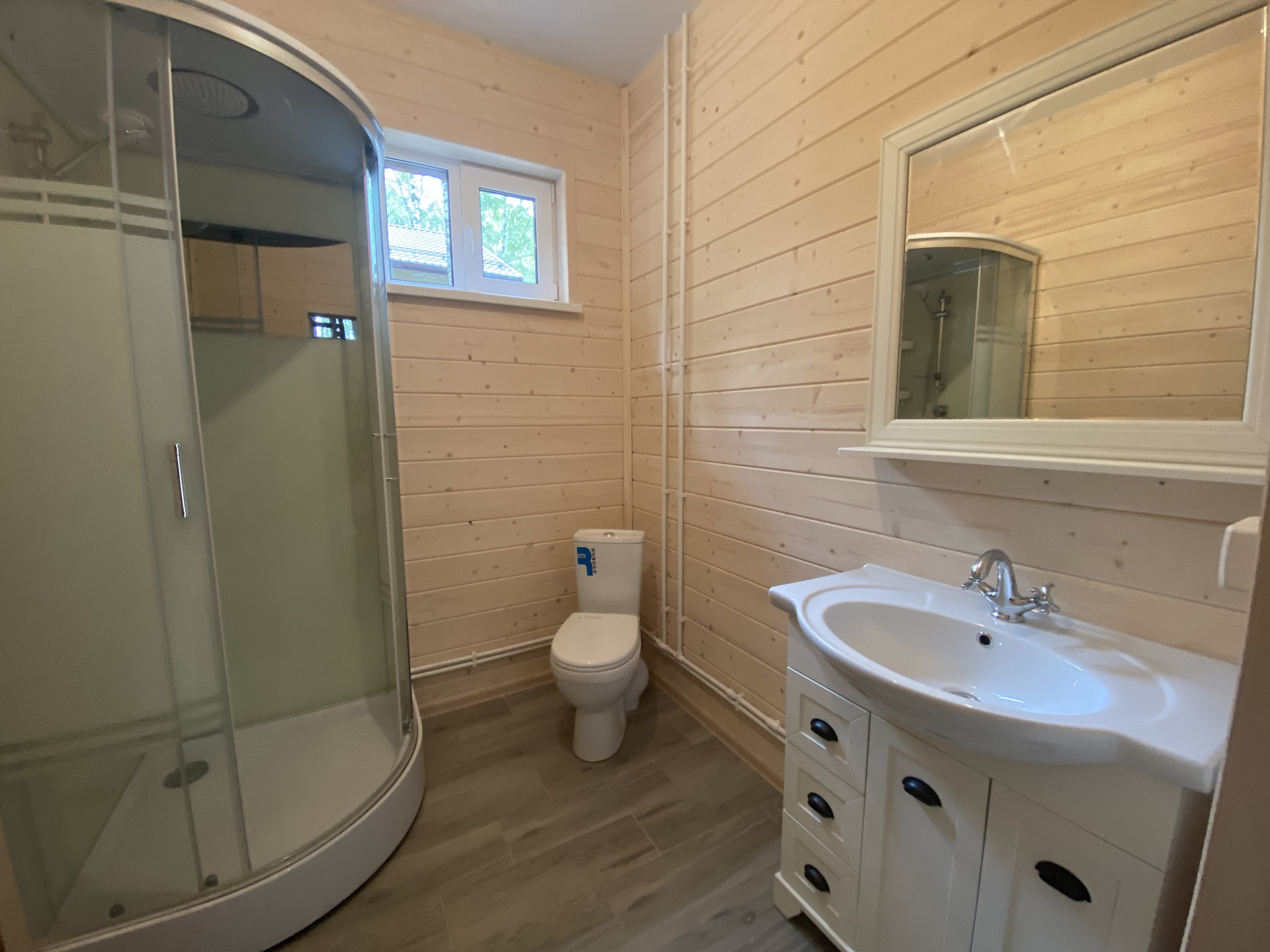 — Уложен керамогранит в санузлах, установлена сантехника на 1-м этаже;