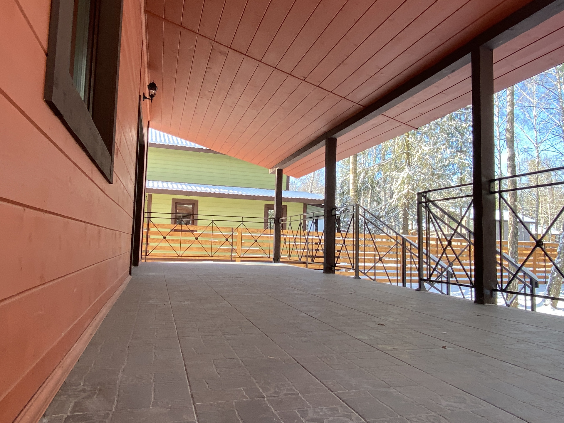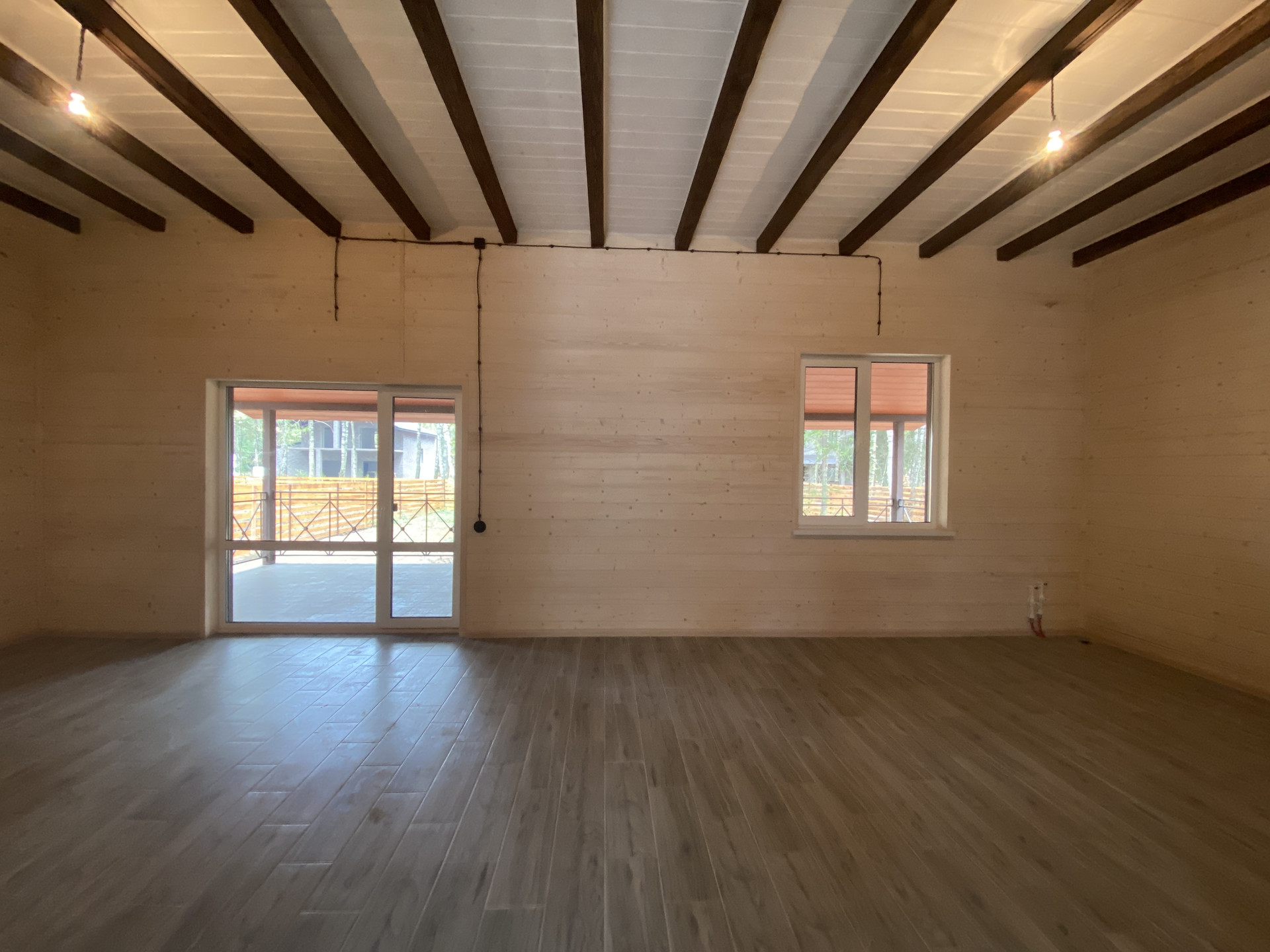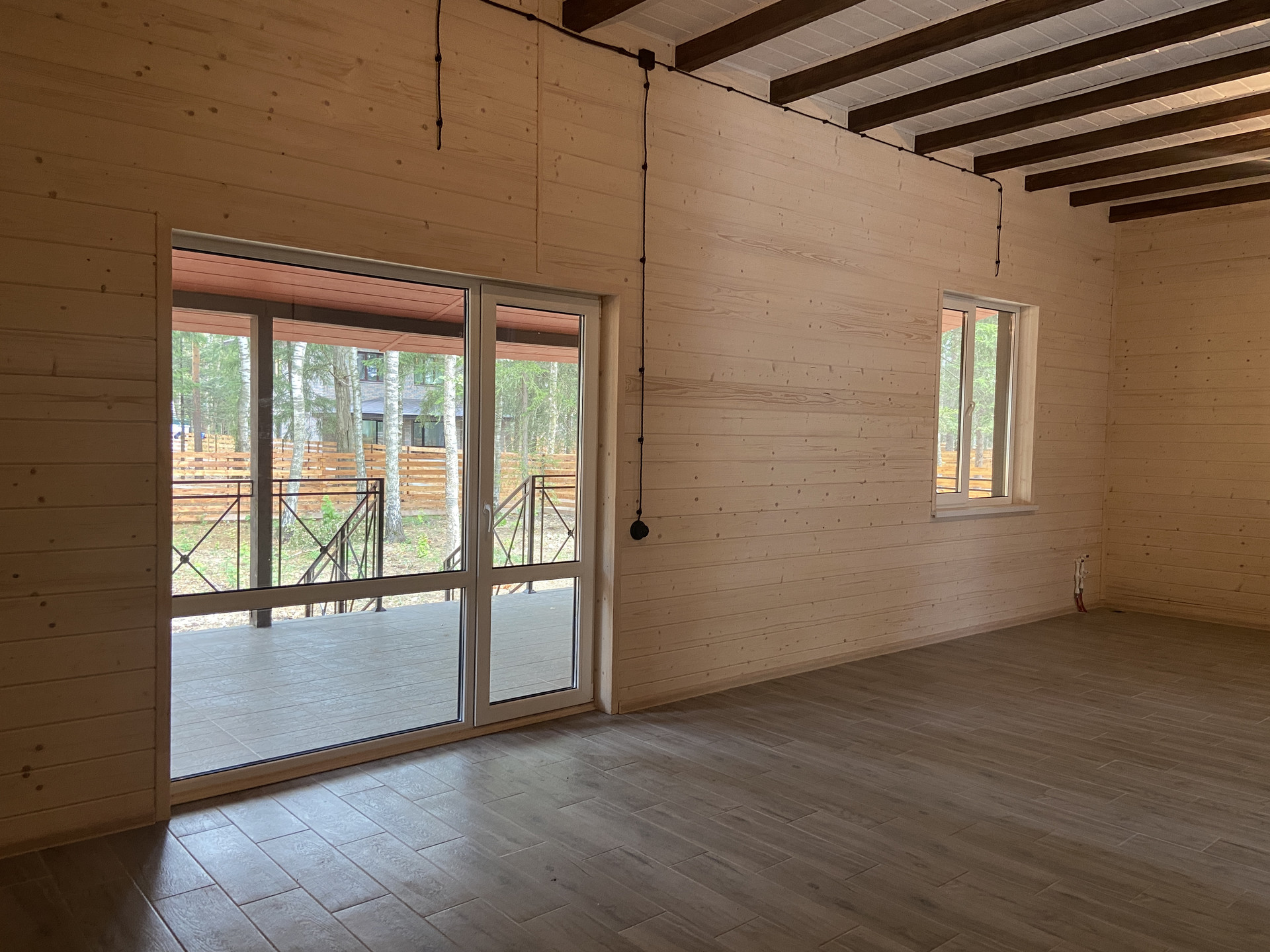 — Смонтированы натяжные потолки на первом этаже;